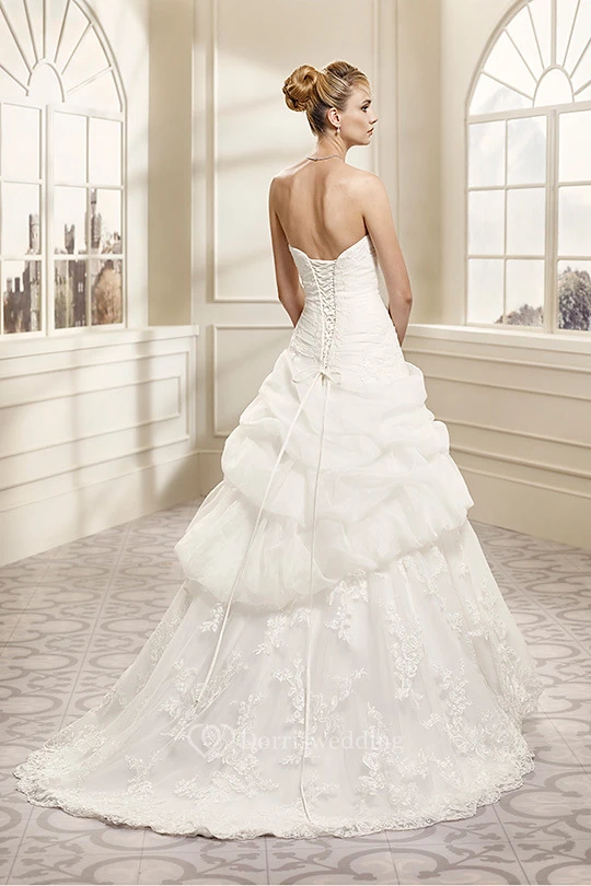 Ball Gown Strapless Appliqued Organza Wedding Dress With Pick Up And Lace Up