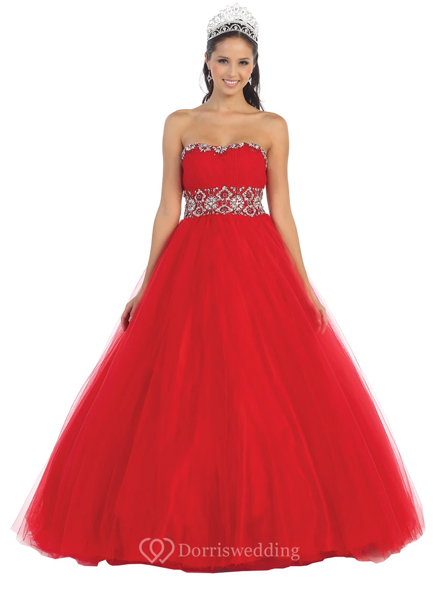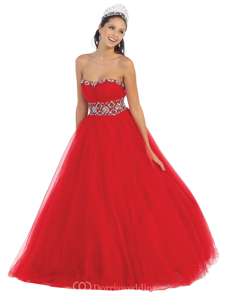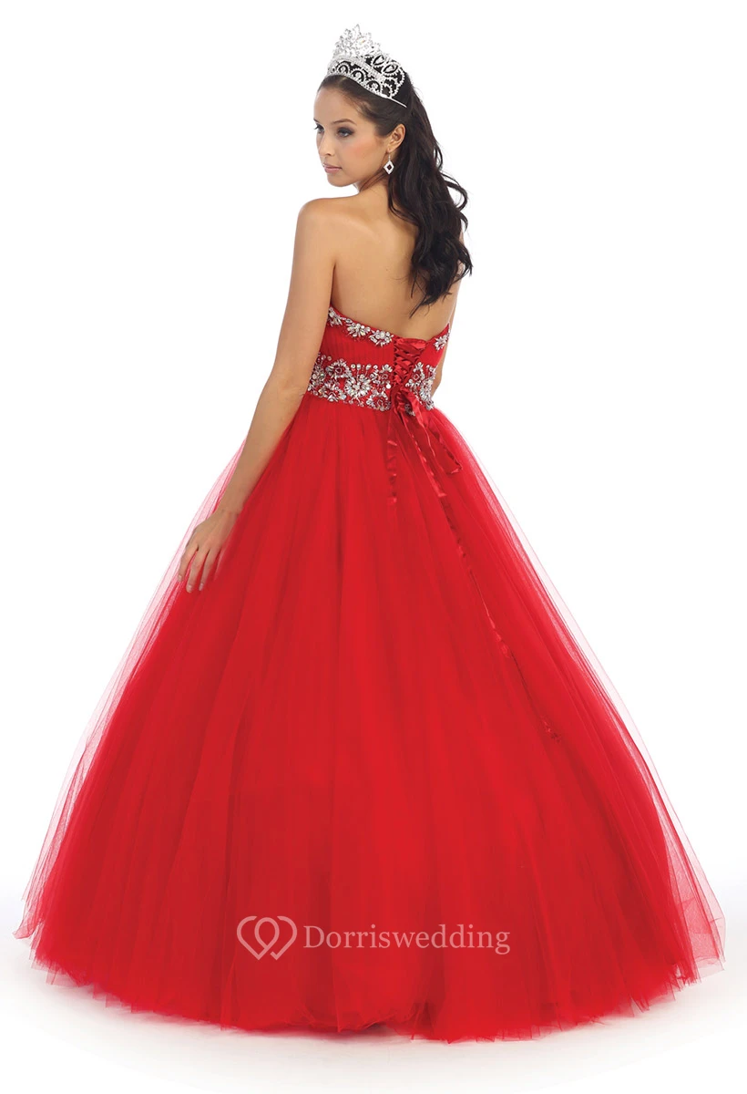 Ball Gown Strapless Tulle Corset Back Dress With Beading And Waist Jewellery