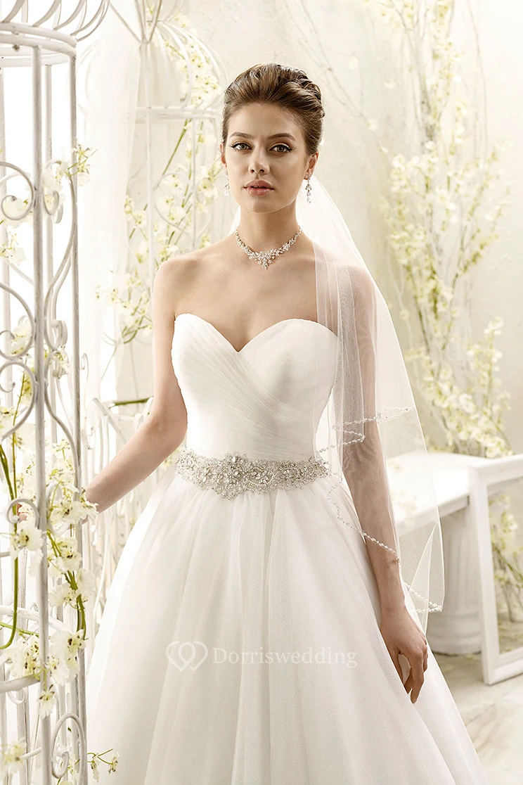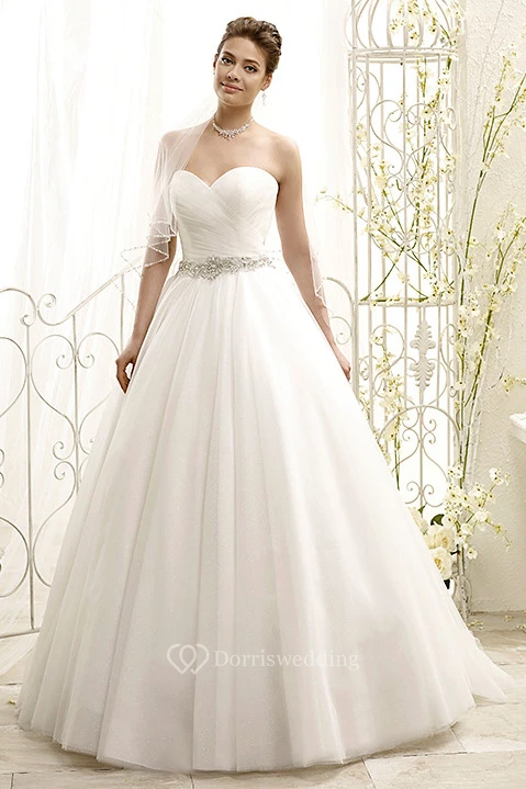 Ball Gown Sweetheart Floor-Length Jeweled Tulle Wedding Dress With Criss Cross