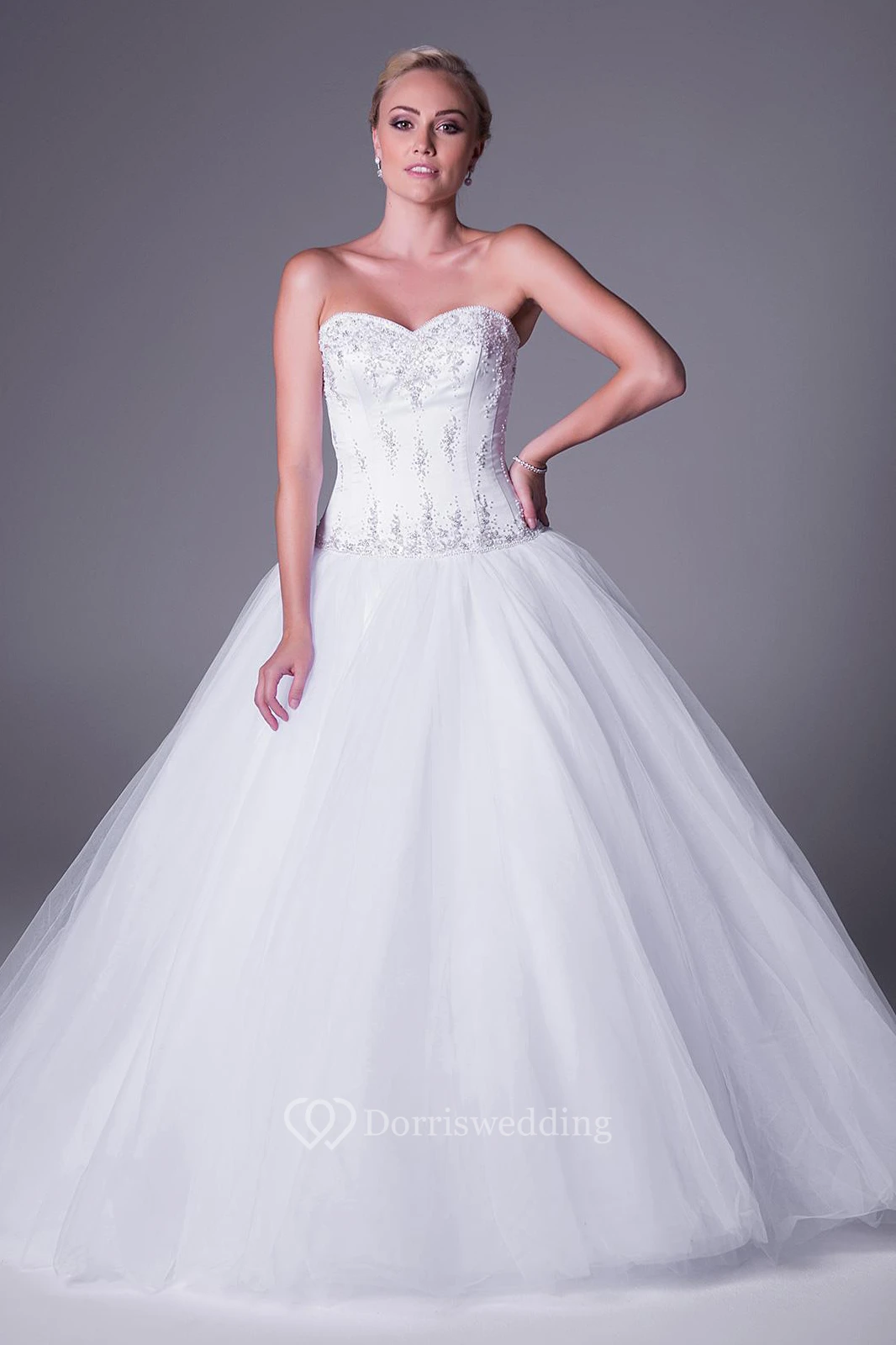 Ball Gown Sweetheart Maxi Tulle Wedding Dress With Beading