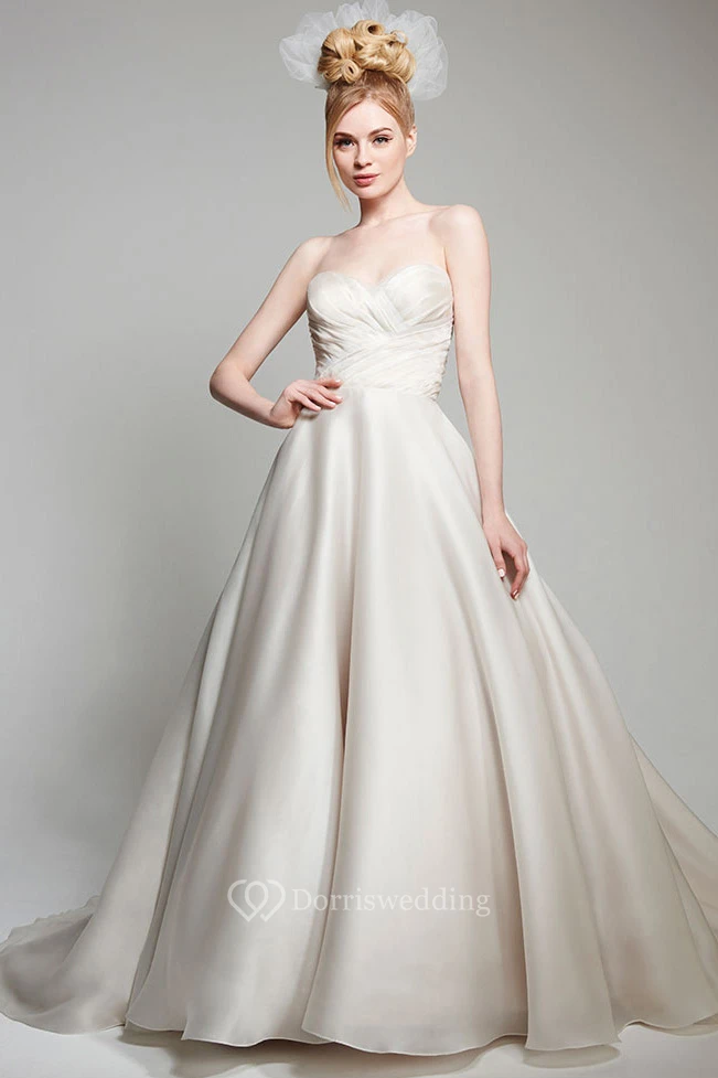 Ball Gown Sweetheart Organza Wedding Dress With Criss Cross And Backless Design