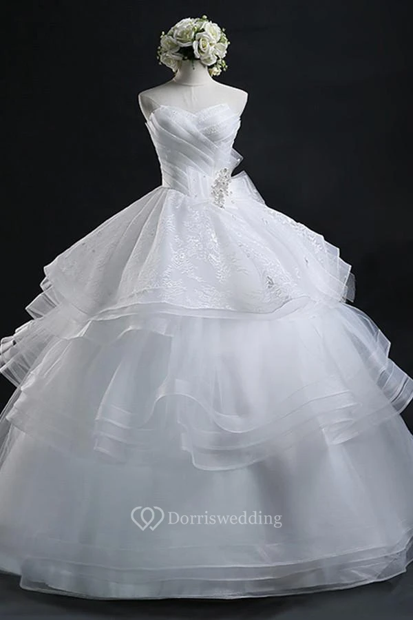 Ball Gown Sweetheart Organza Wedding Dress With Lace