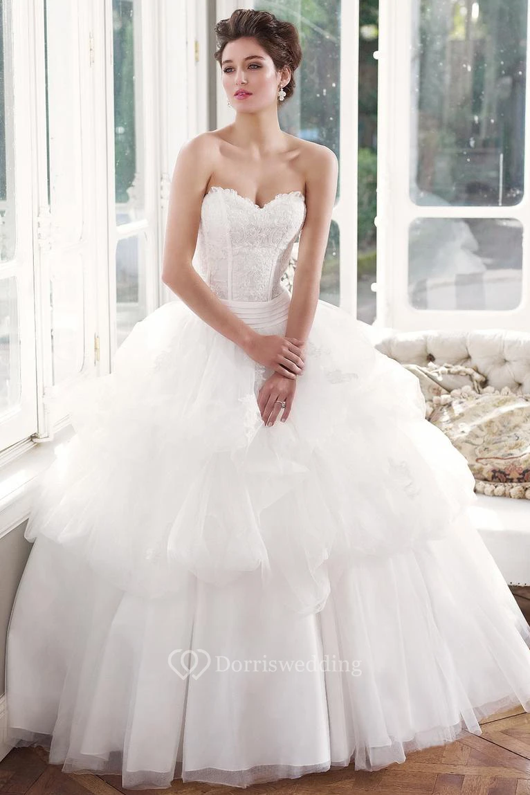 Ball Gown Sweetheart Pick-Up Long Tulle Wedding Dress With Lace And Tiers