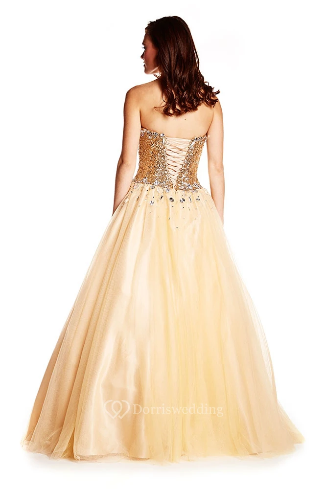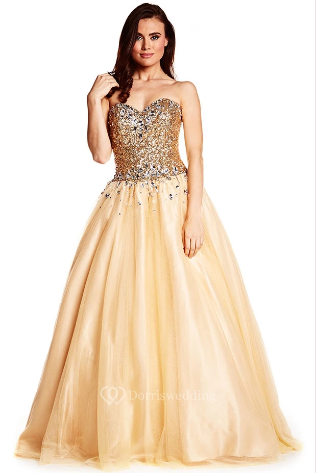Ball Gown Sweetheart Sequined Sleeveless Tulle Prom Dress