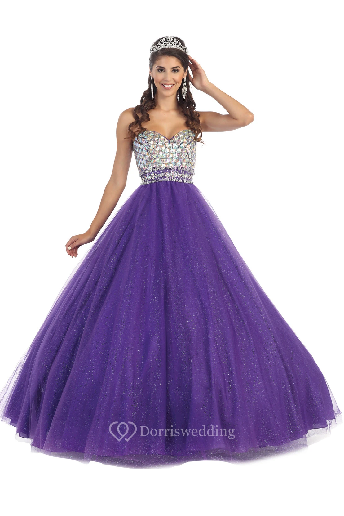 Ball Gown Sweetheart Sleeveless Backless Dress With Crystal Detailing