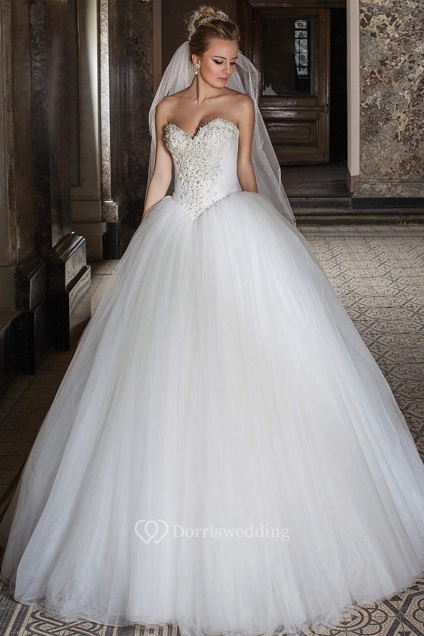 Ball Gown Sweetheart Sleeveless Beaded Tulle Wedding Dress With Lace-Up