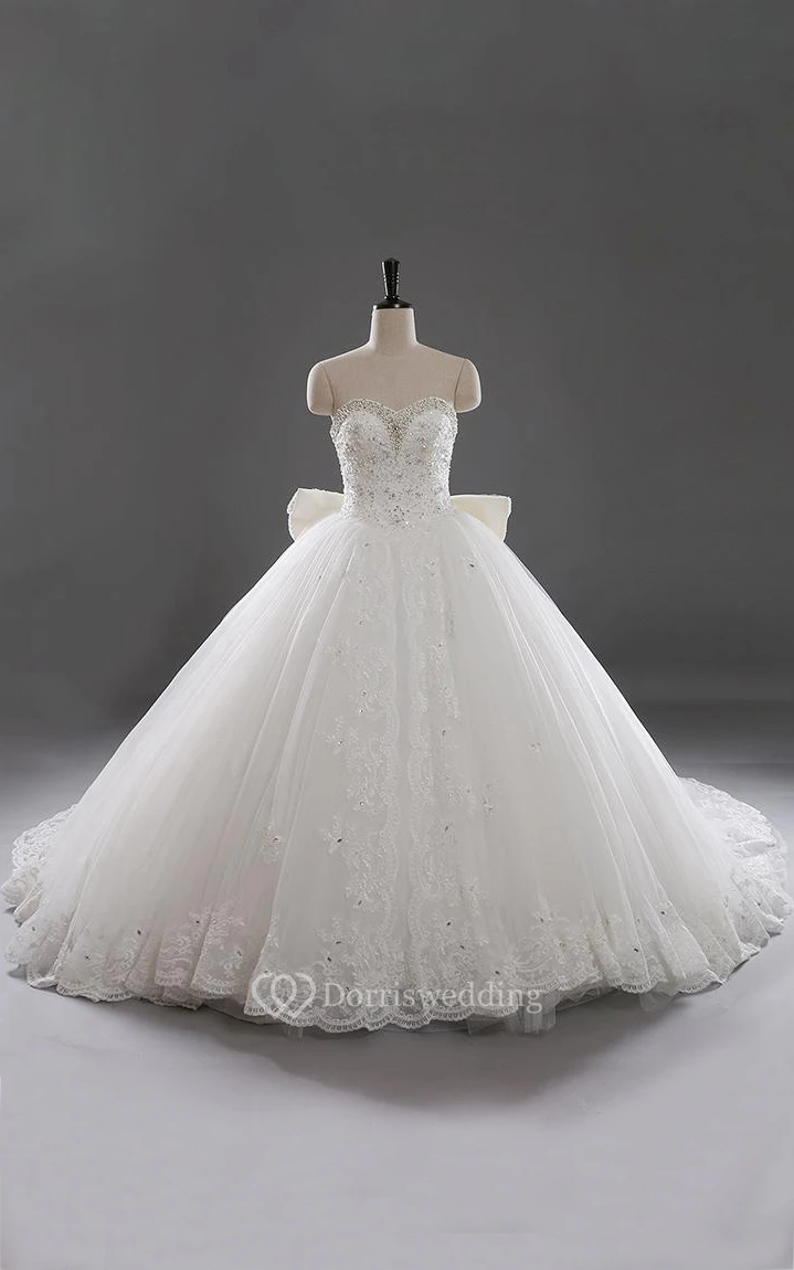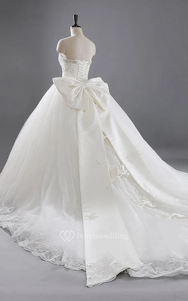 Ball Gown Sweetheart Sleeveless Bow Backless Tulle Dress