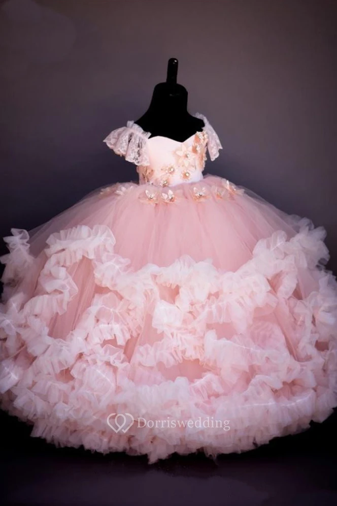 Ball Gown Sweetheart Tier Flower Girl Dress with Applique and Beading