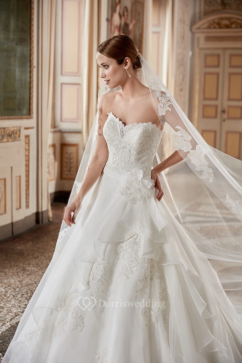 Ball Gown Sweetheart Tulle&Lace Wedding Dress With Draping