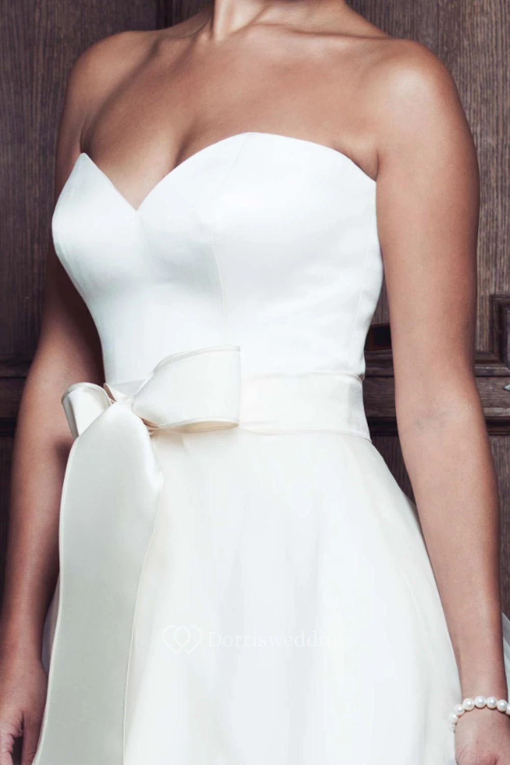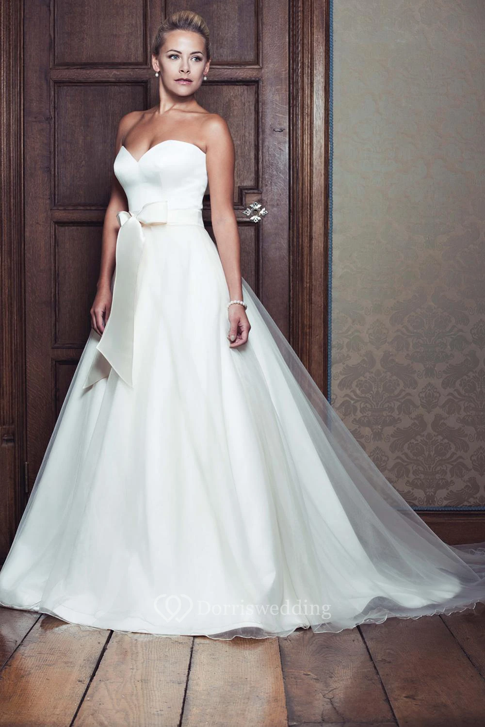 Ball Gown Sweetheart Tulle&Satin Wedding Dress With Bow And Sweep Train