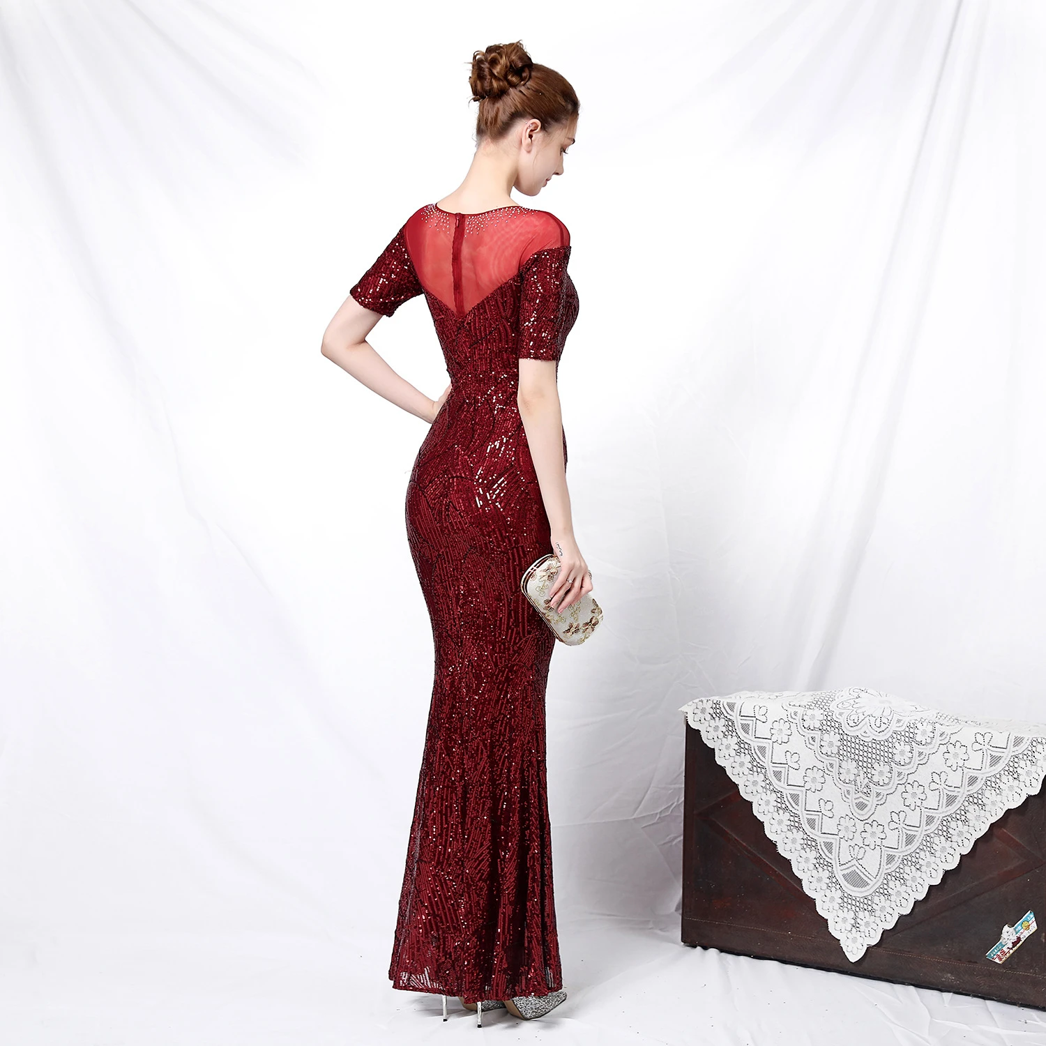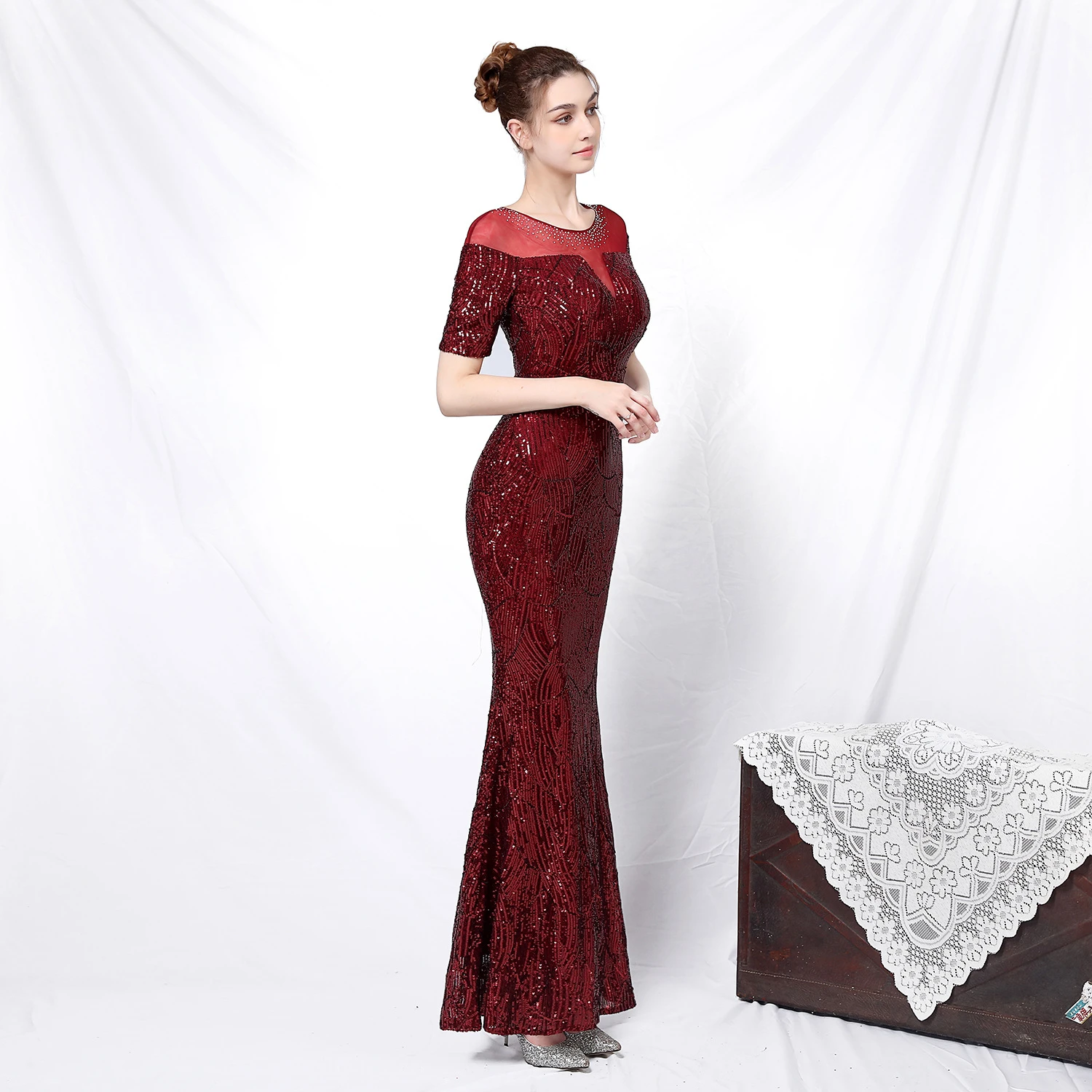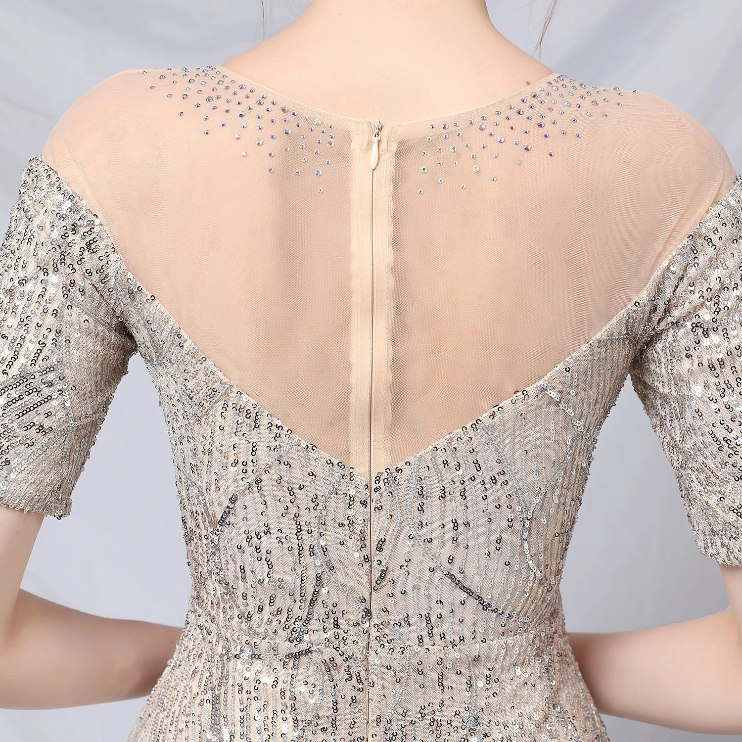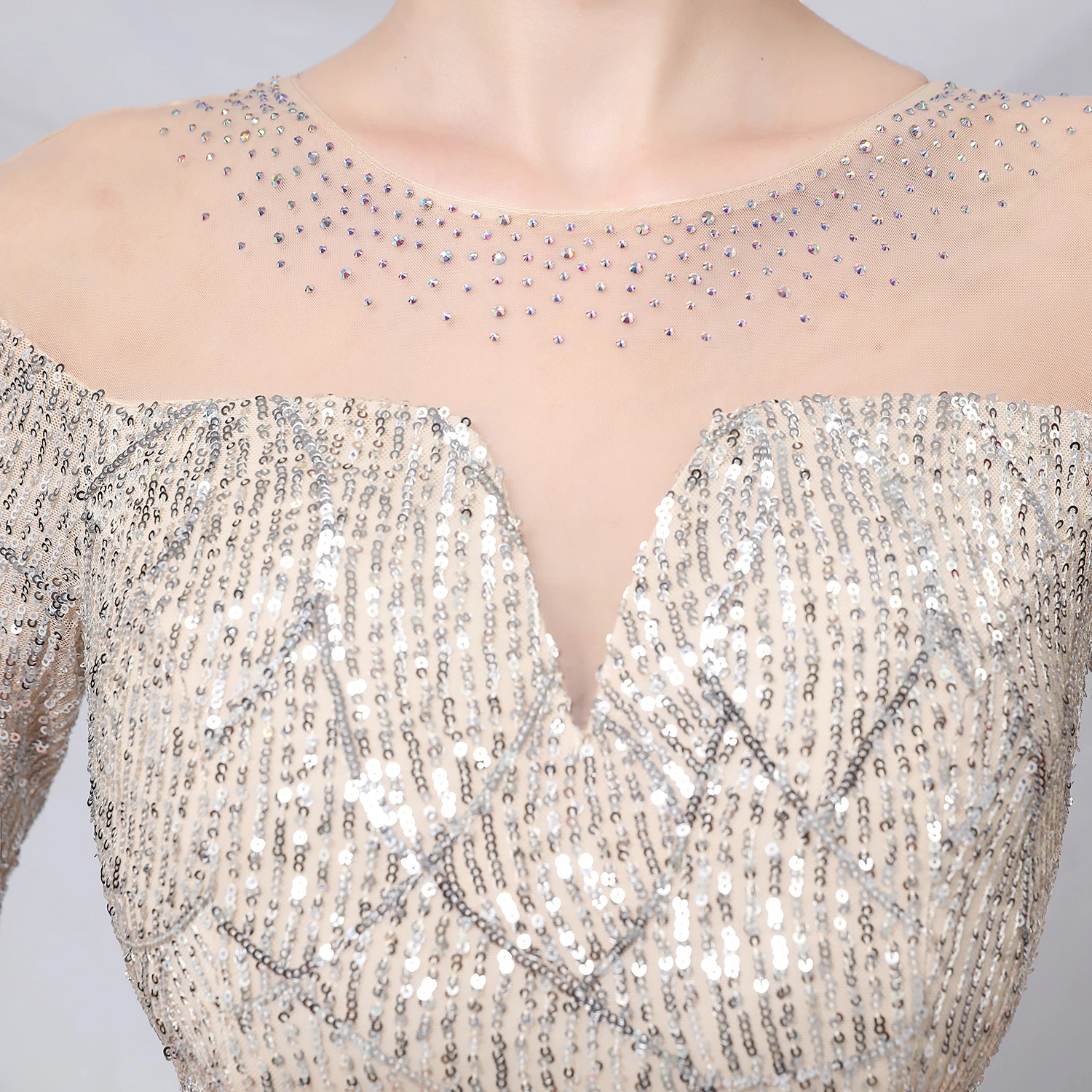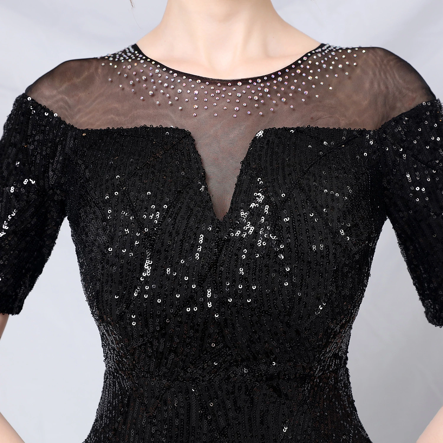 Banquet Temperament Elegant Long Mid-Sleeve Sleeve Sequin Aura Queen Fishtail Evening Dress