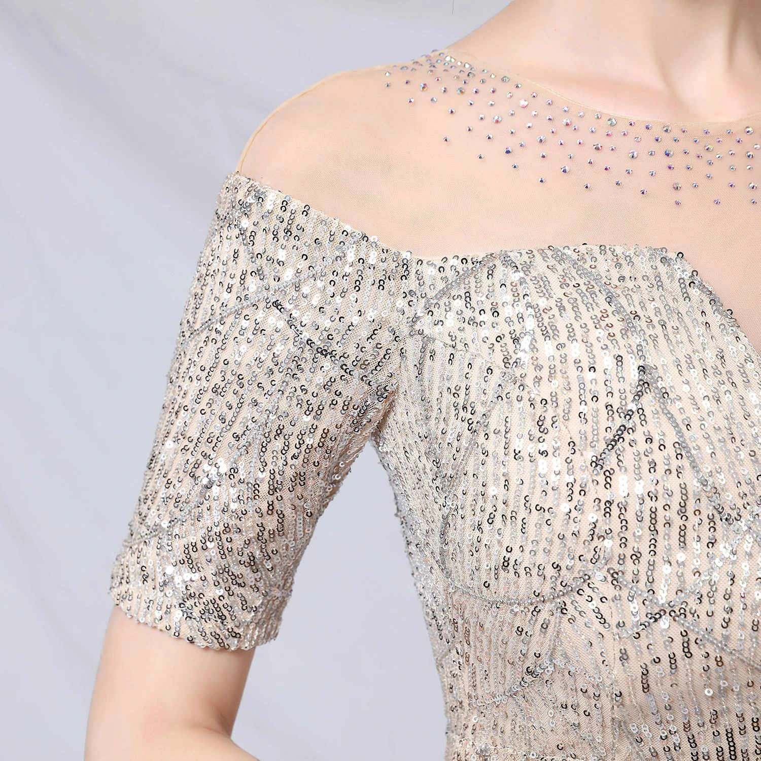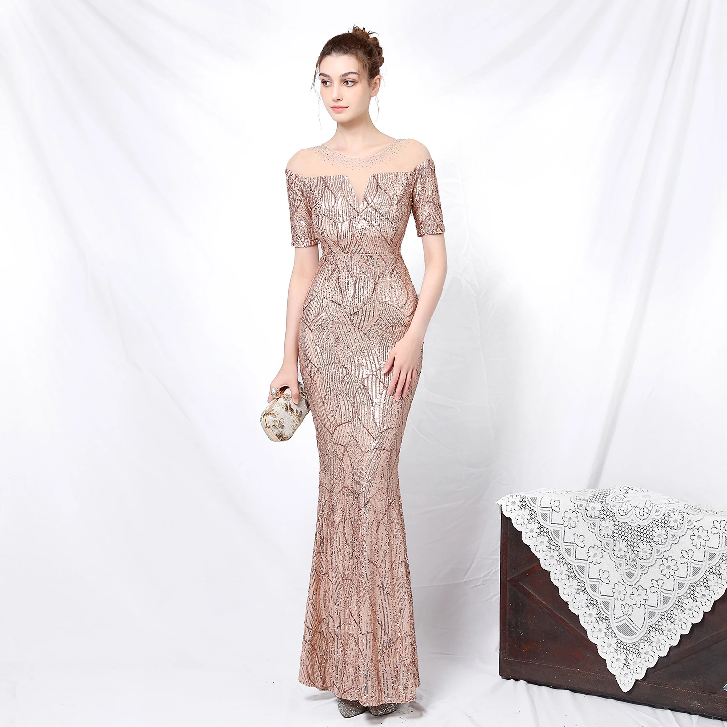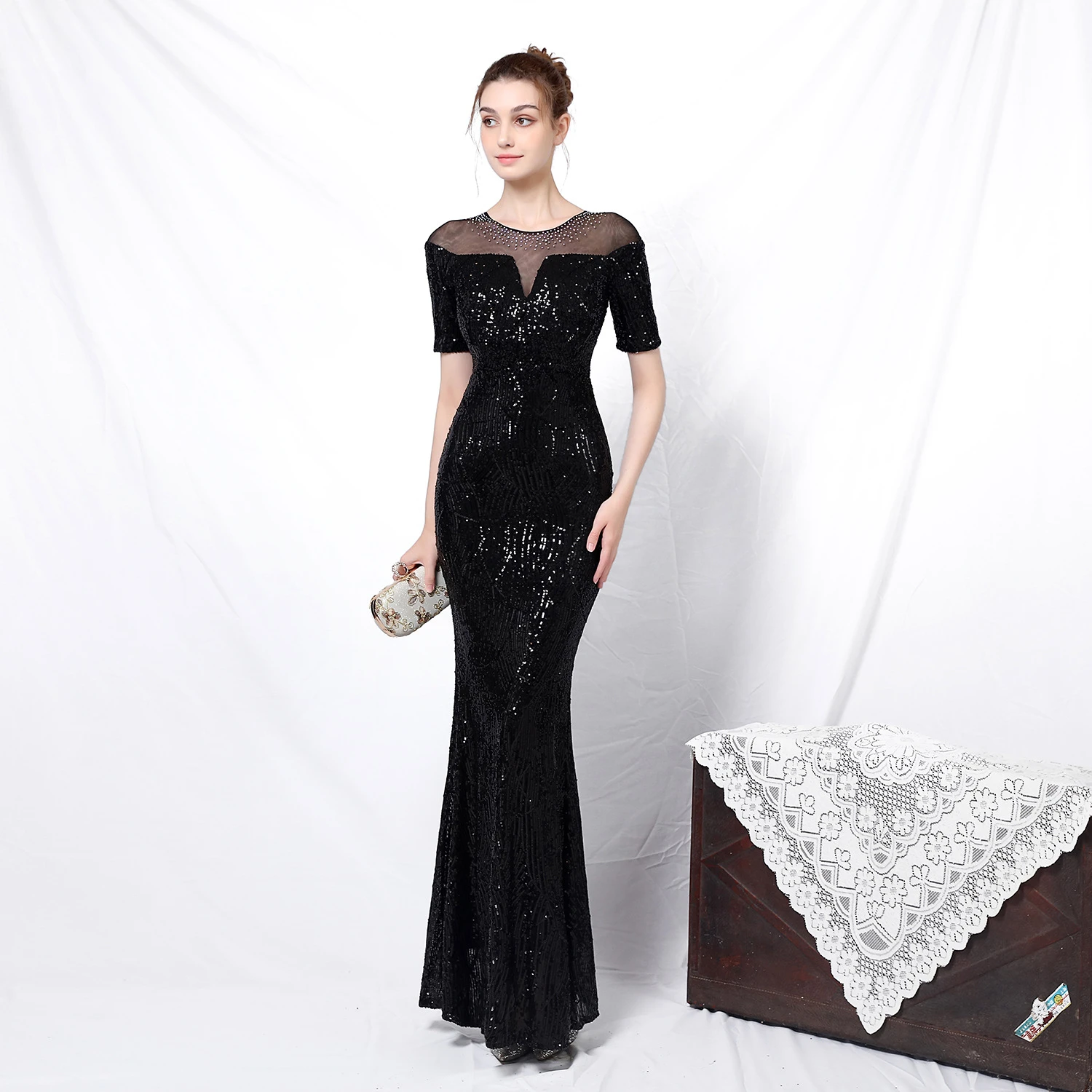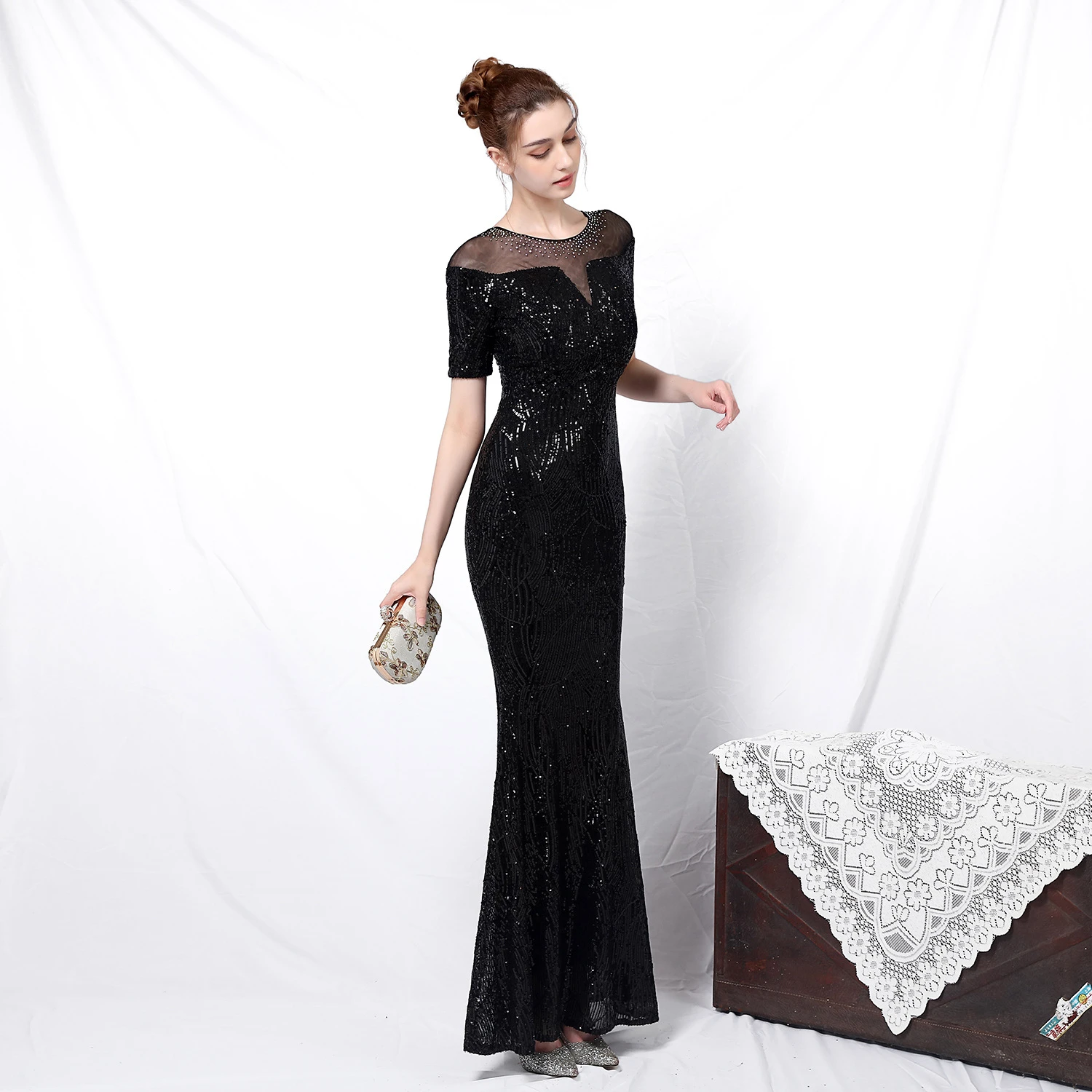 Banquet Temperament Elegant Long Mid-Sleeve Sleeve Sequin Aura Queen Fishtail Evening Dress