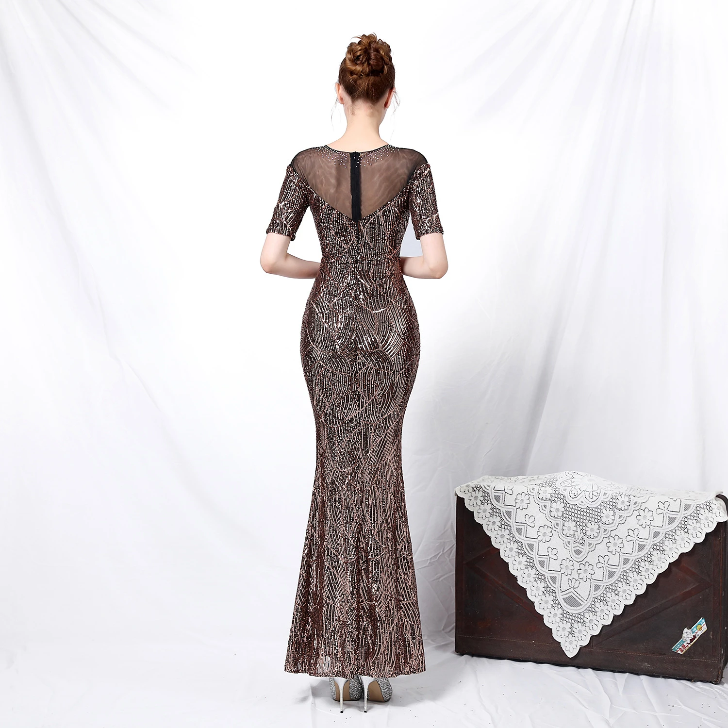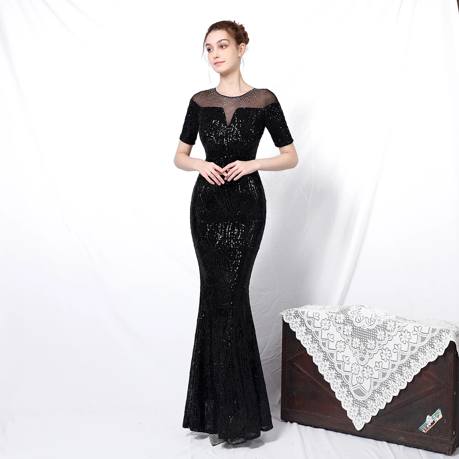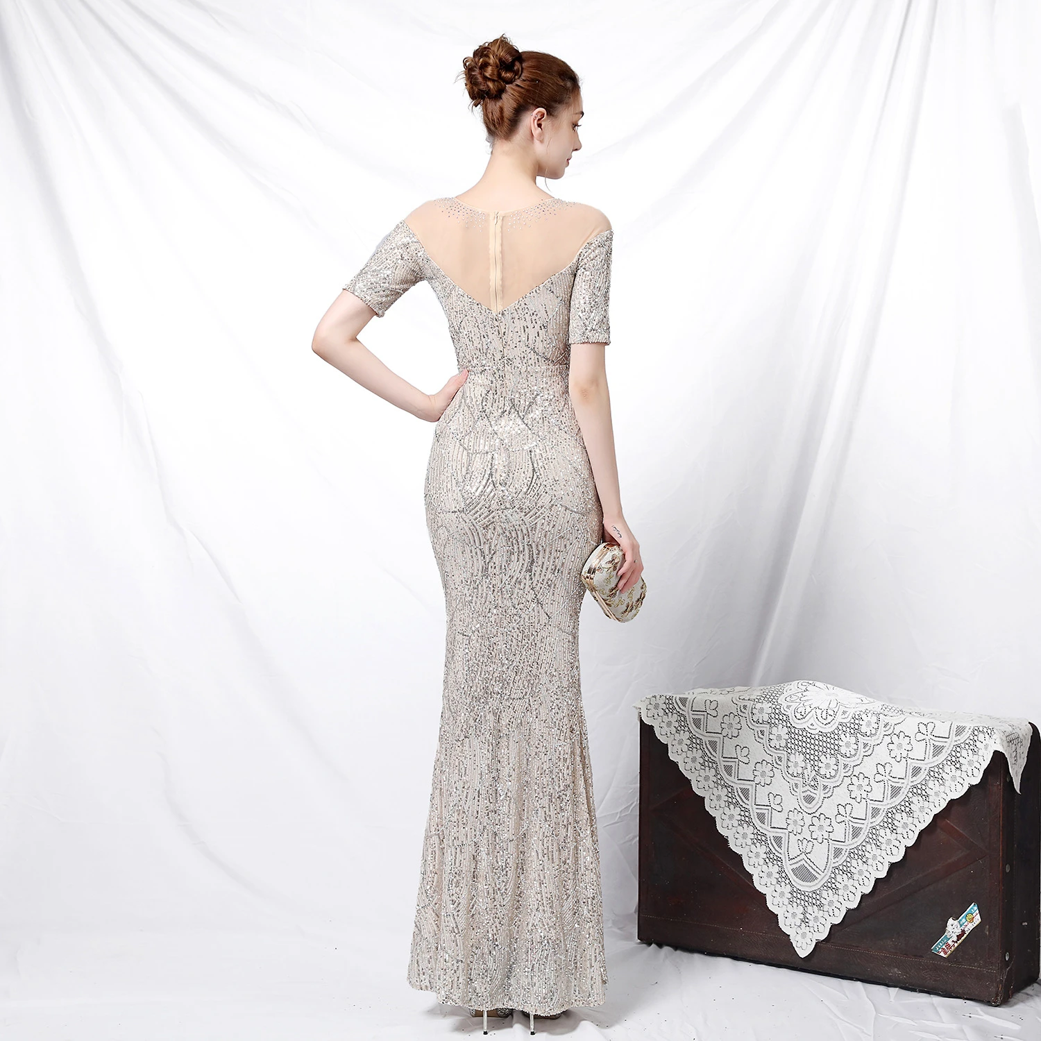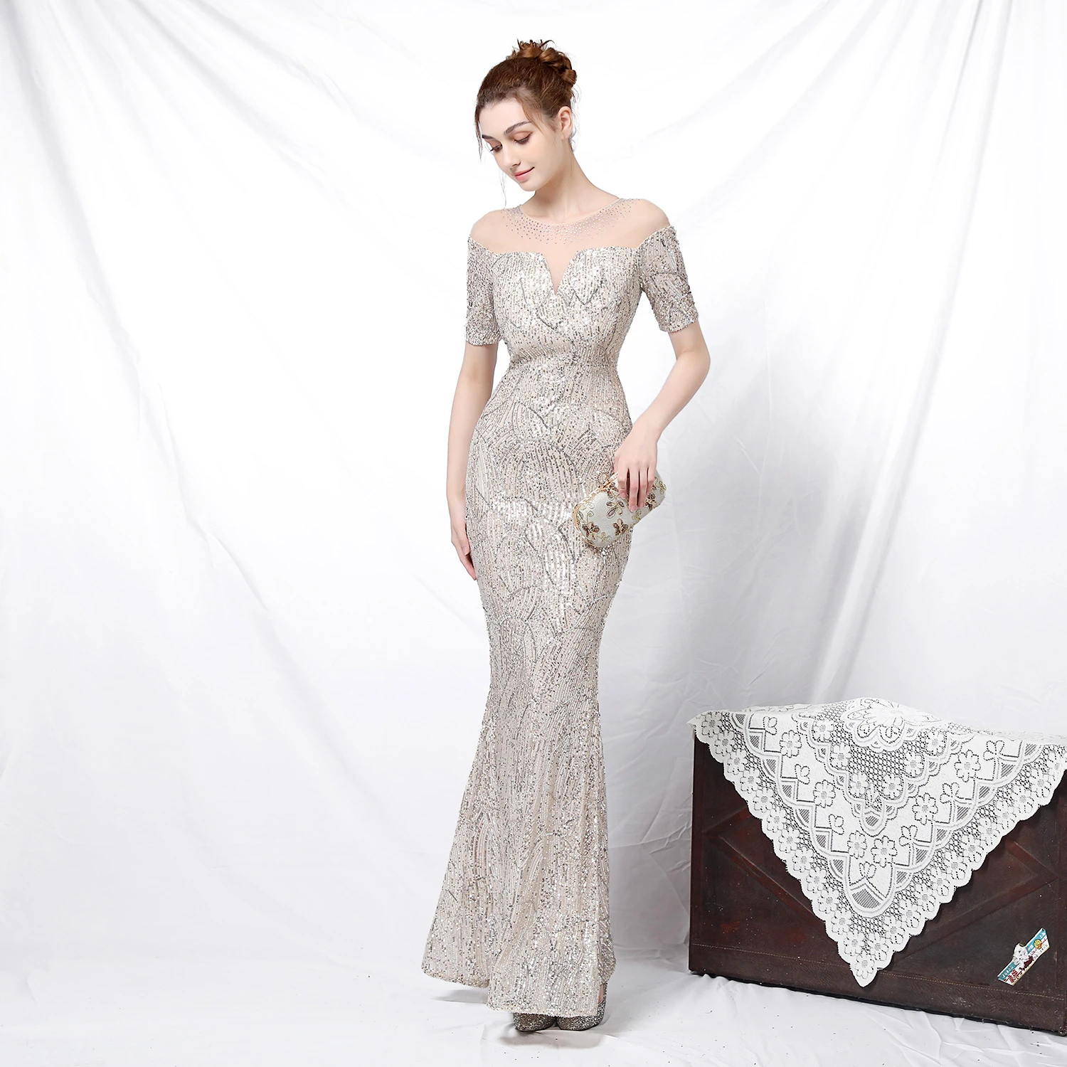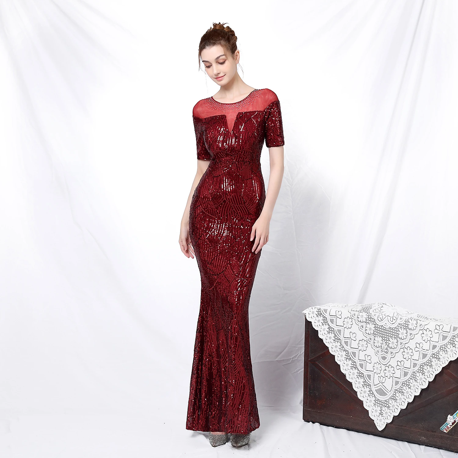 Banquet Temperament Elegant Long Mid-Sleeve Sleeve Sequin Aura Queen Fishtail Evening Dress