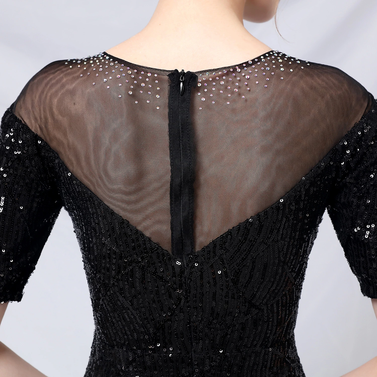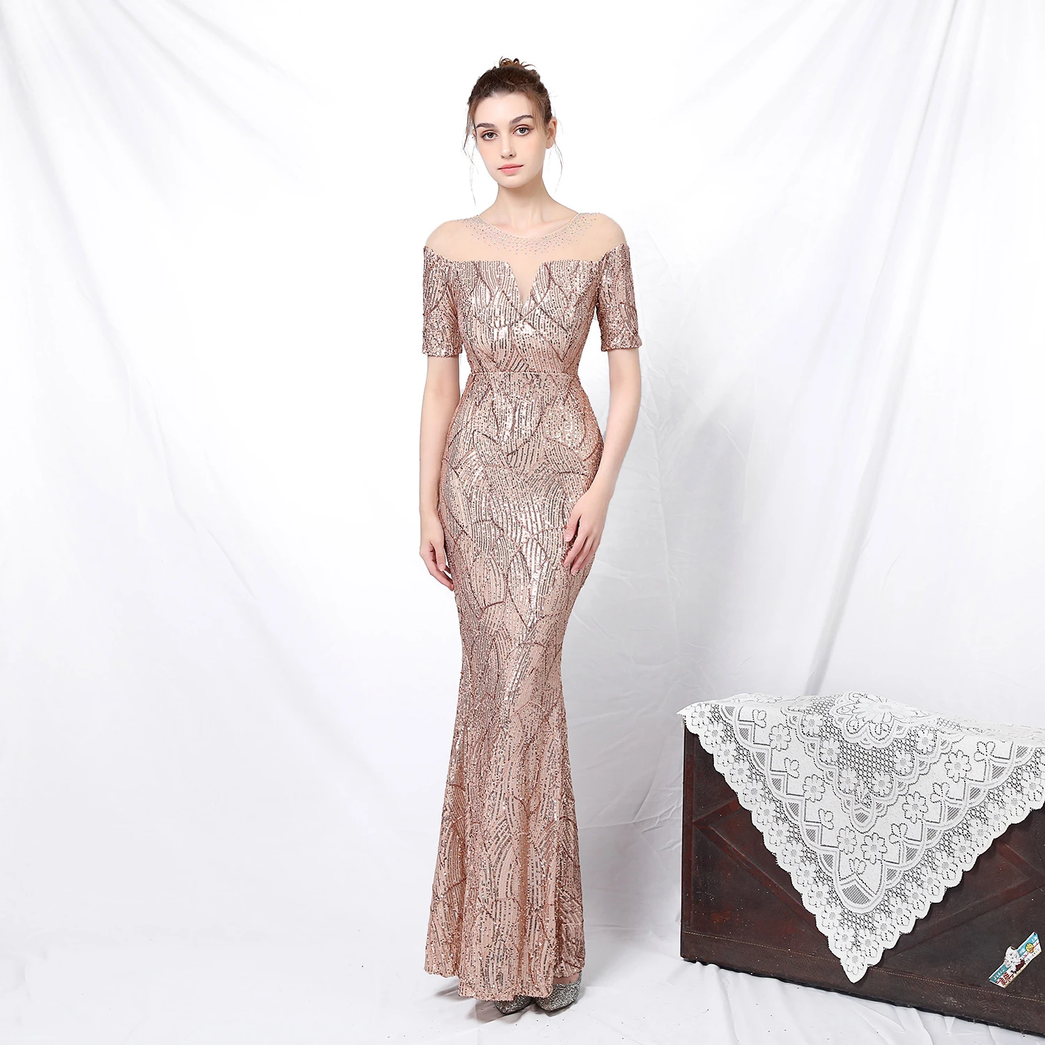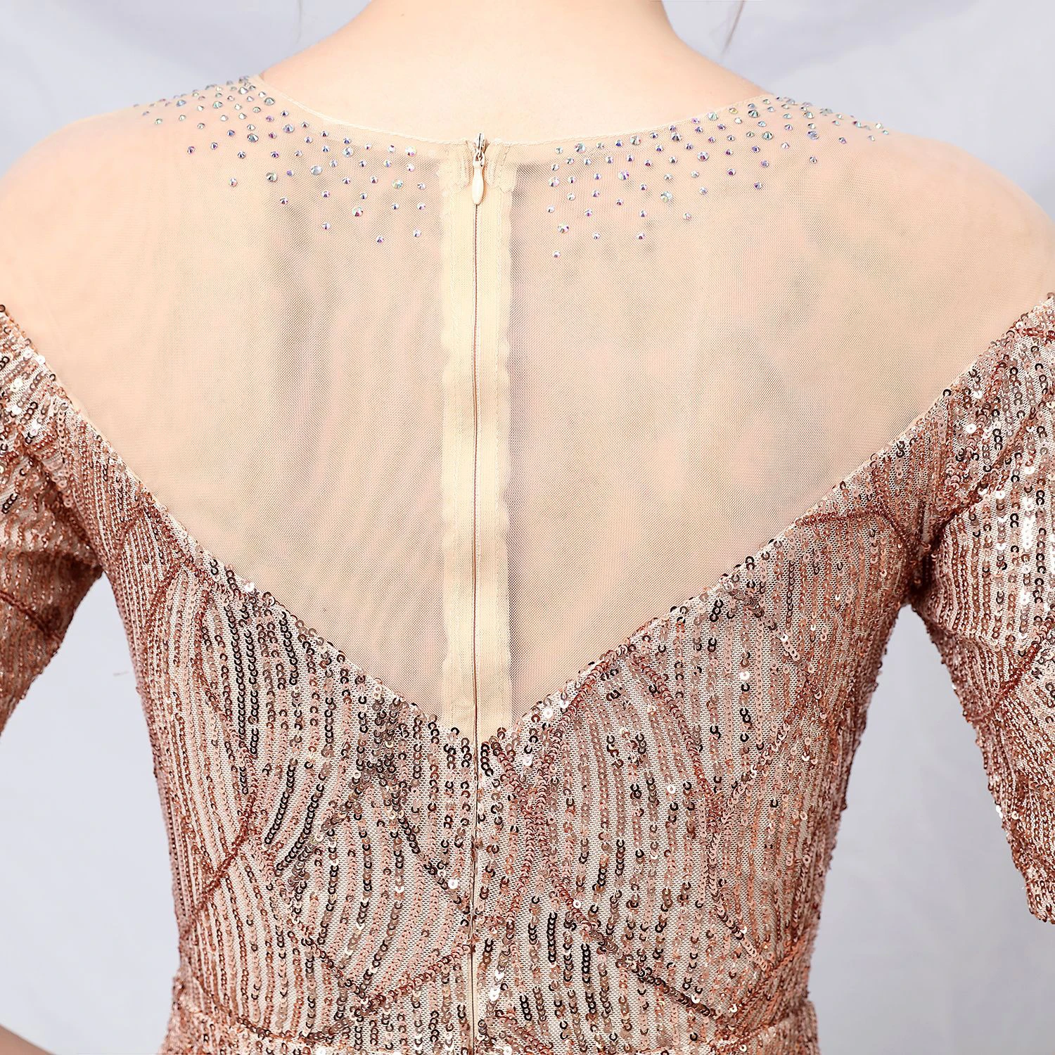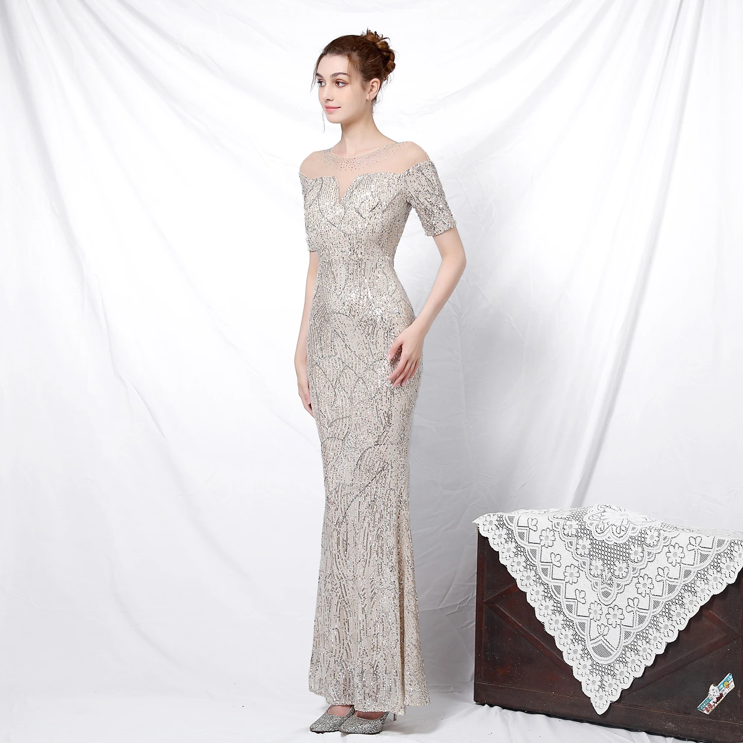 Banquet Temperament Elegant Long Mid-Sleeve Sleeve Sequin Aura Queen Fishtail Evening Dress