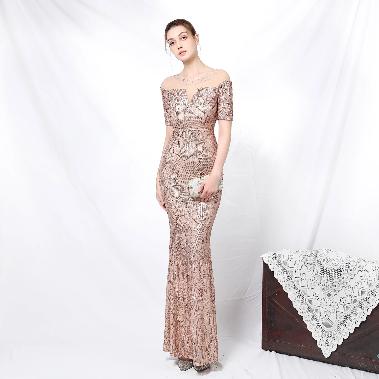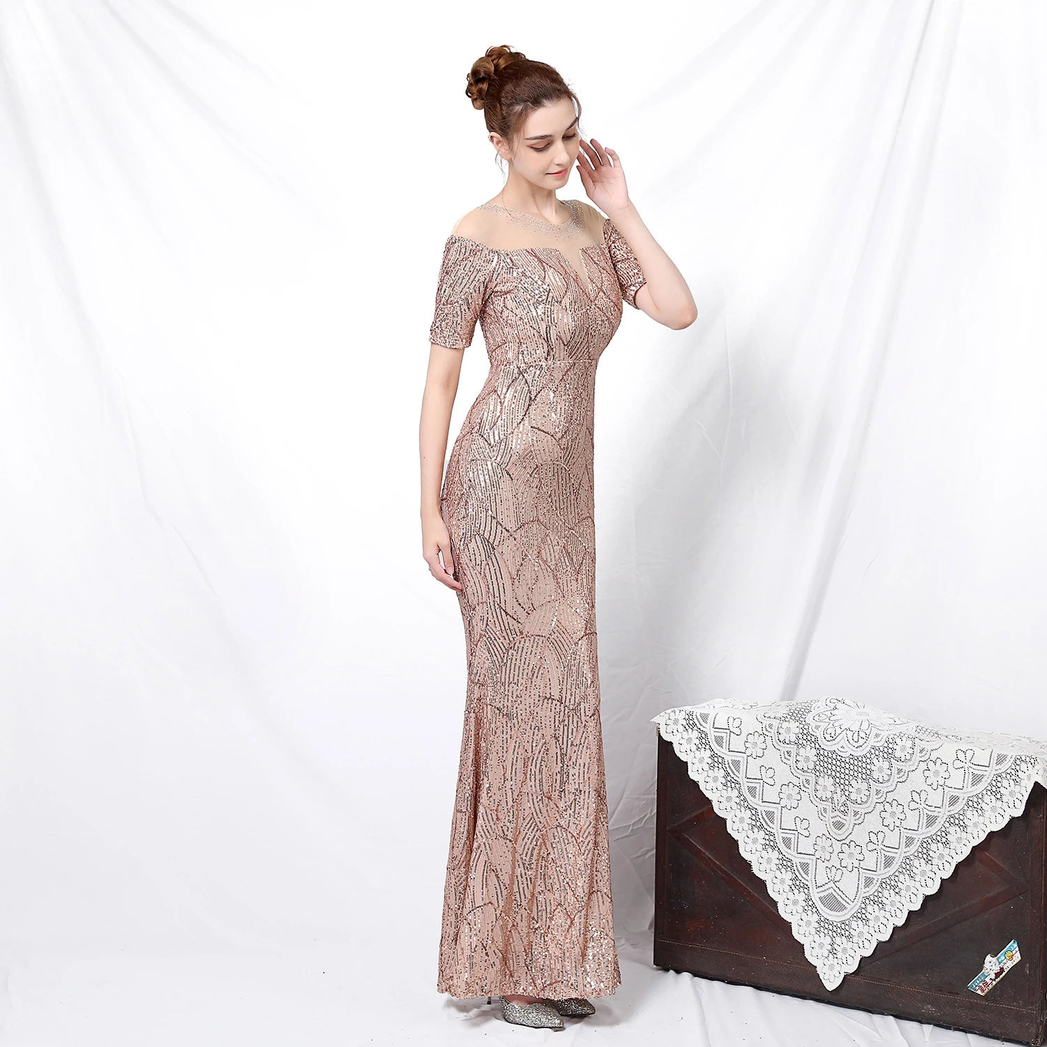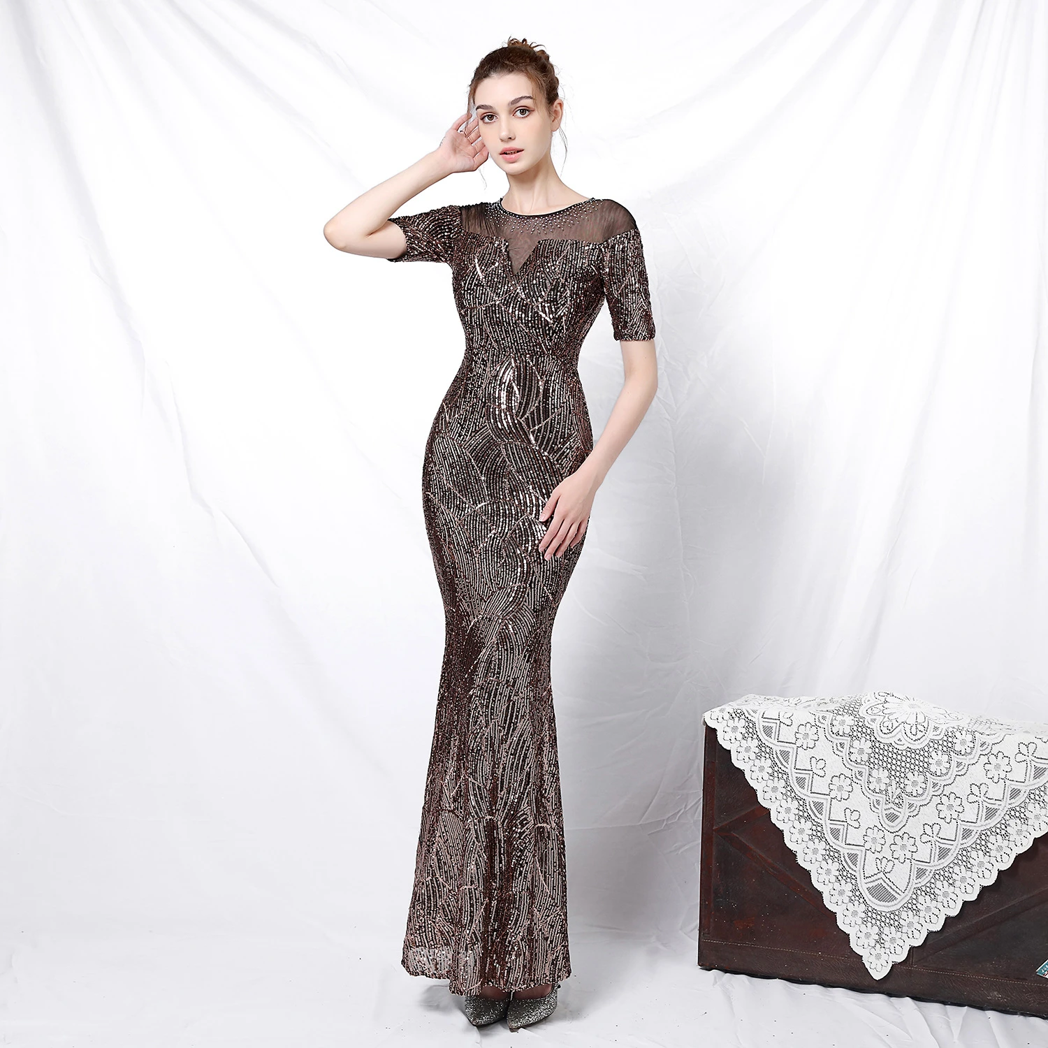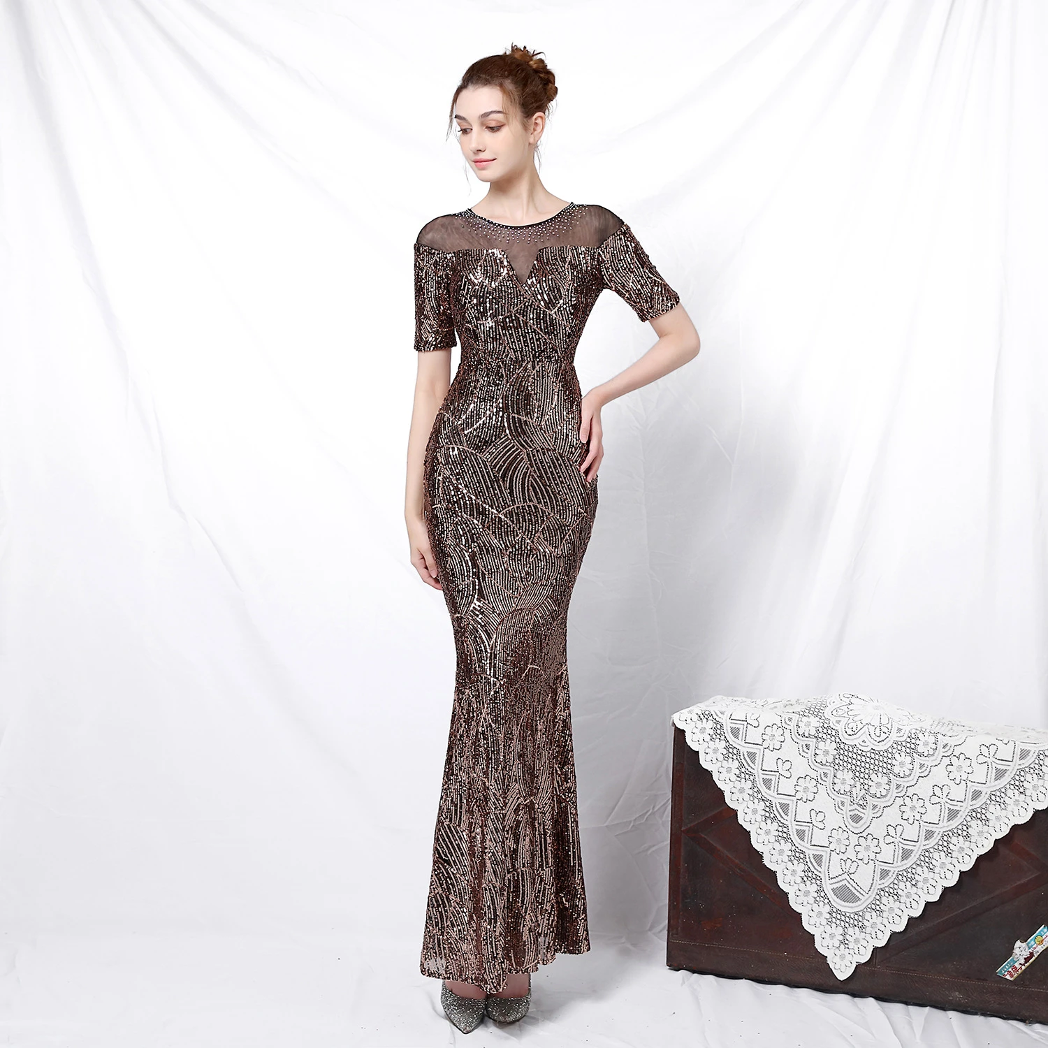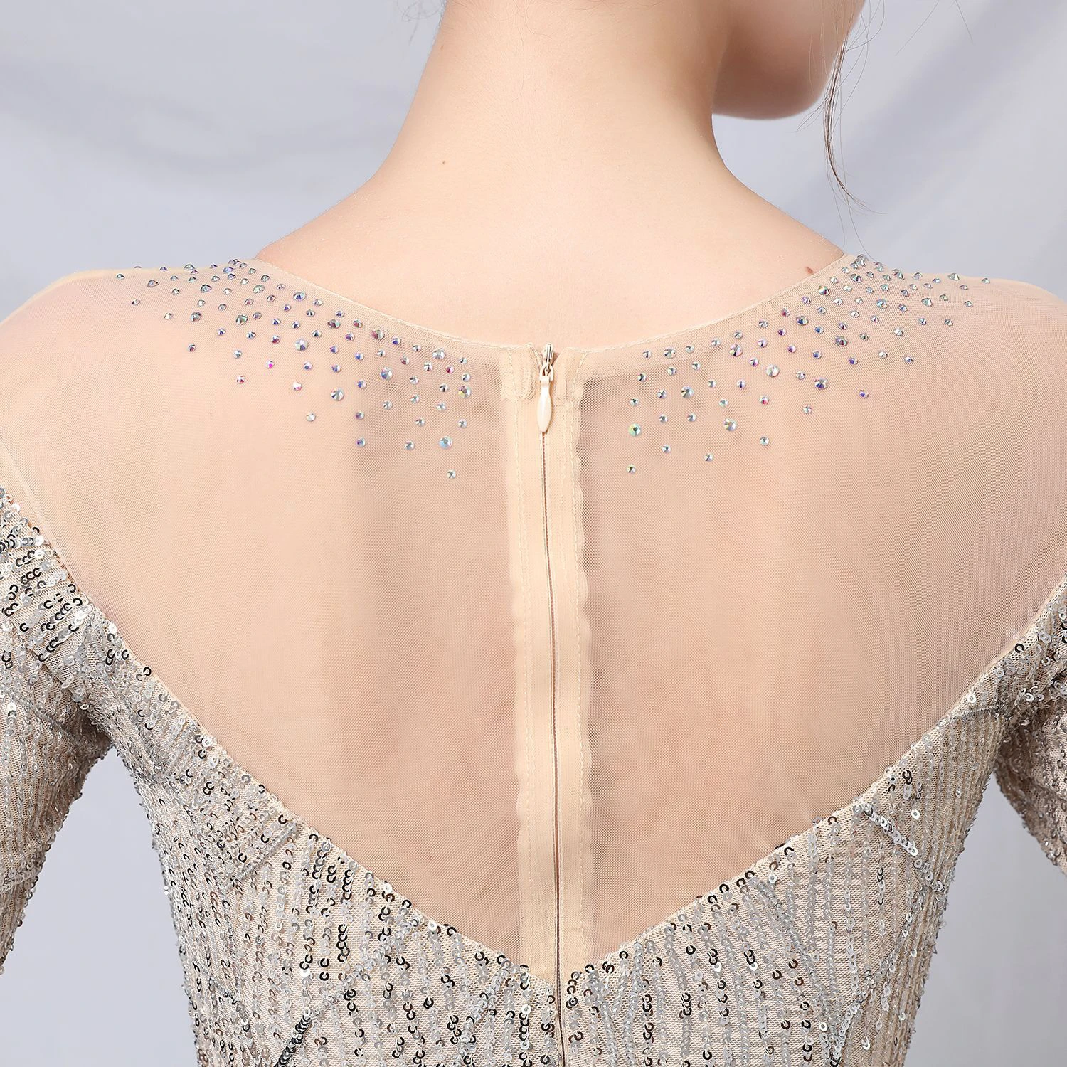 Banquet Temperament Elegant Long Mid-Sleeve Sleeve Sequin Aura Queen Fishtail Evening Dress