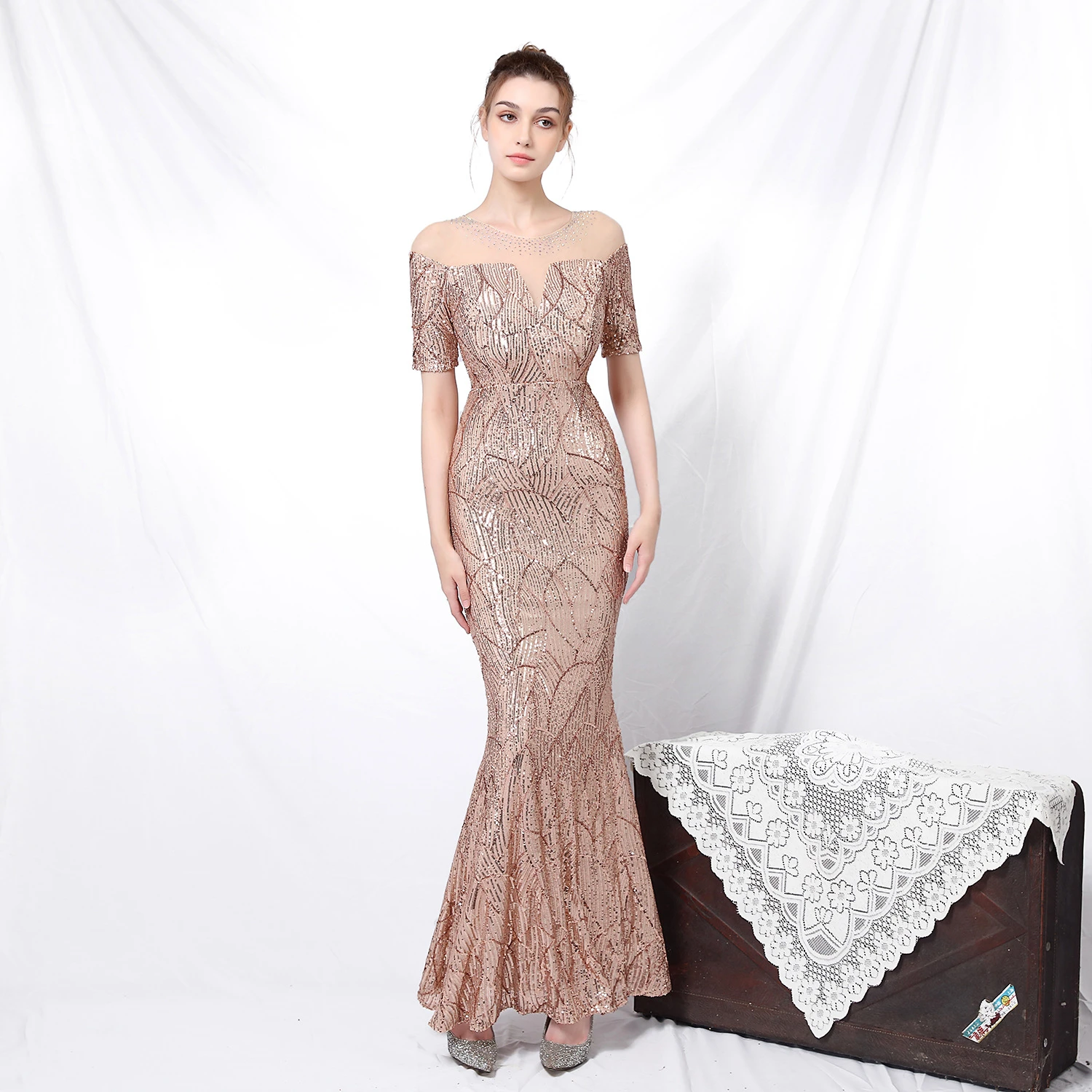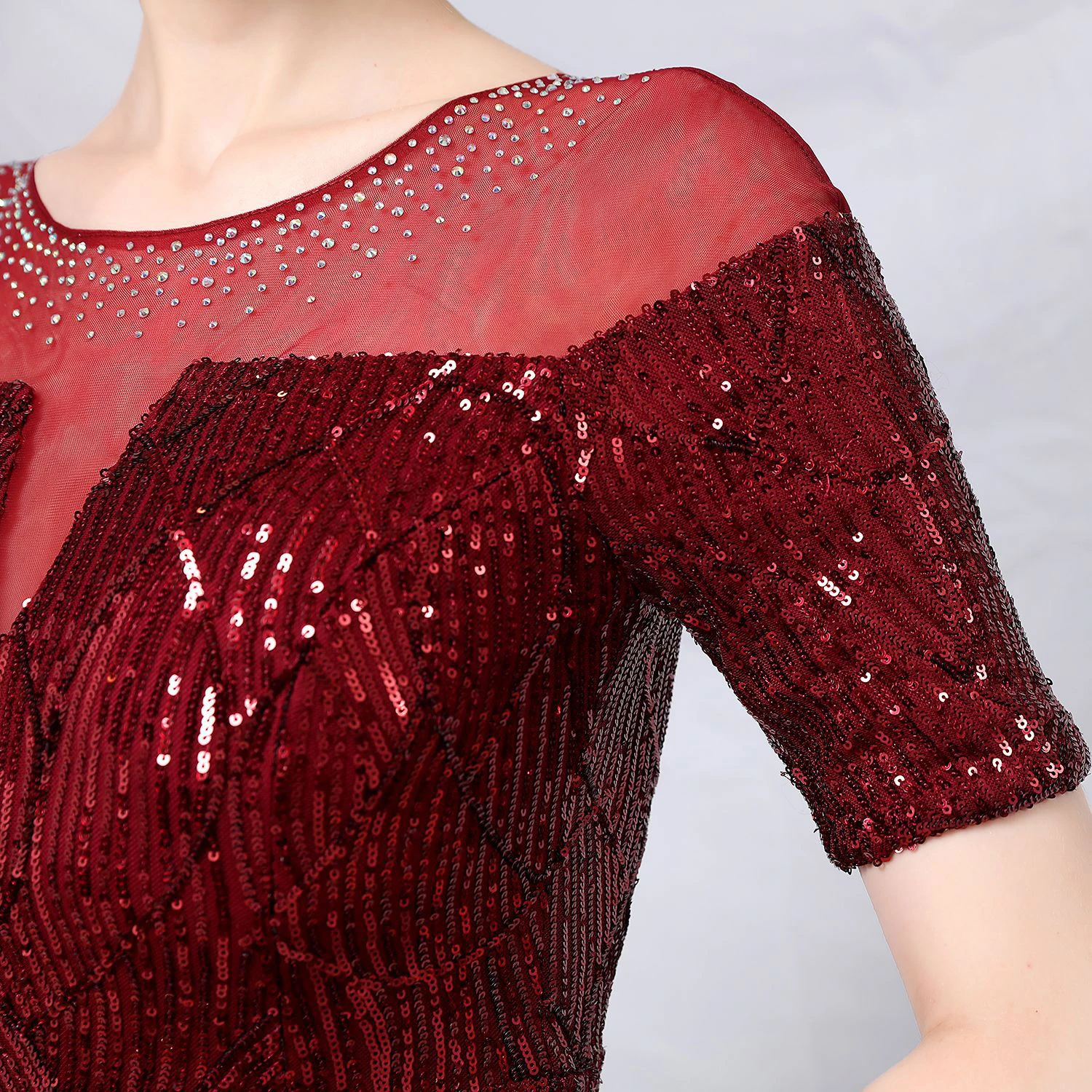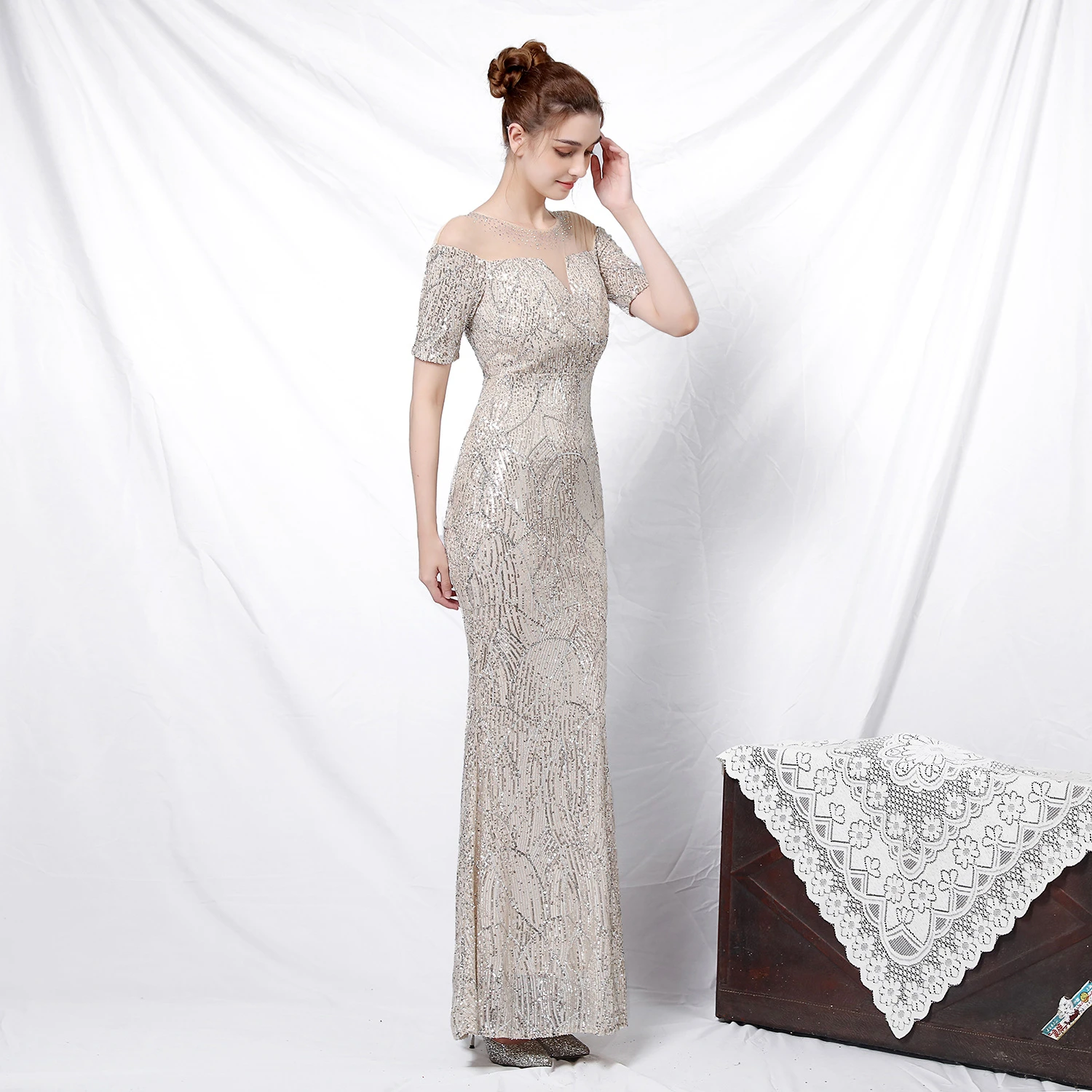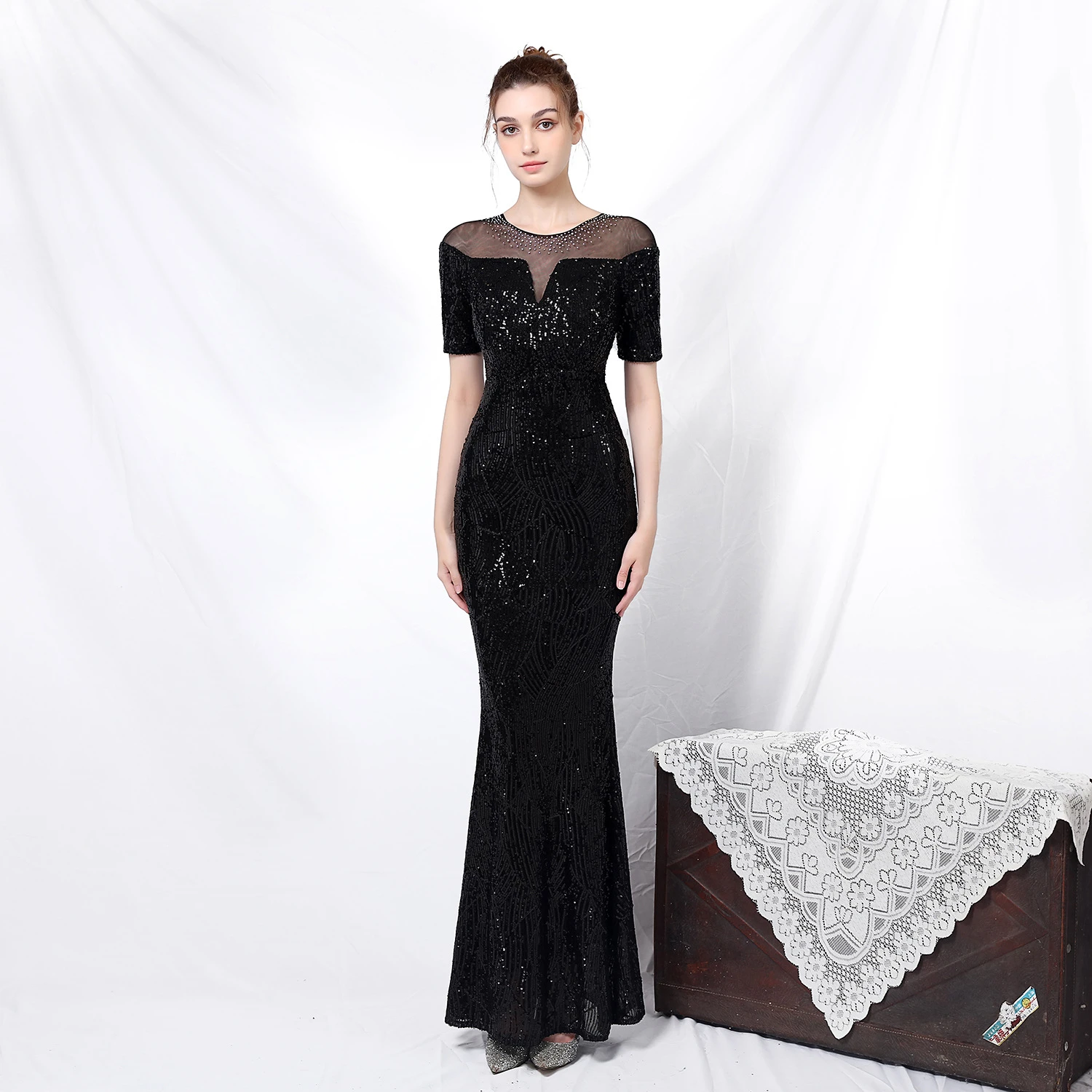 Banquet Temperament Elegant Long Mid-Sleeve Sleeve Sequin Aura Queen Fishtail Evening Dress
