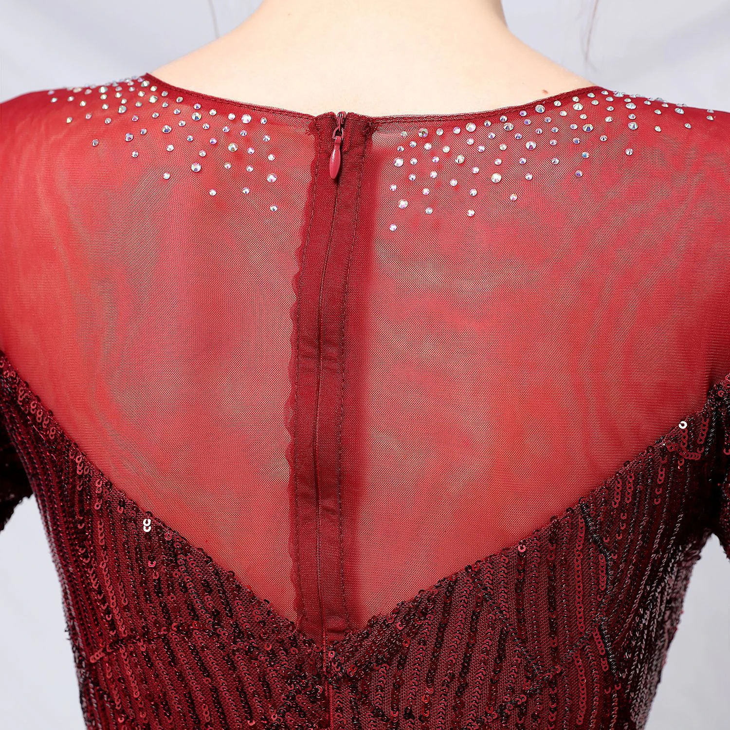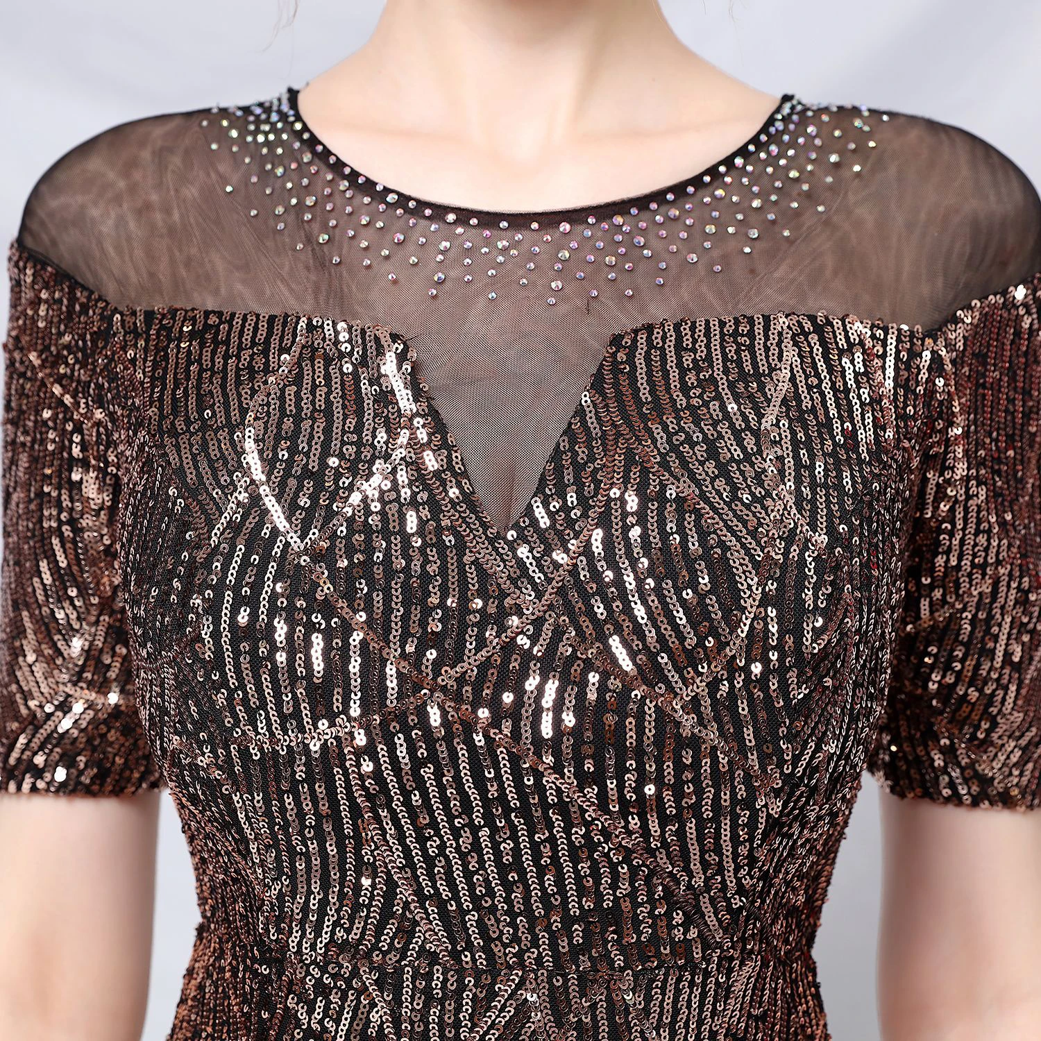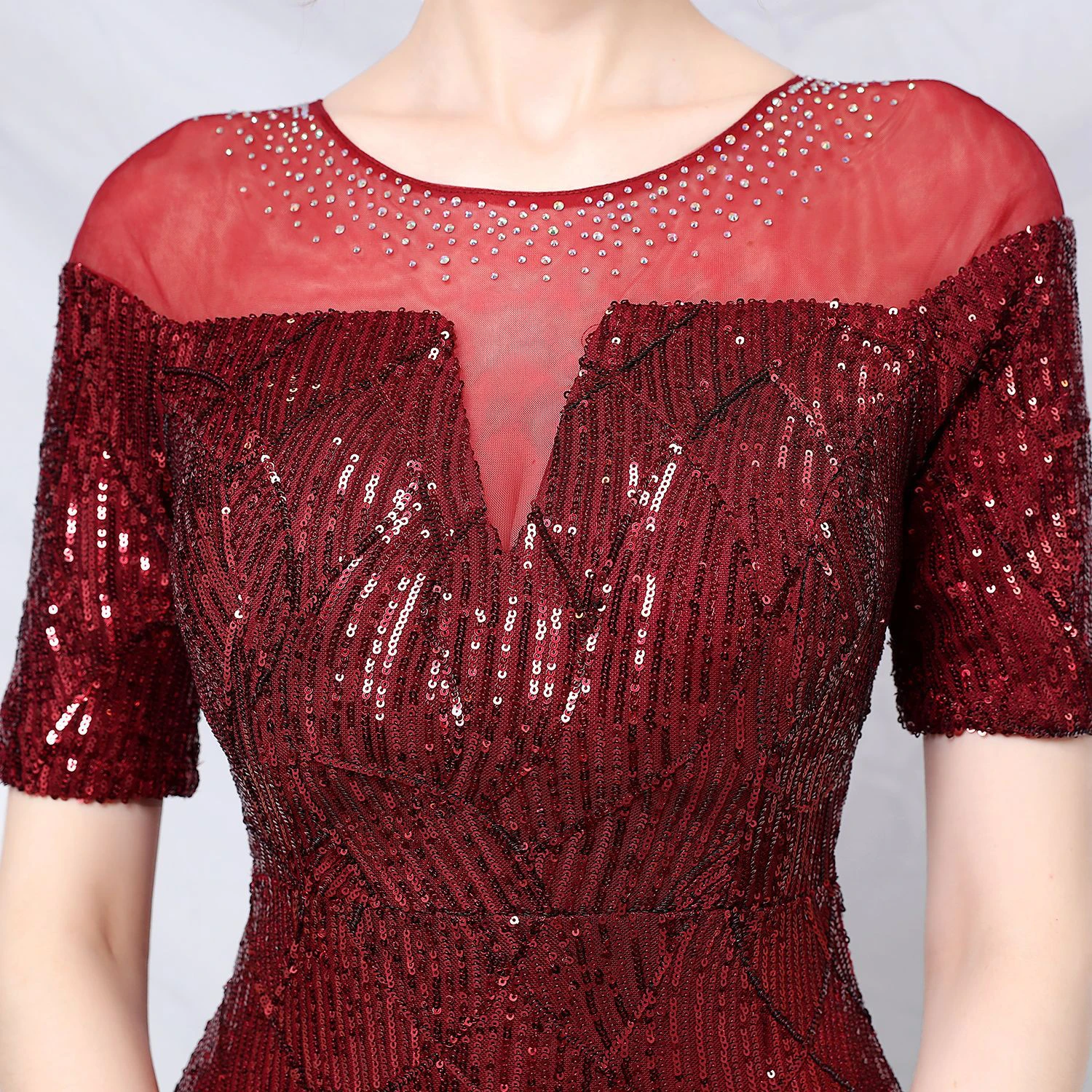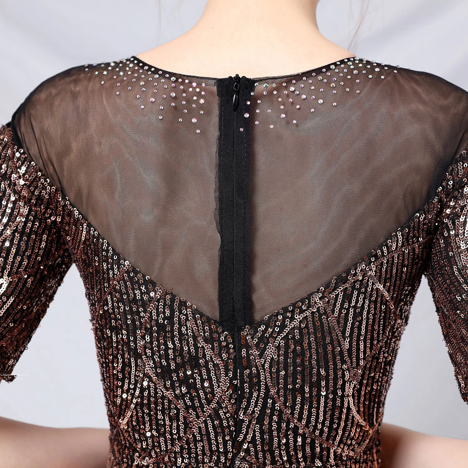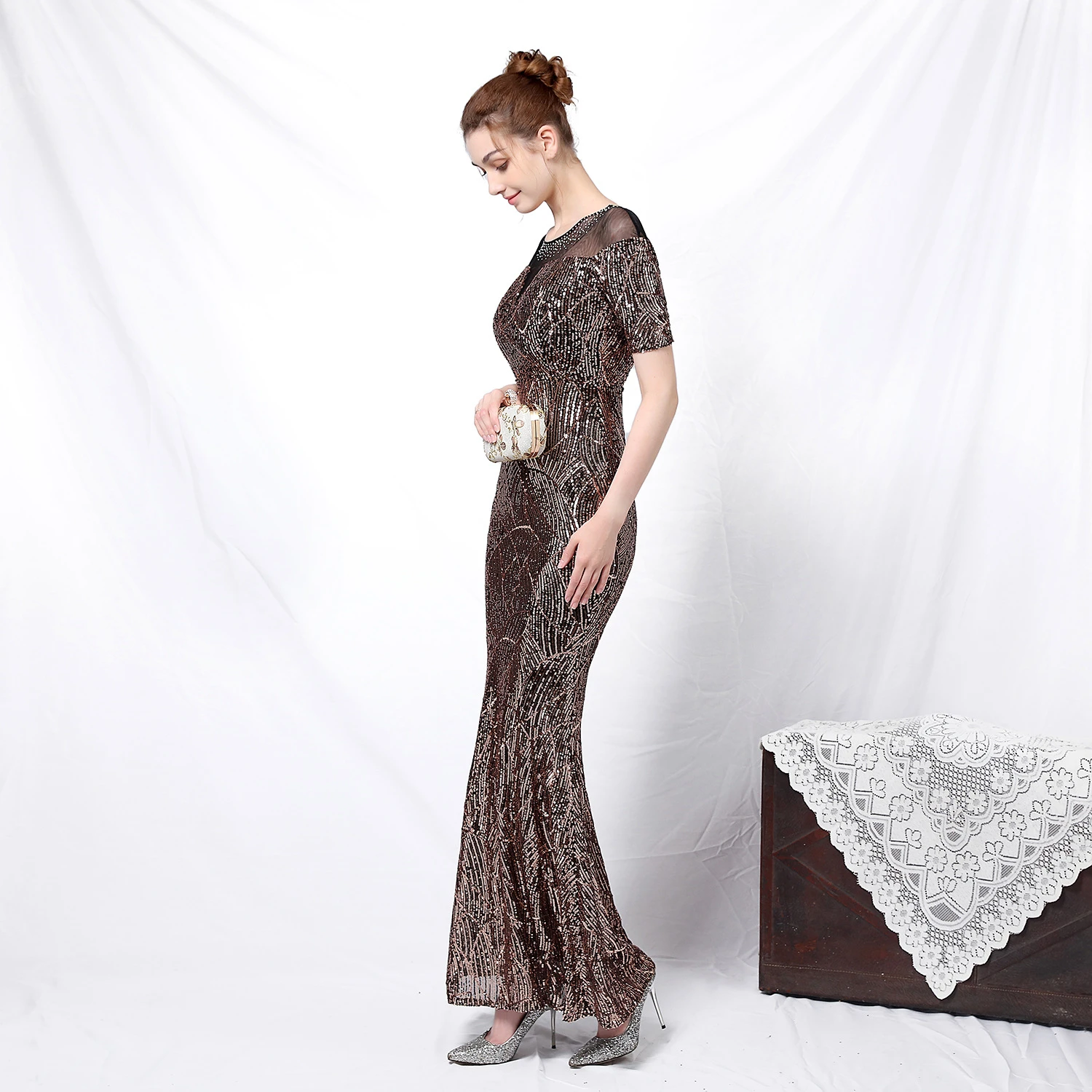 Banquet Temperament Elegant Long Mid-Sleeve Sleeve Sequin Aura Queen Fishtail Evening Dress