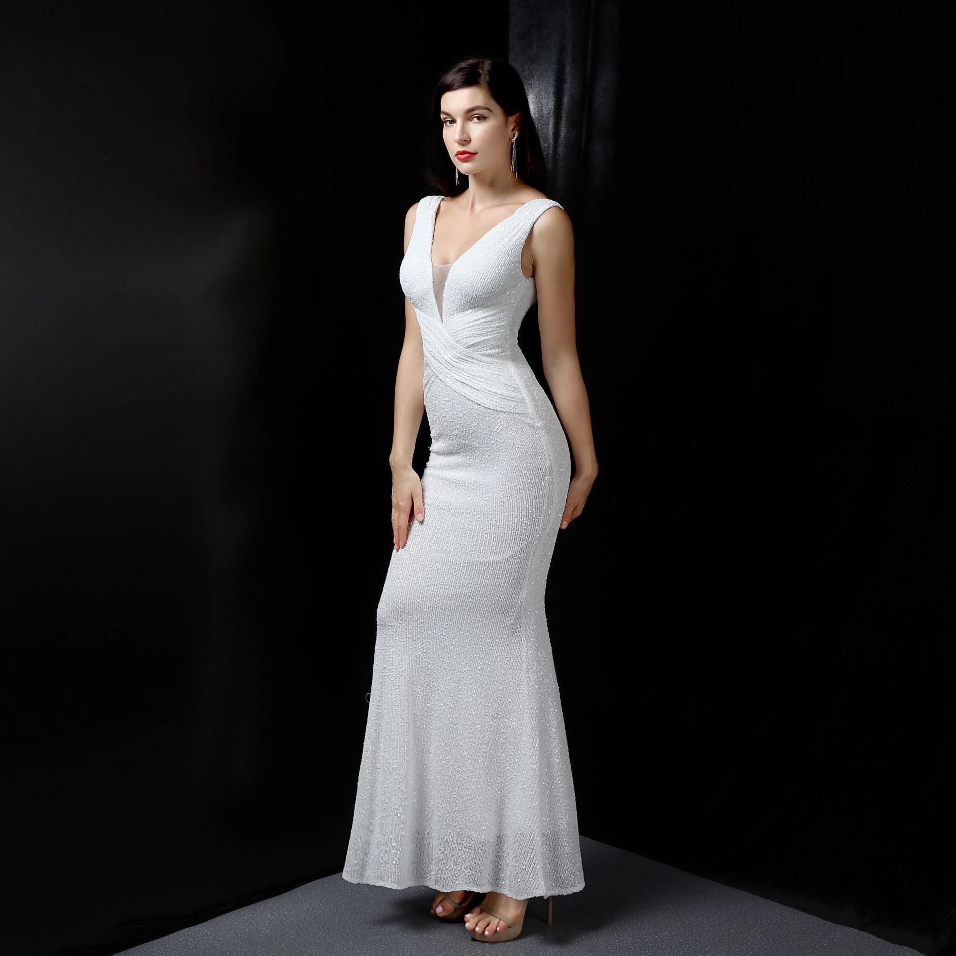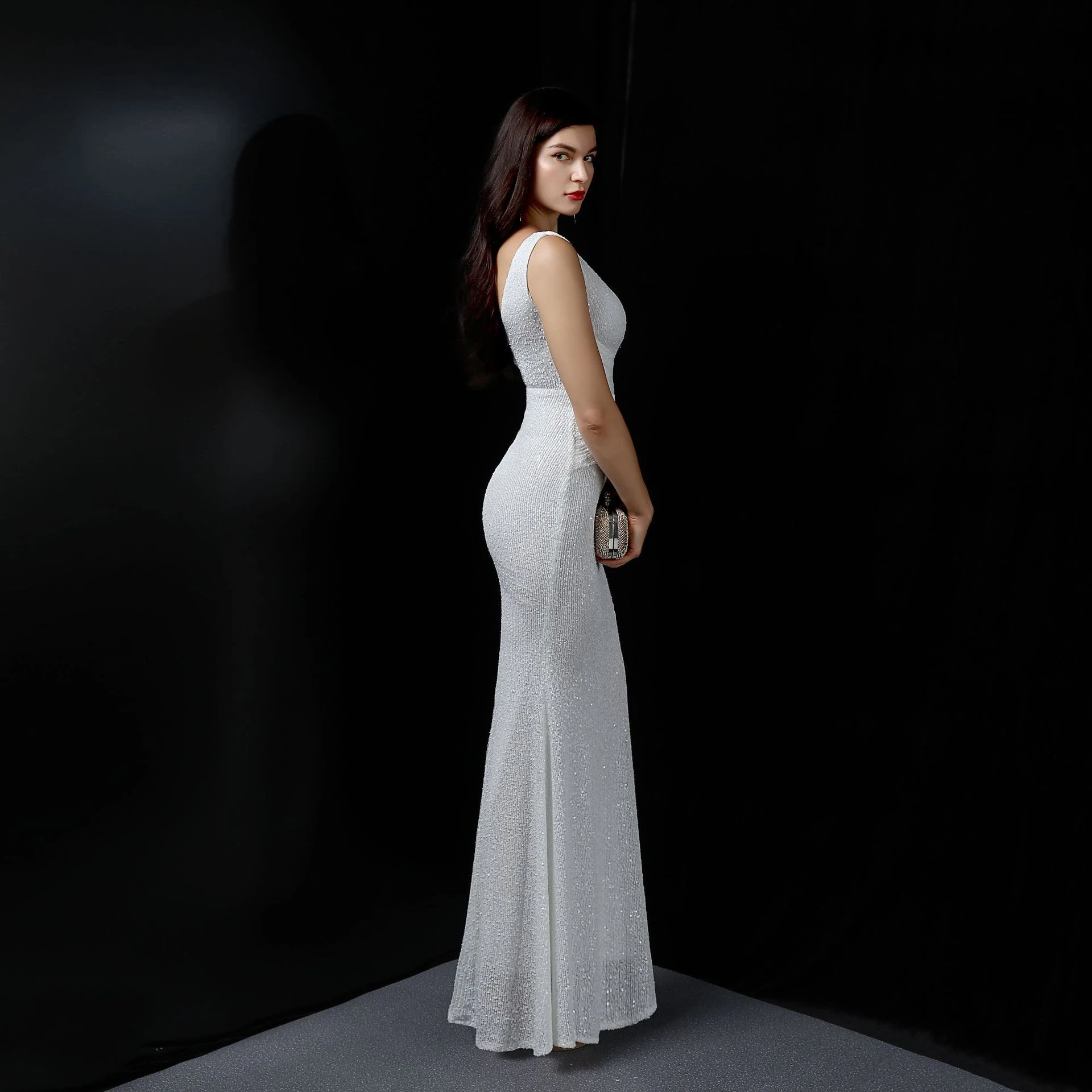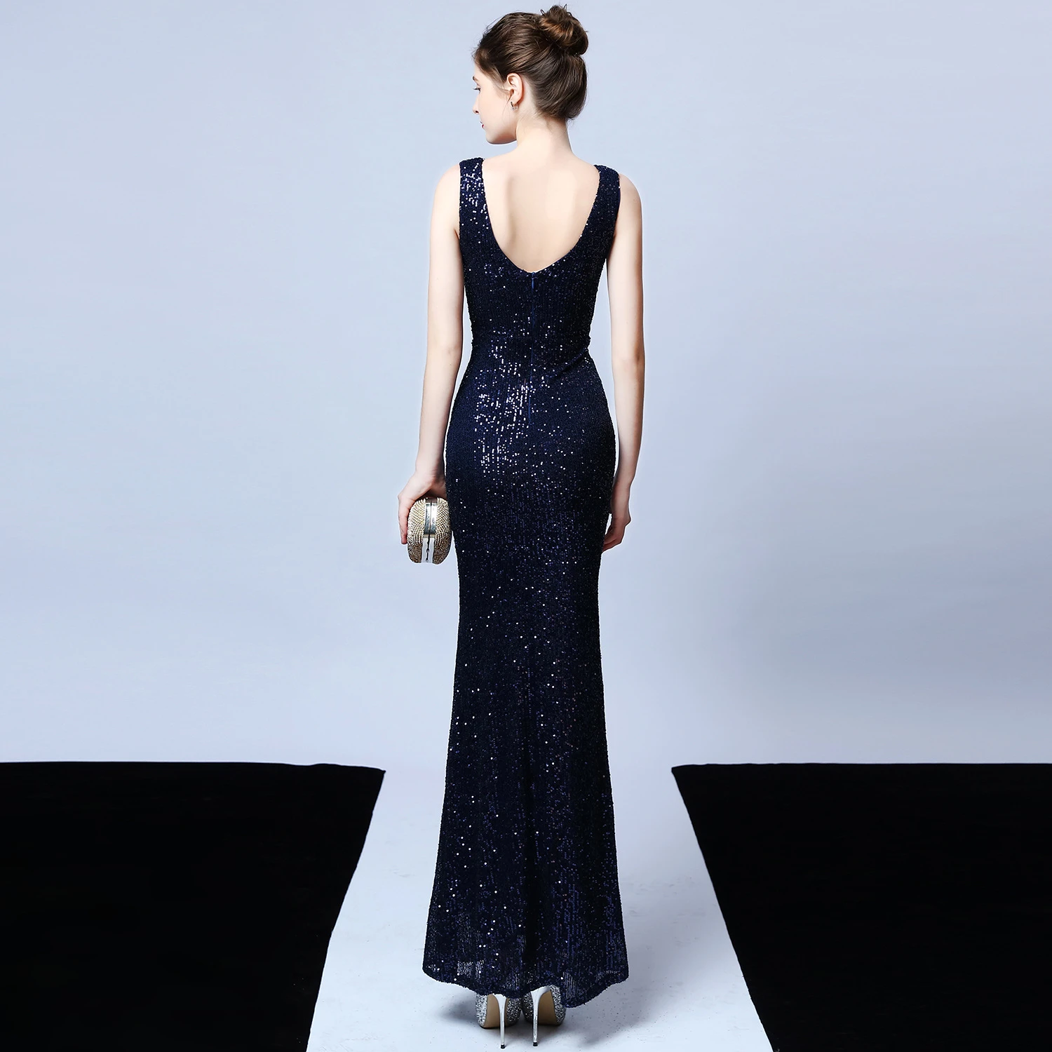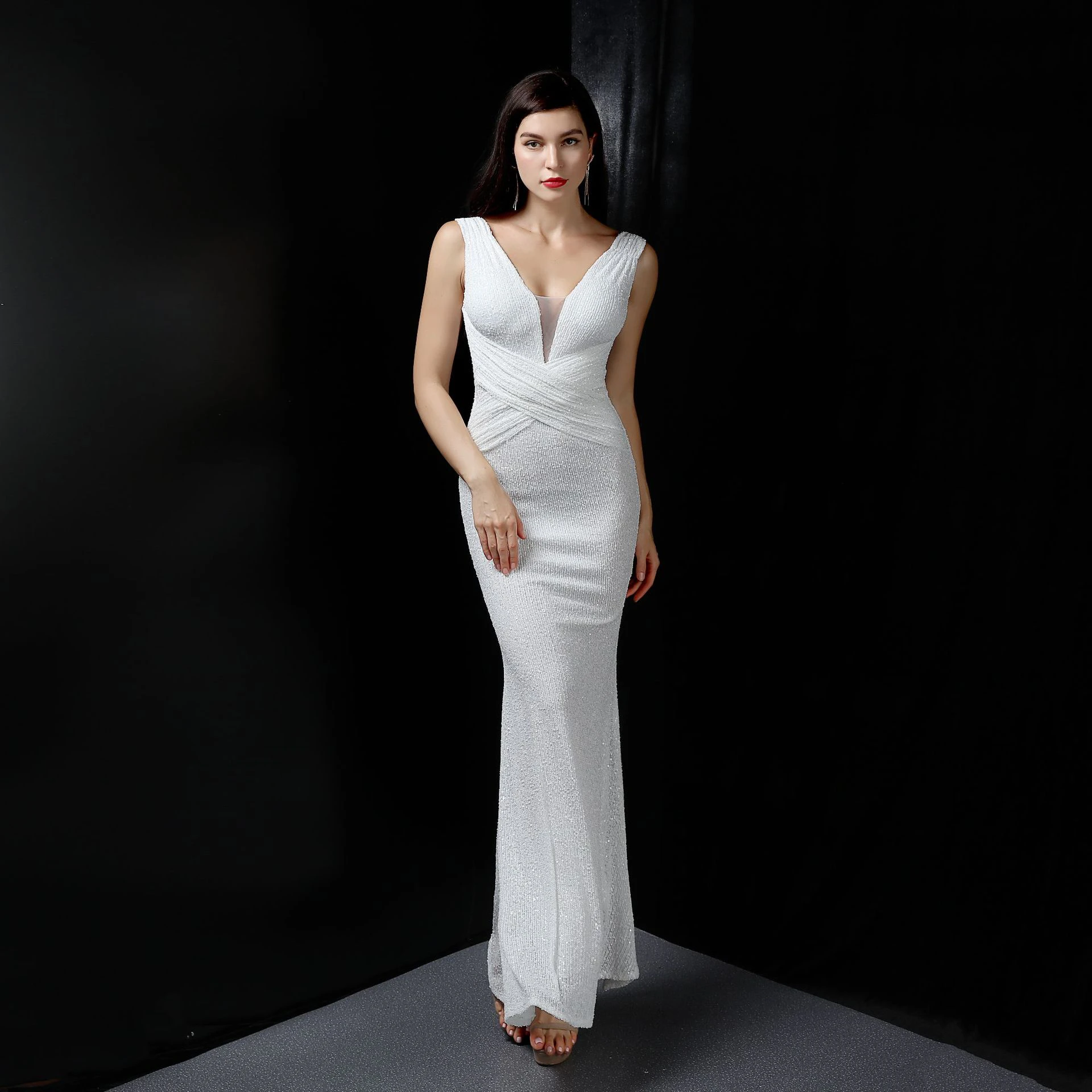 Banquet Temperament Elegant Long Sleeveless Sequined Aura Queen Fishtail Evening Dress