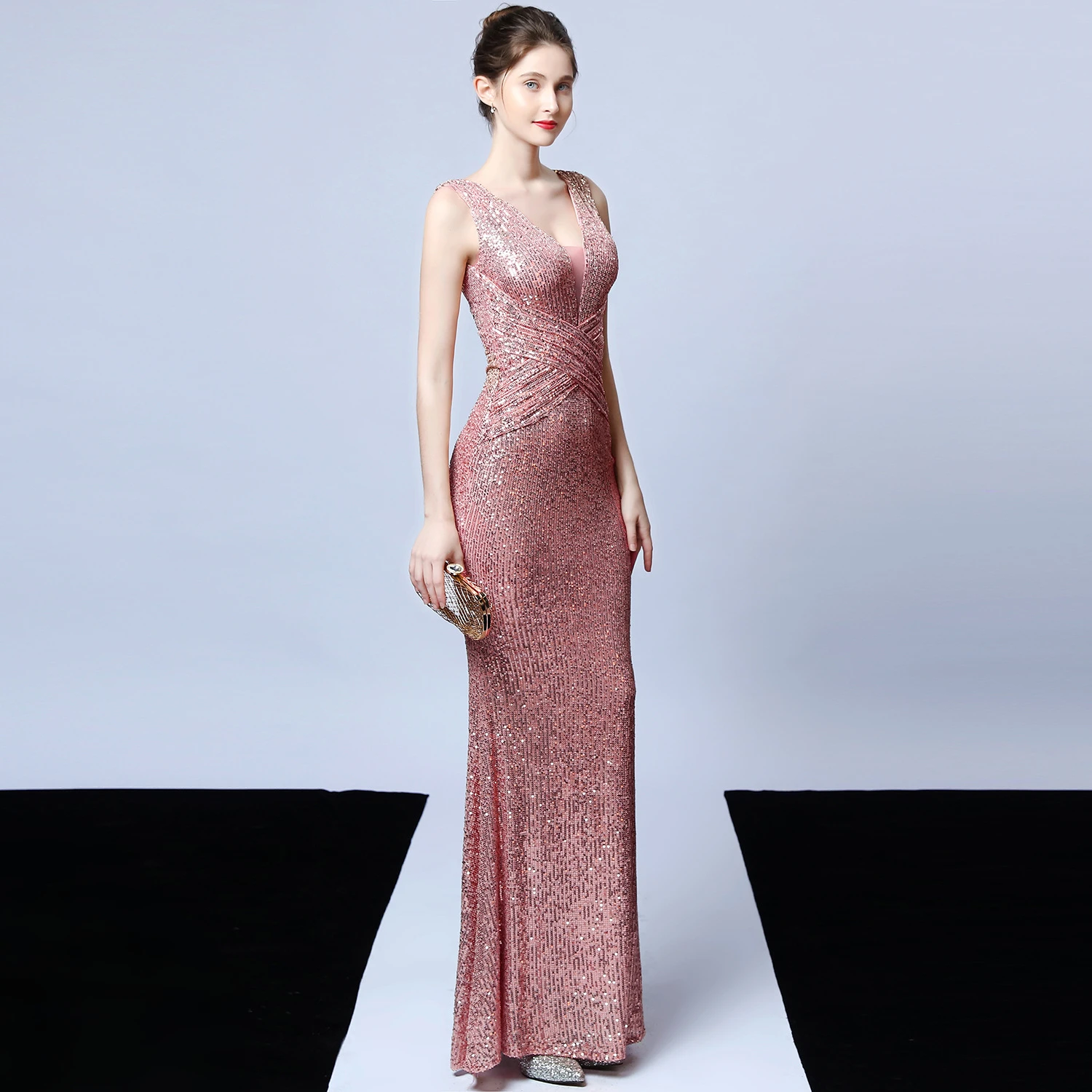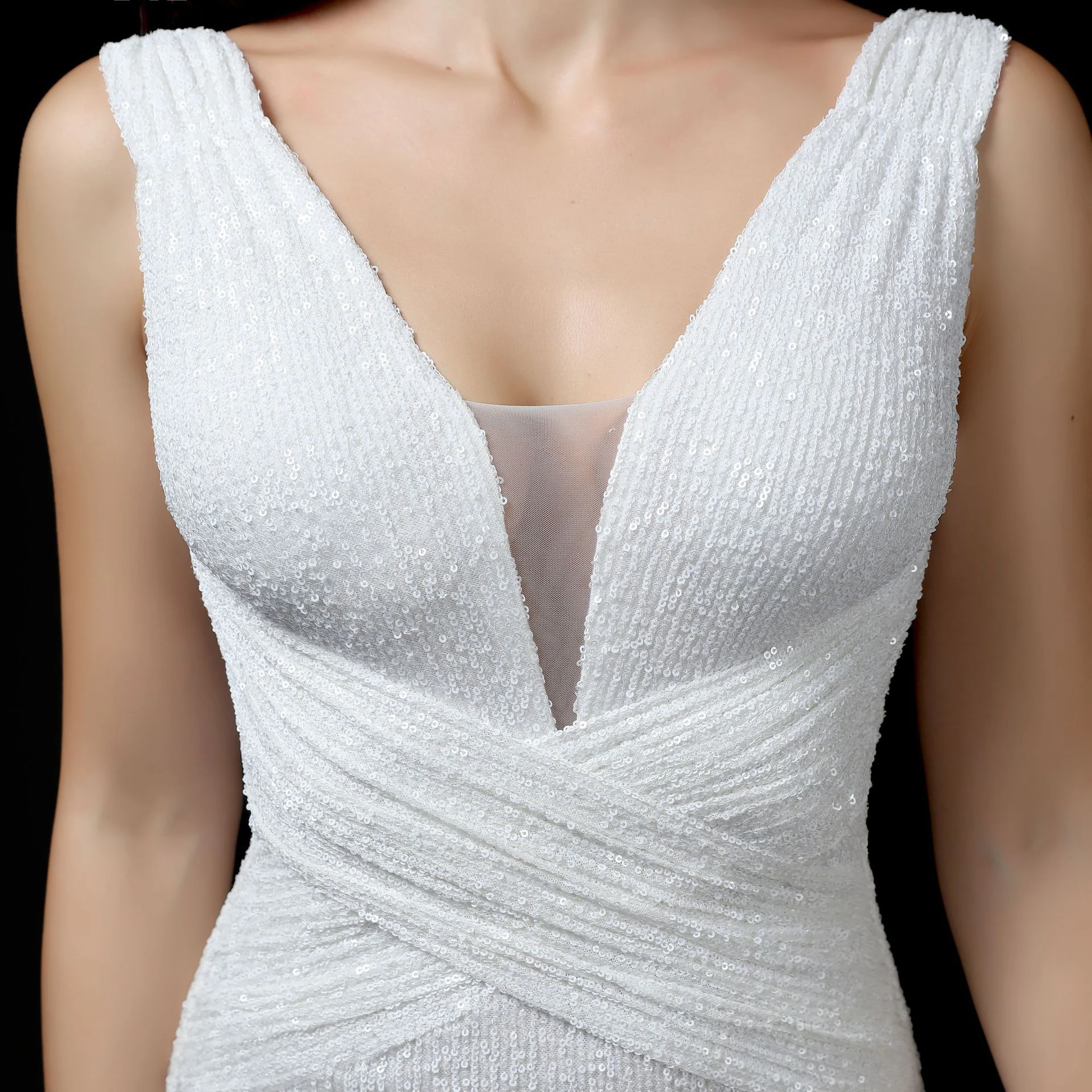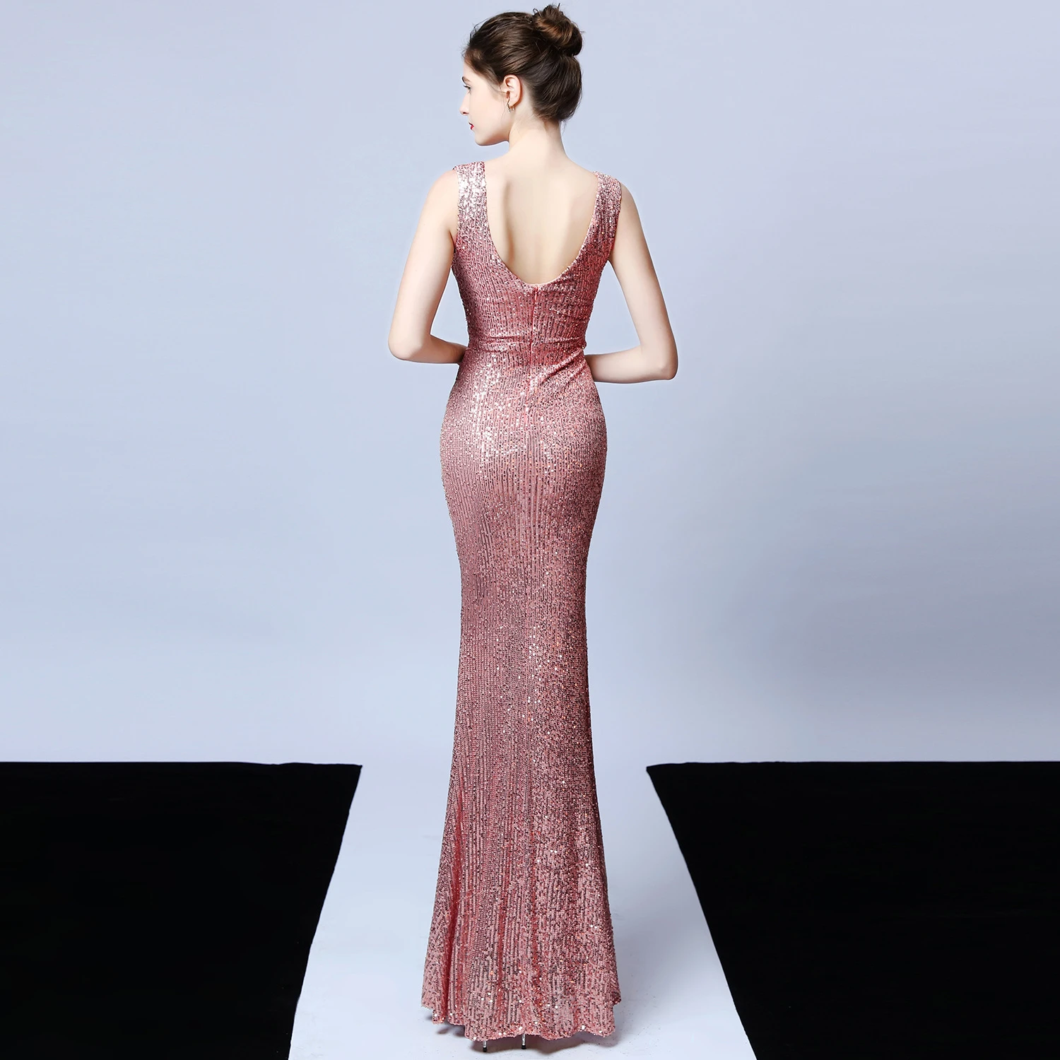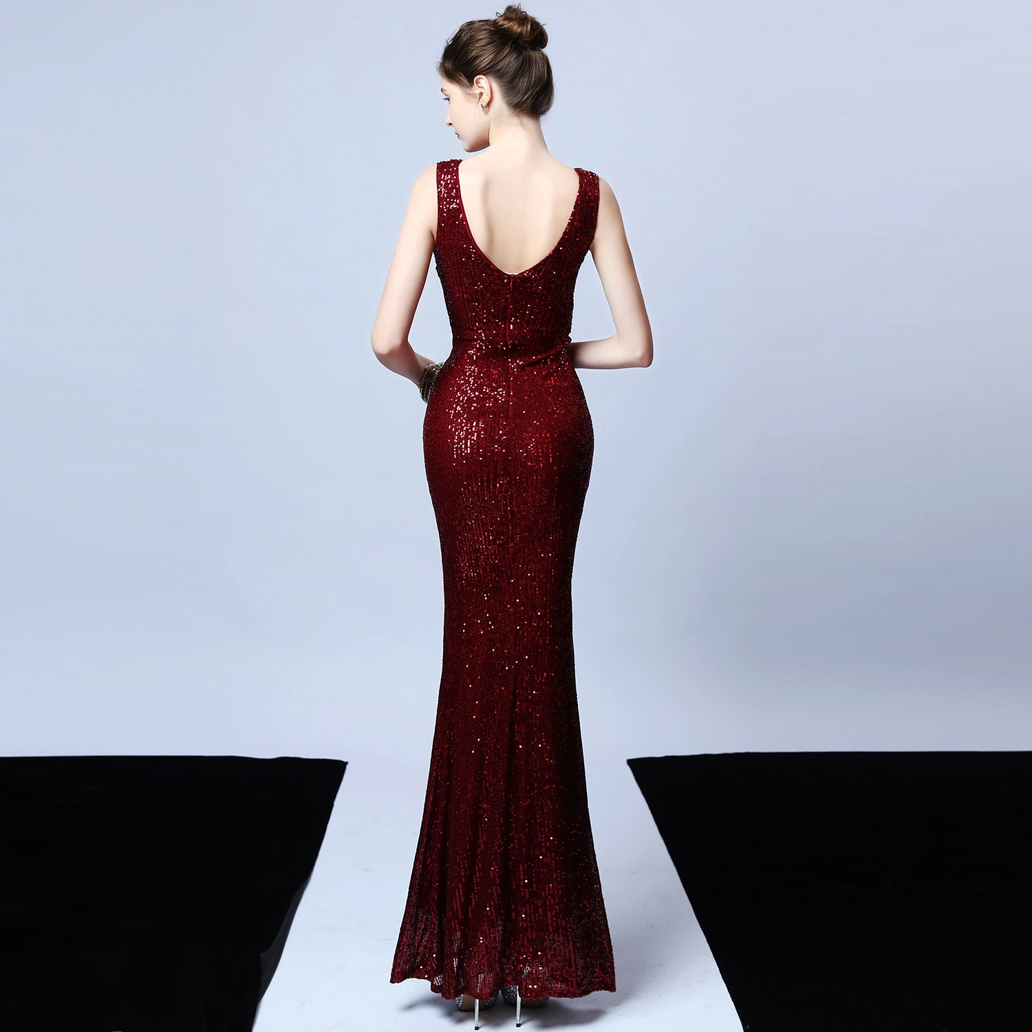 Banquet Temperament Elegant Long Sleeveless Sequined Aura Queen Fishtail Evening Dress