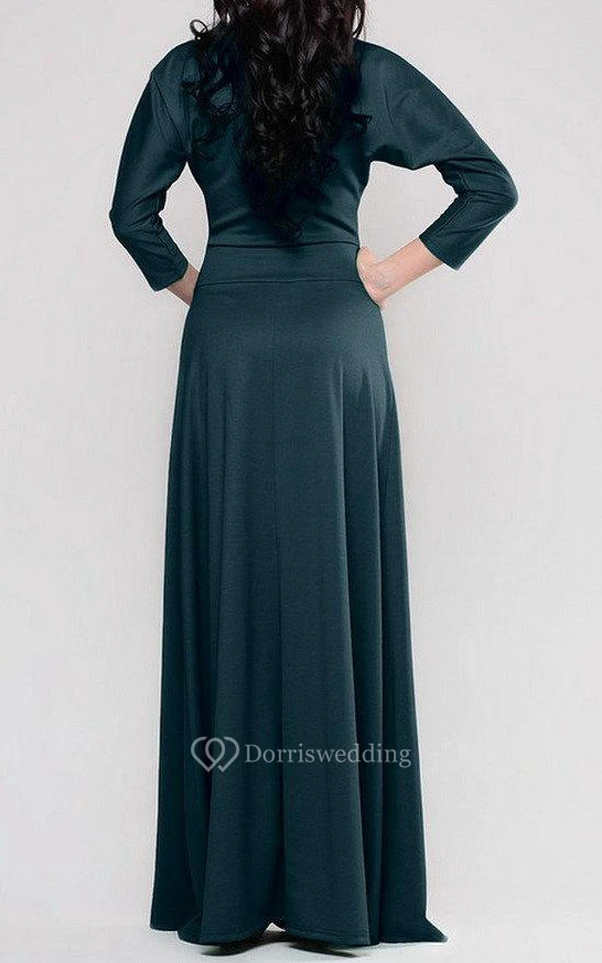 Bateau 3-4 Bat-wing Sleeve A-line Jersey Long Dress With Pleats