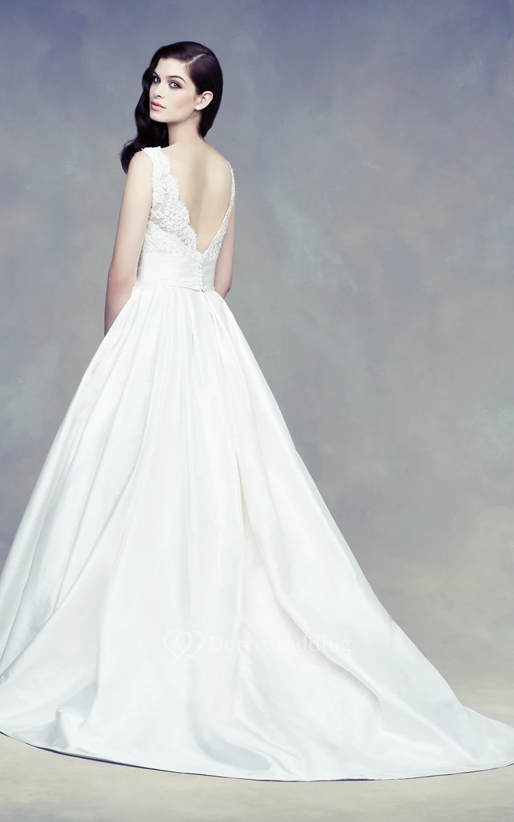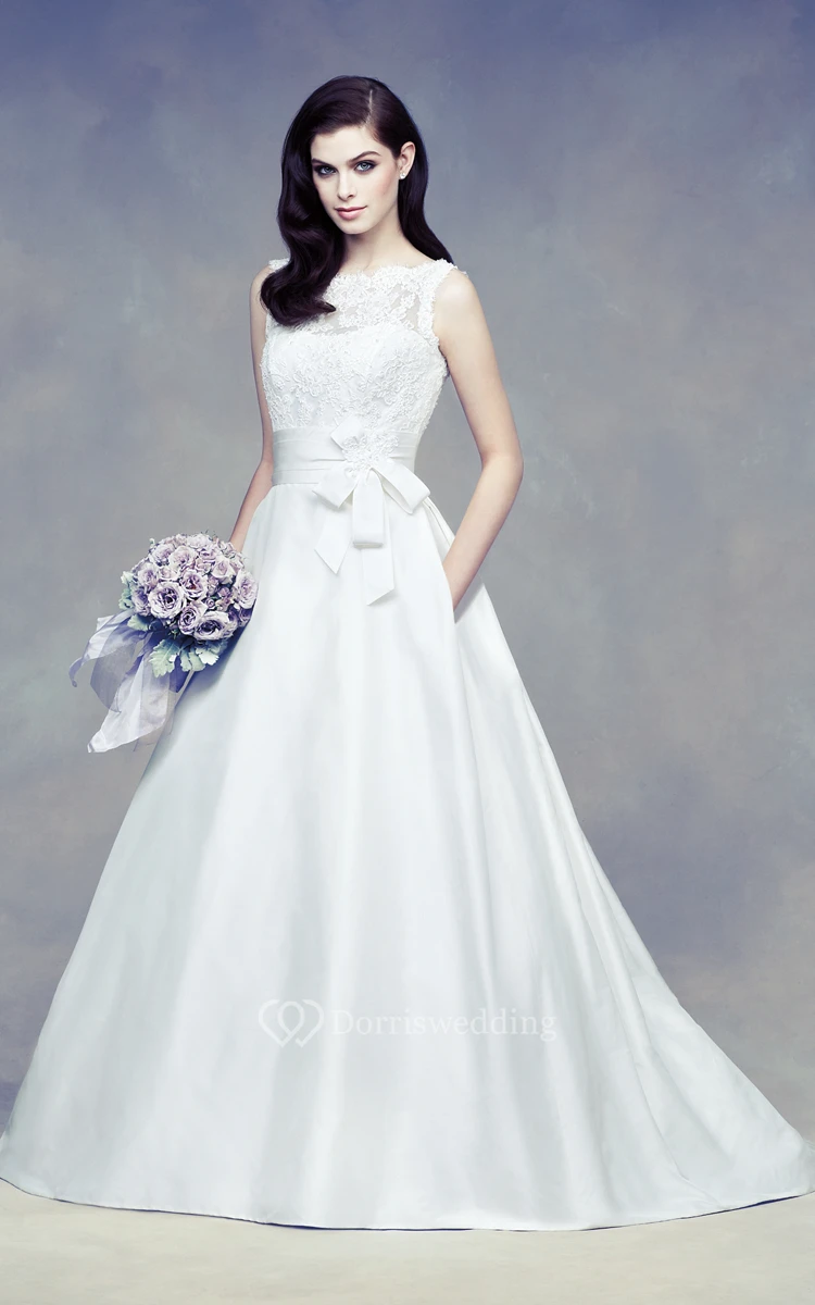 Bateau A-Line Exquisite Dress With V Back And Bow Sash