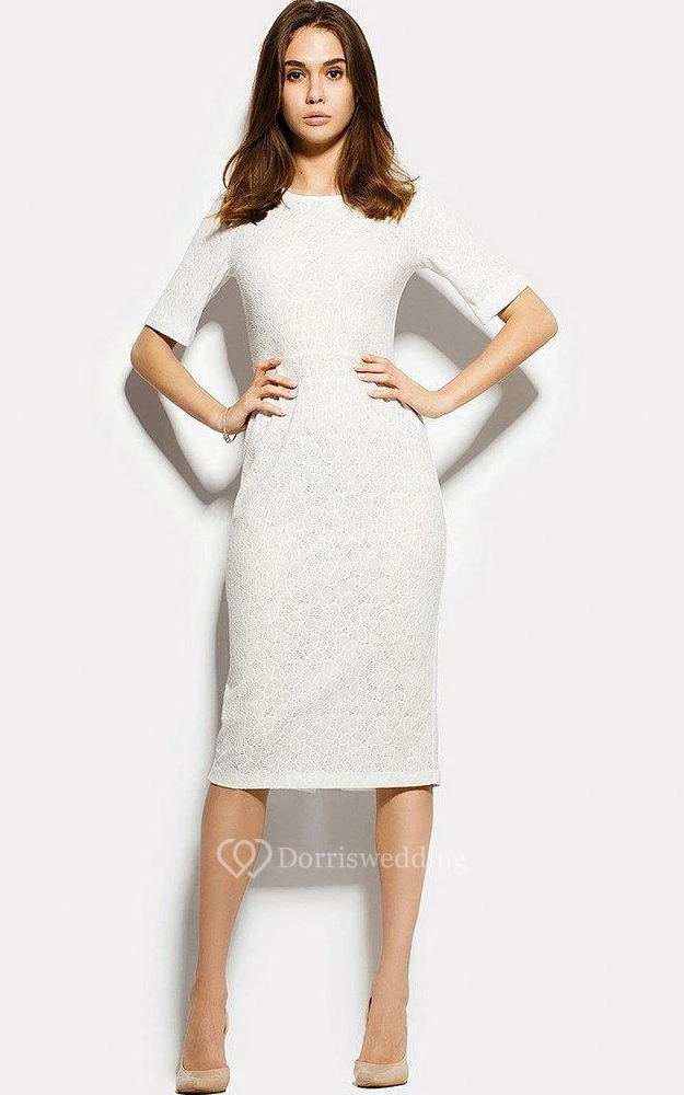 Bateau Half Sleeve Lace Sheath Knee Length Dress With Split