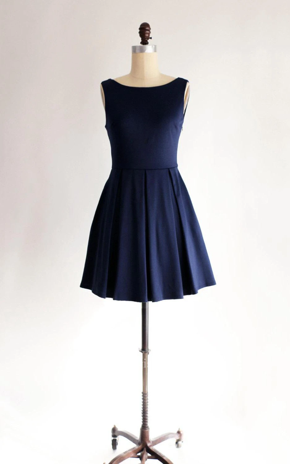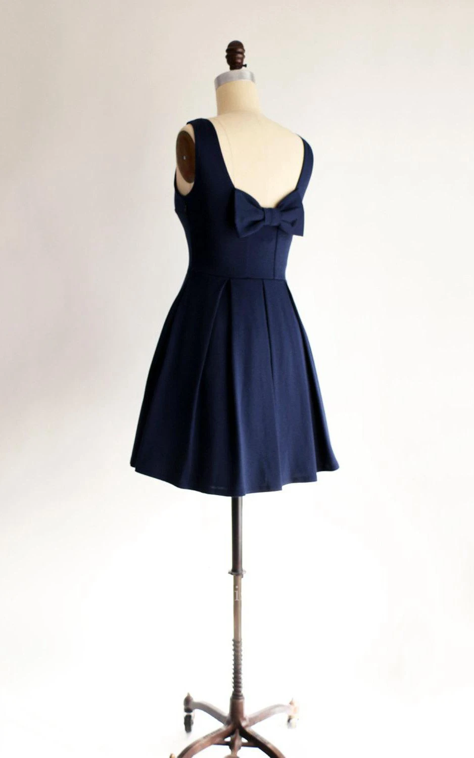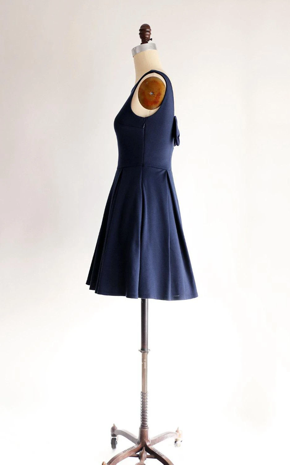 Bateau Knee Length Pleated Jersey Dress With U Back and Bow