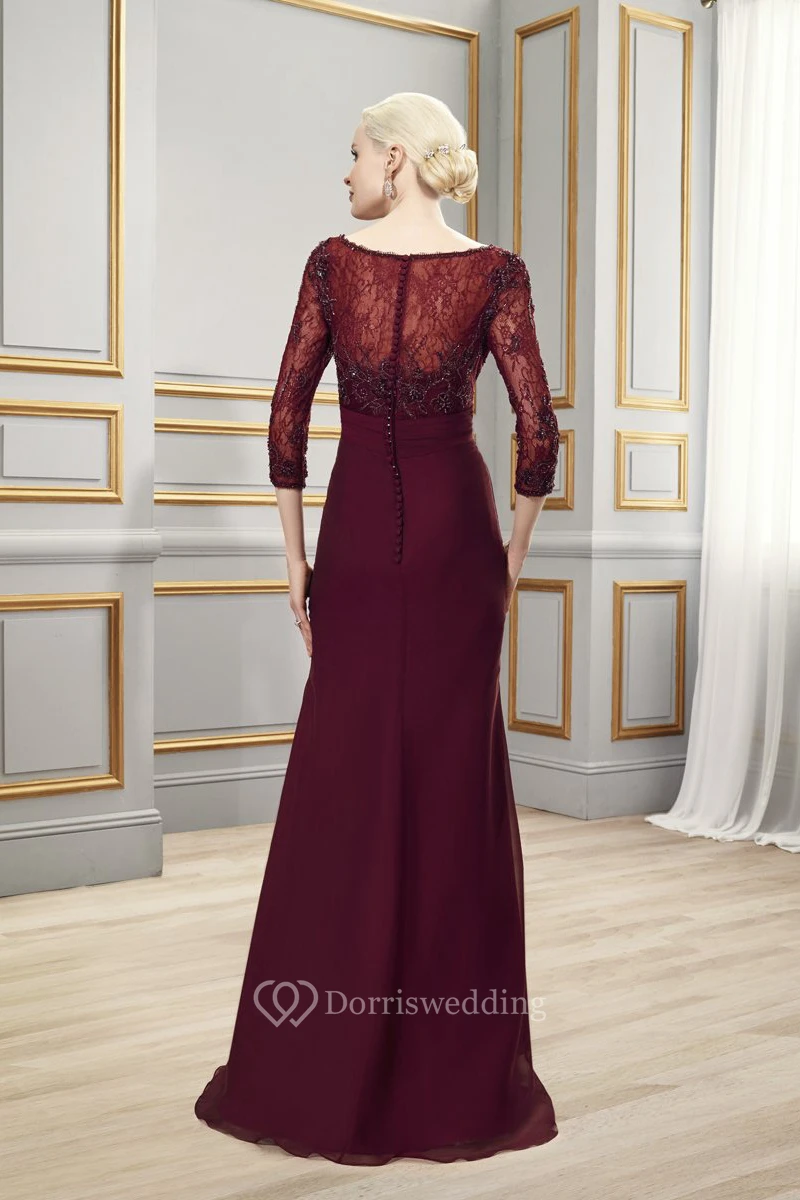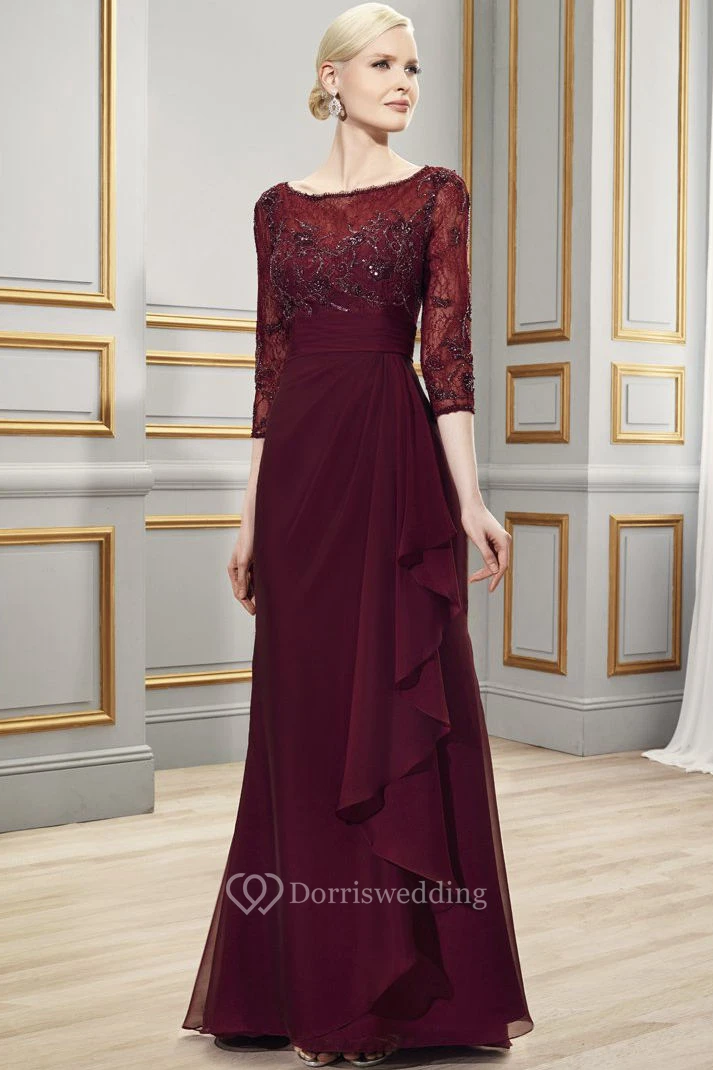 Bateau Neck 3-4 Sleeve Appliqued Chiffon Formal Dress