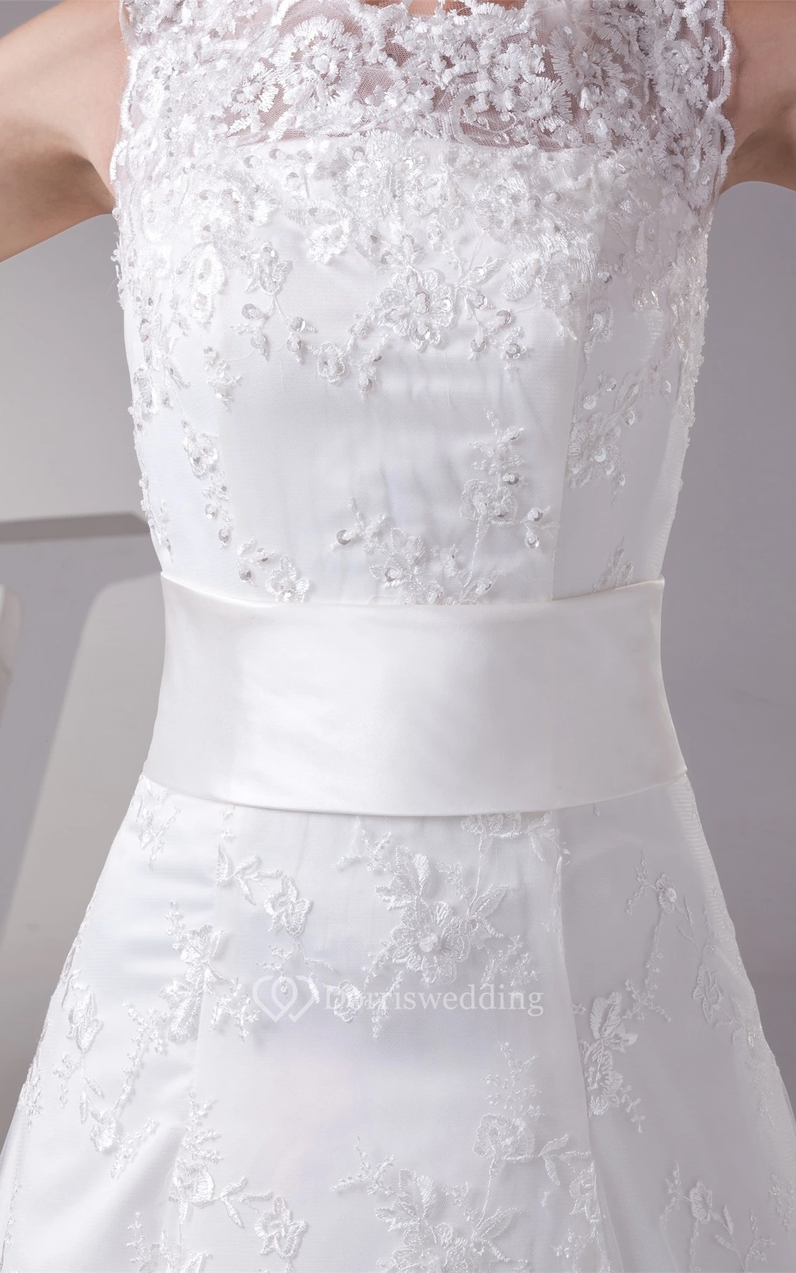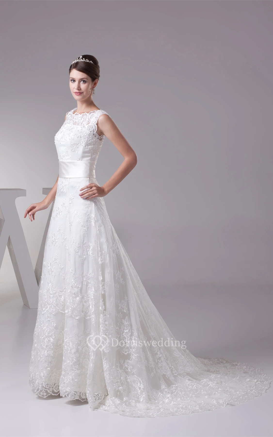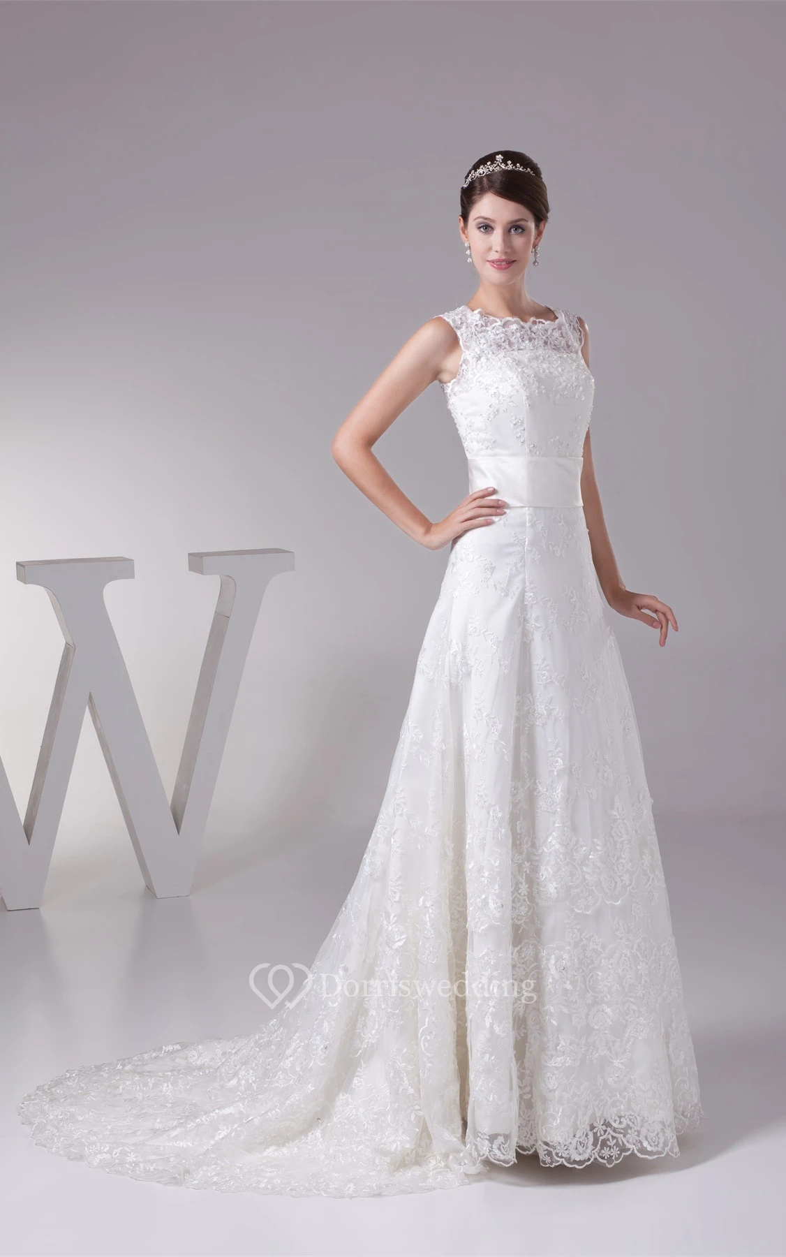 Bateau-Neck A-Line Sleeveless Gown With Appliques