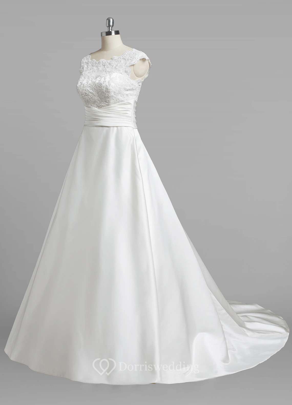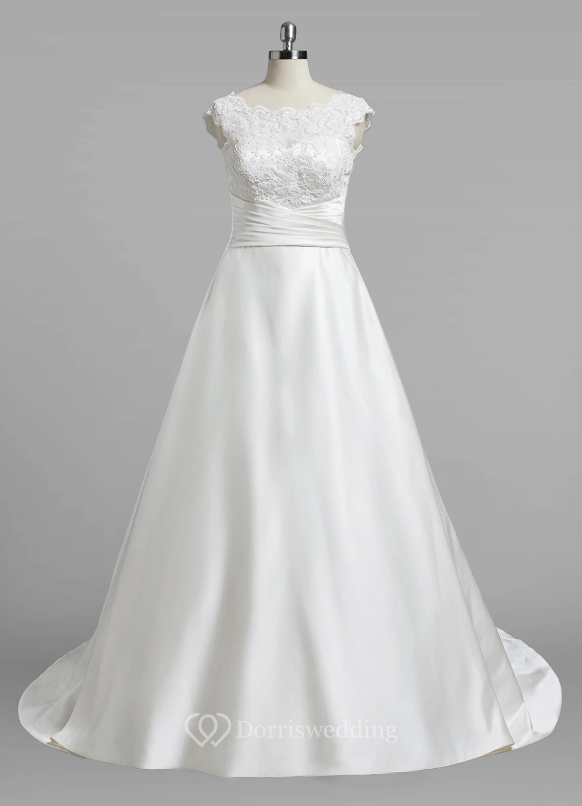 Bateau Neck Cap Sleeve A-Line Satin Simple Wedding Dress With Lce Top