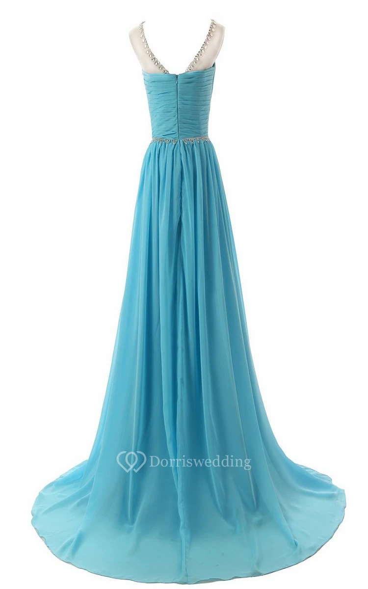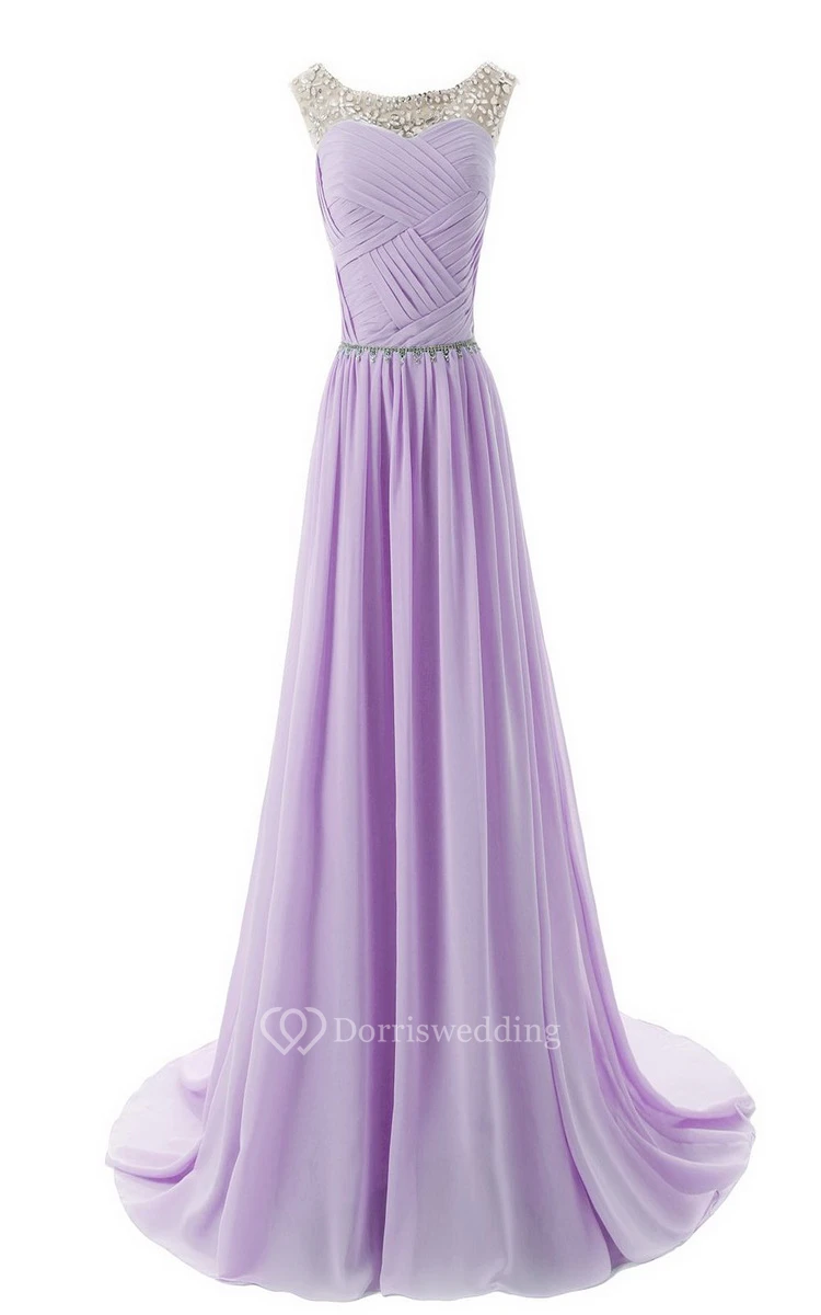 Bateau Neck Crystal-beaded Chiffon A-line Gown With Train