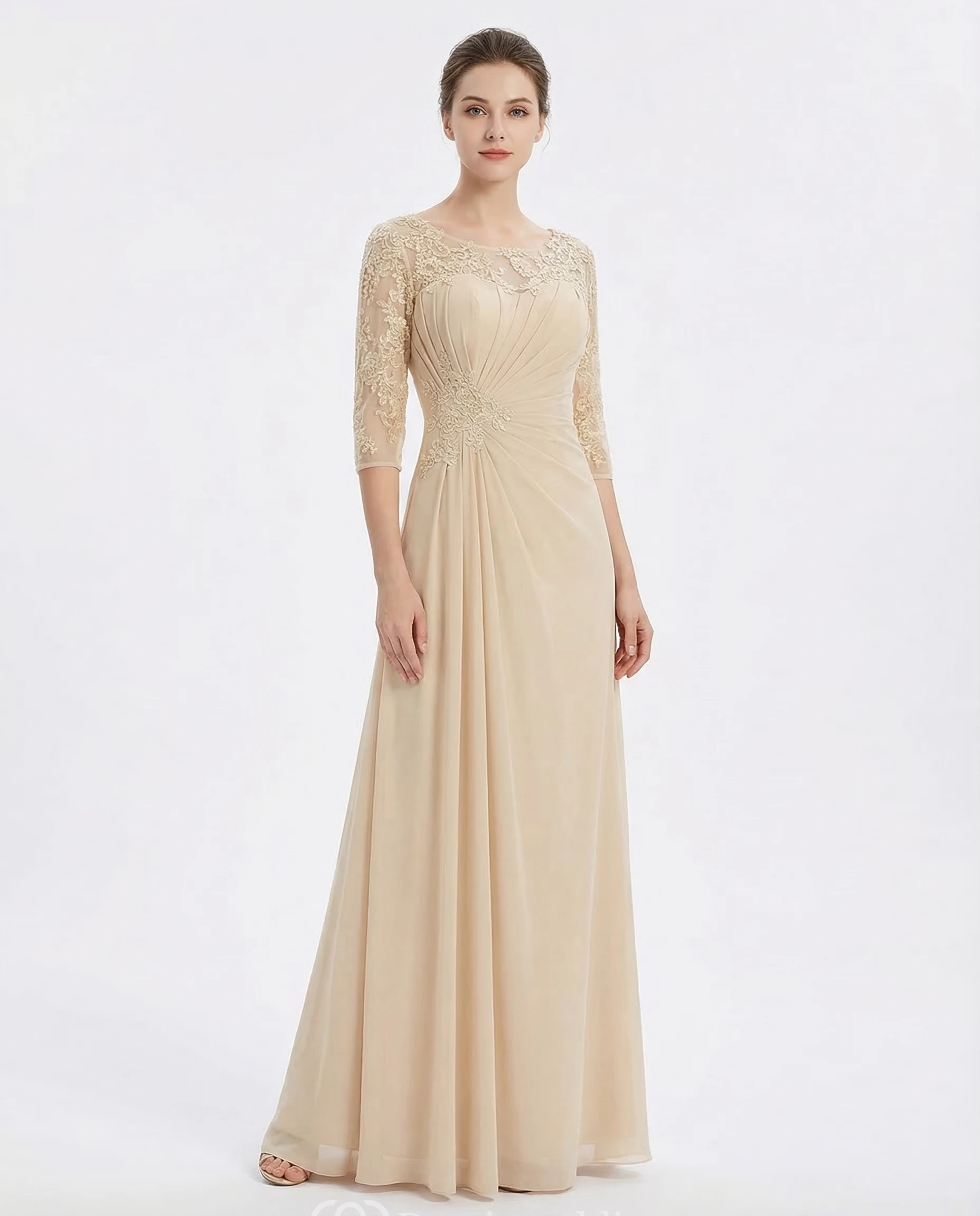 Bateau Neck Half Sleeve Chiffon Applique Gown