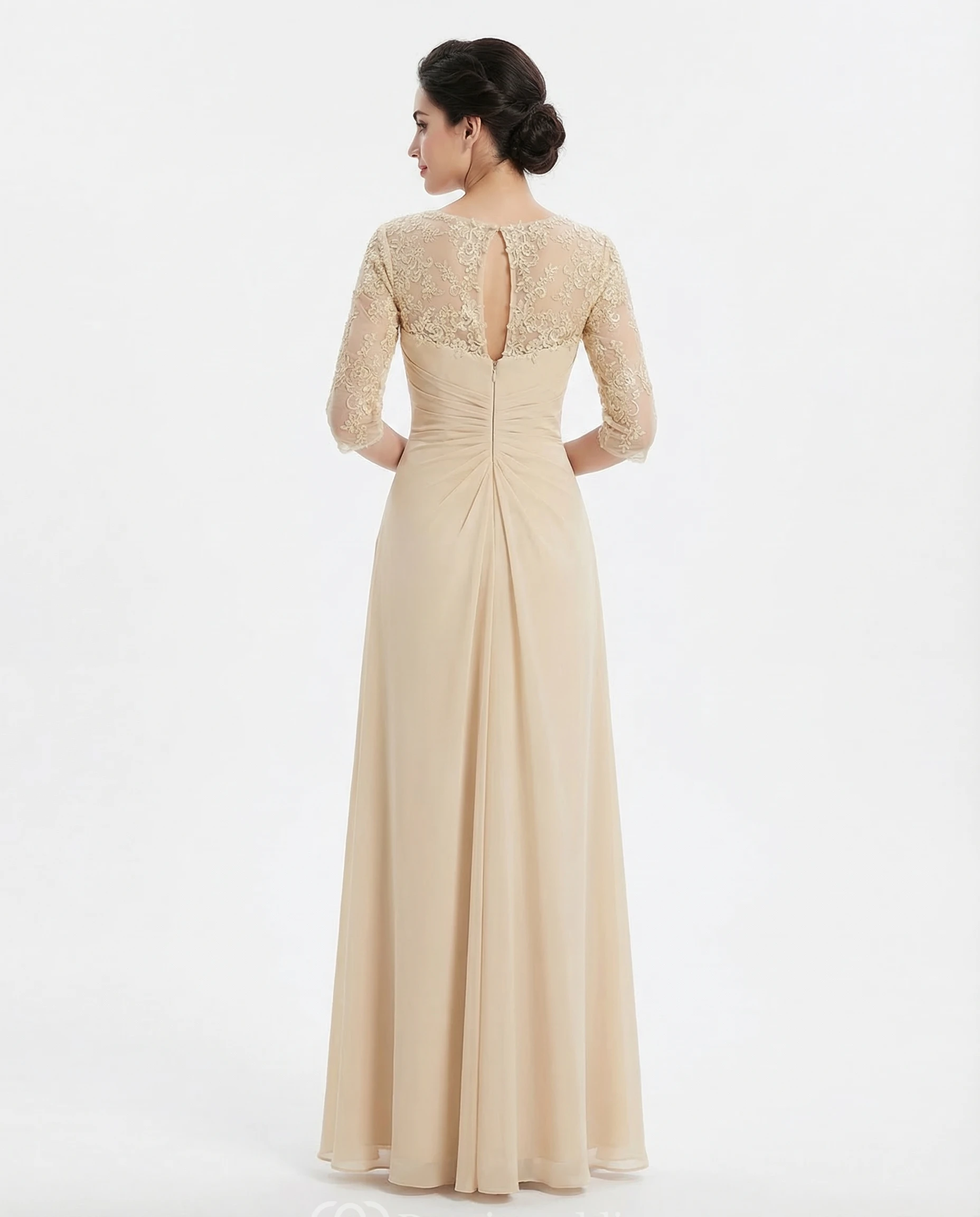 • Hemline/Train: Floor-length