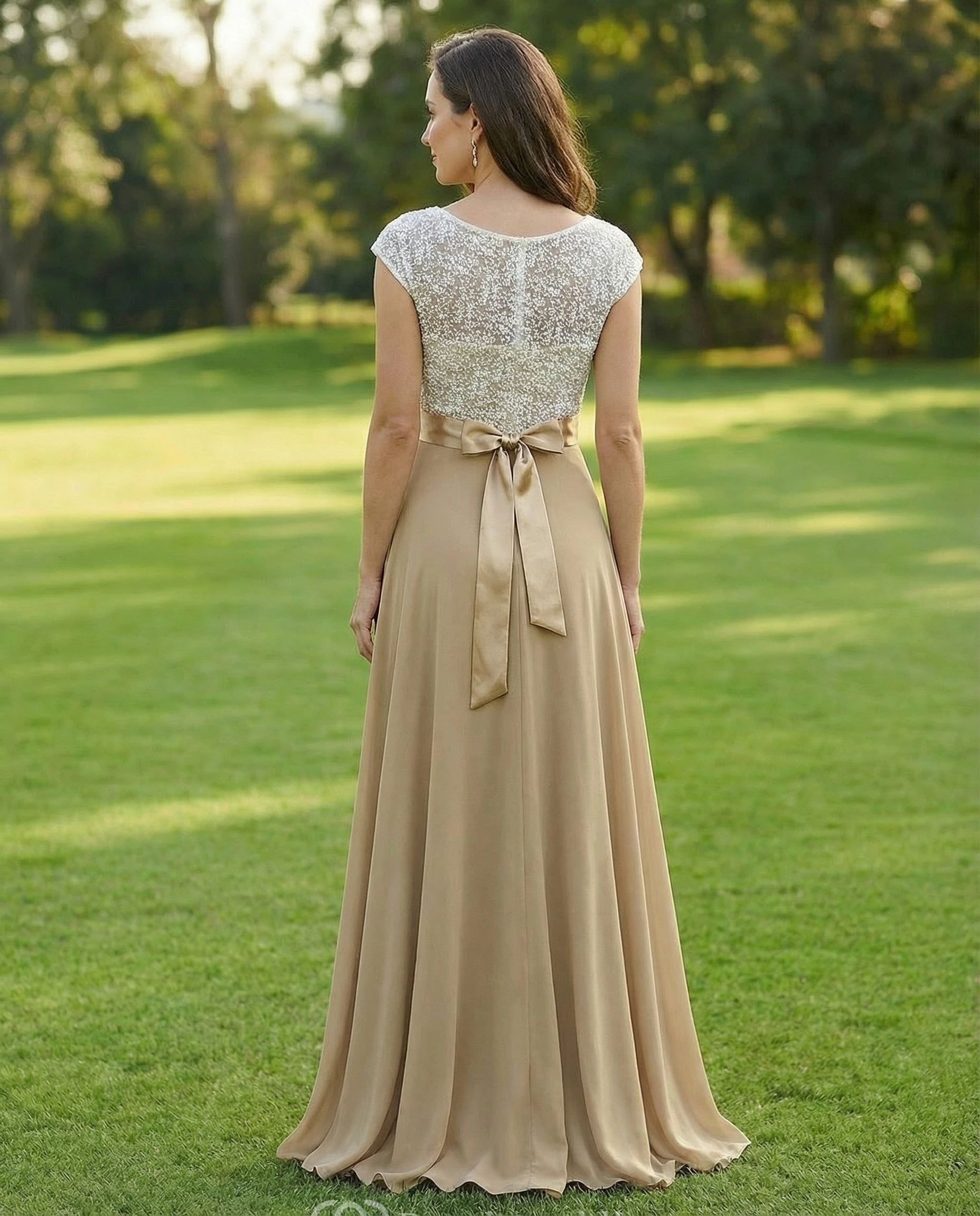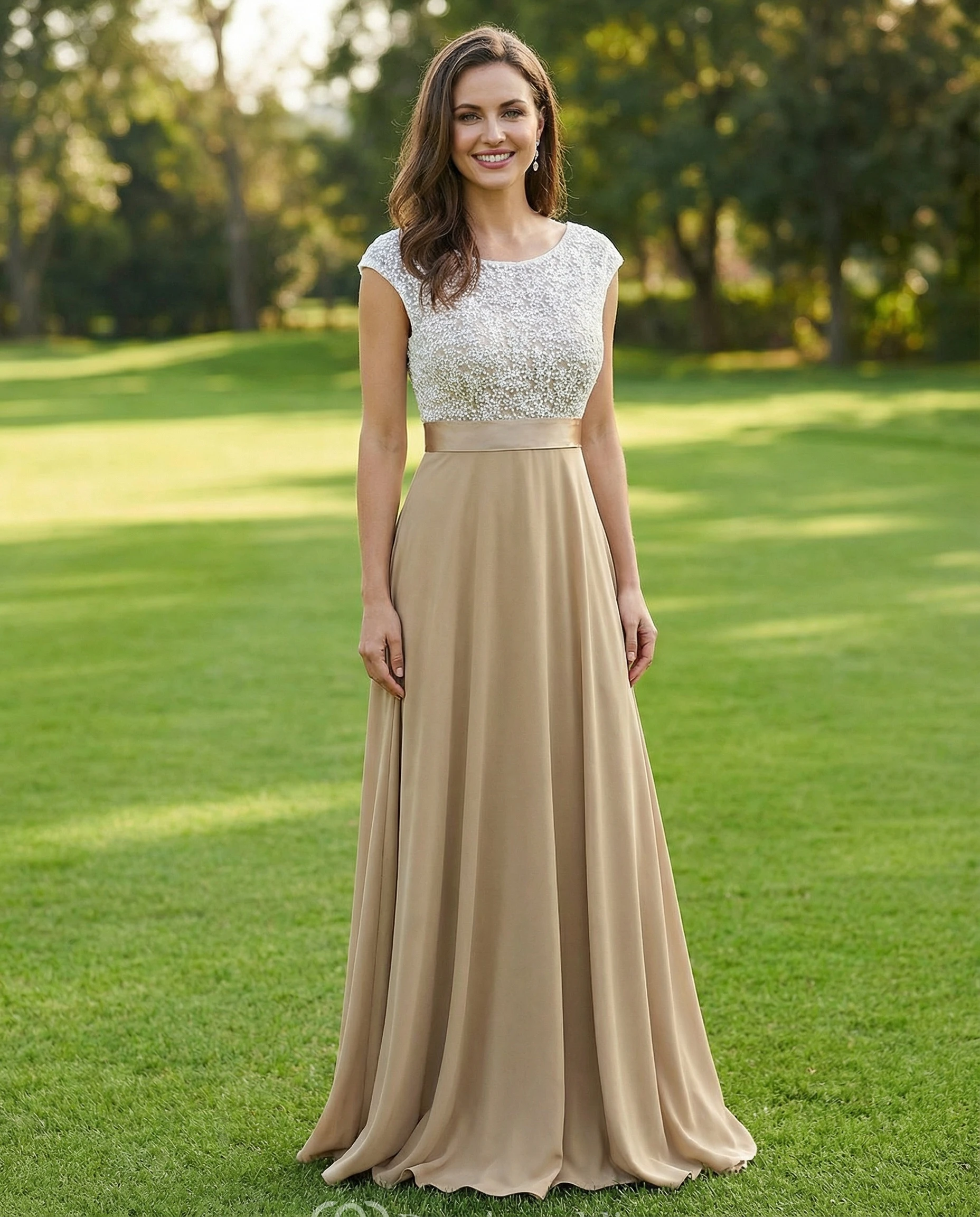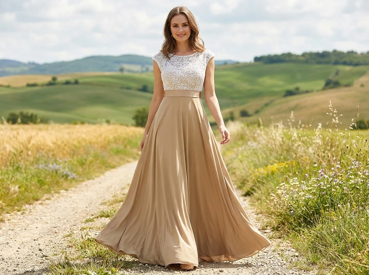• Hemline/Train: Floor-length