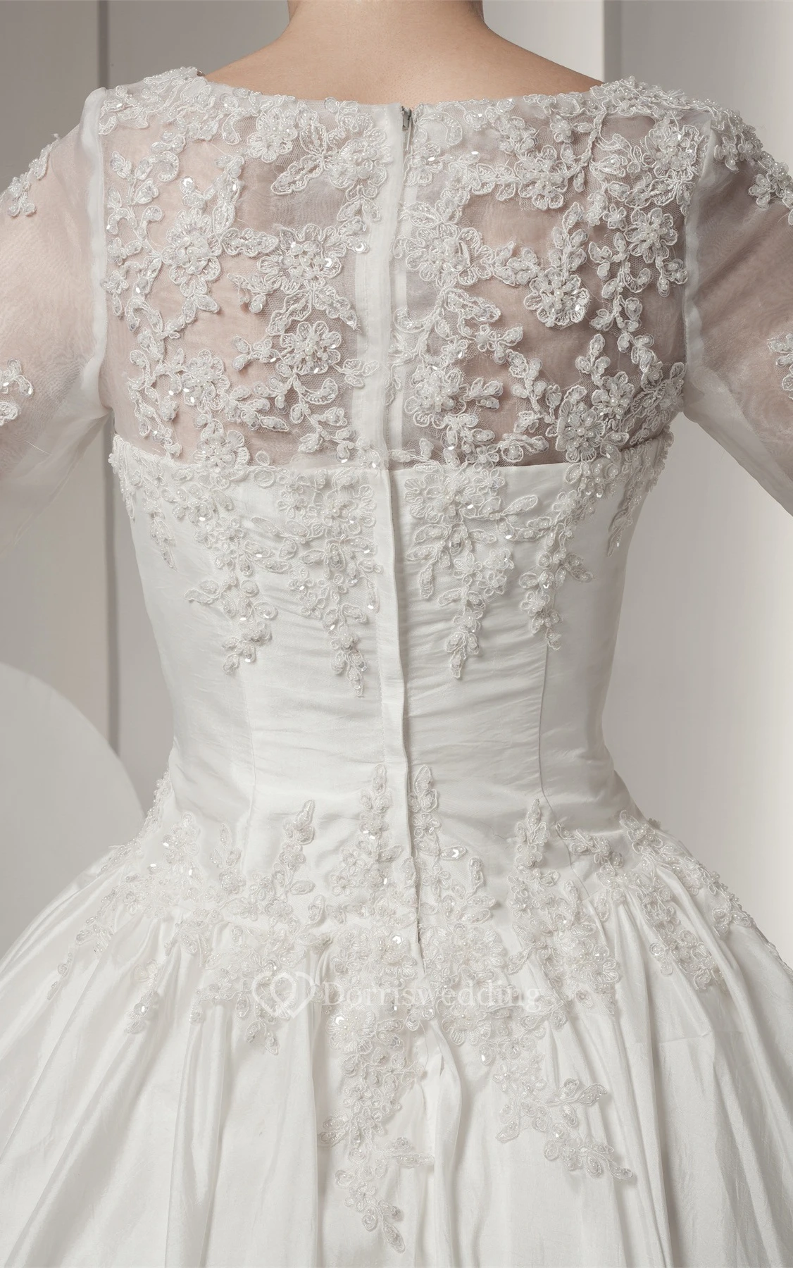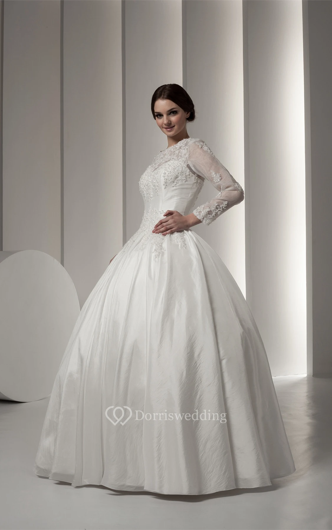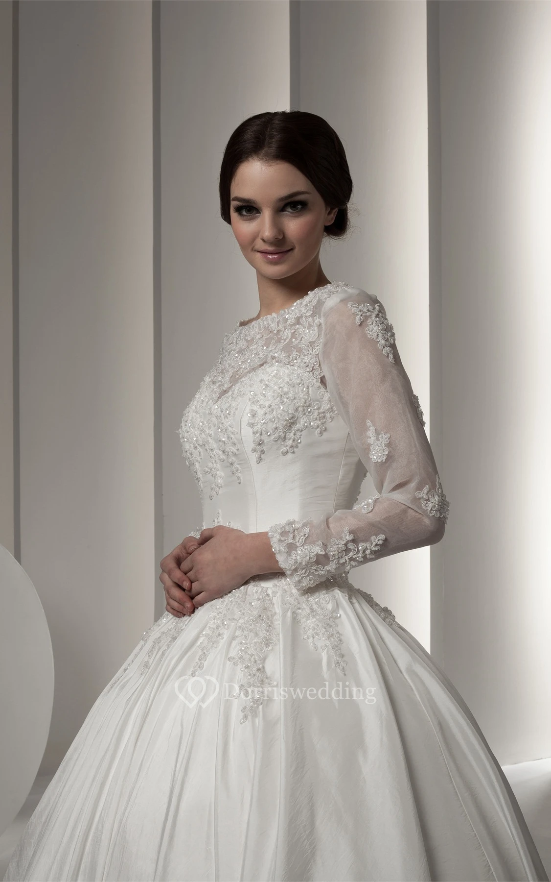 Bateau-Neck Long-Sleeve Beading and Ball-Gown With Lace