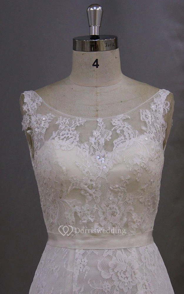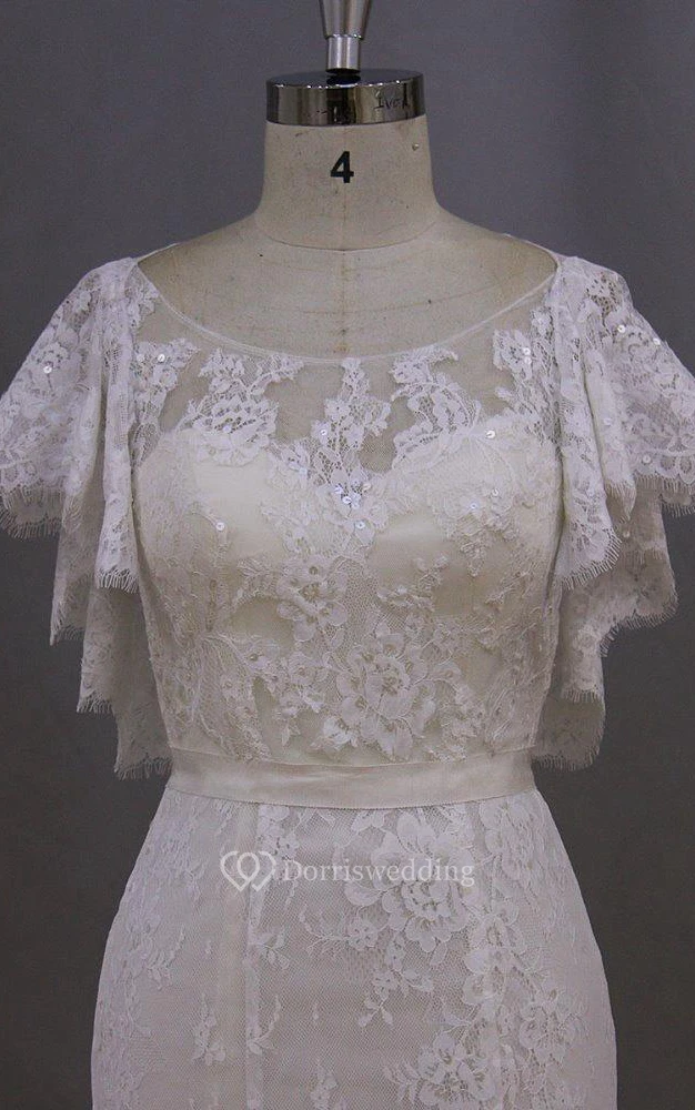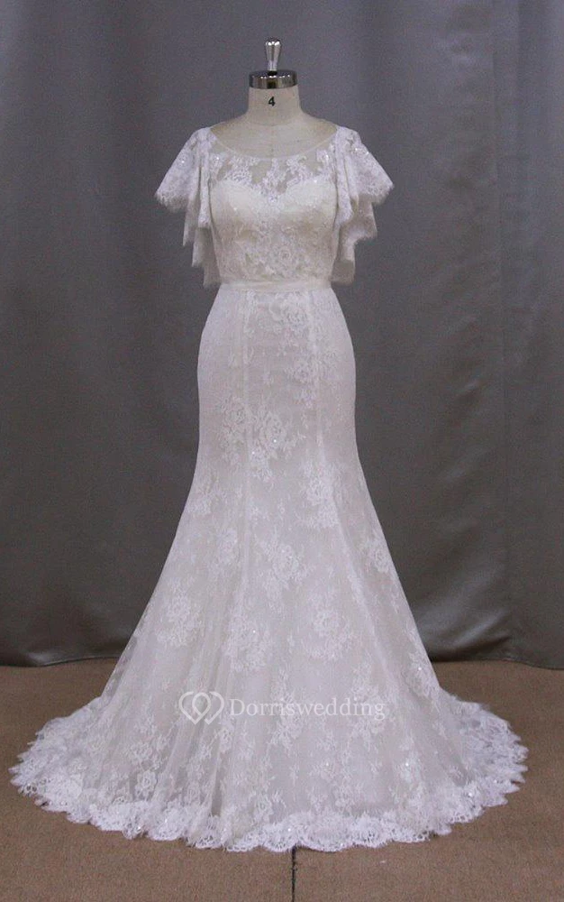 Bateau Neck Mermaid Lace Dress With Lace-Up Back and Cape