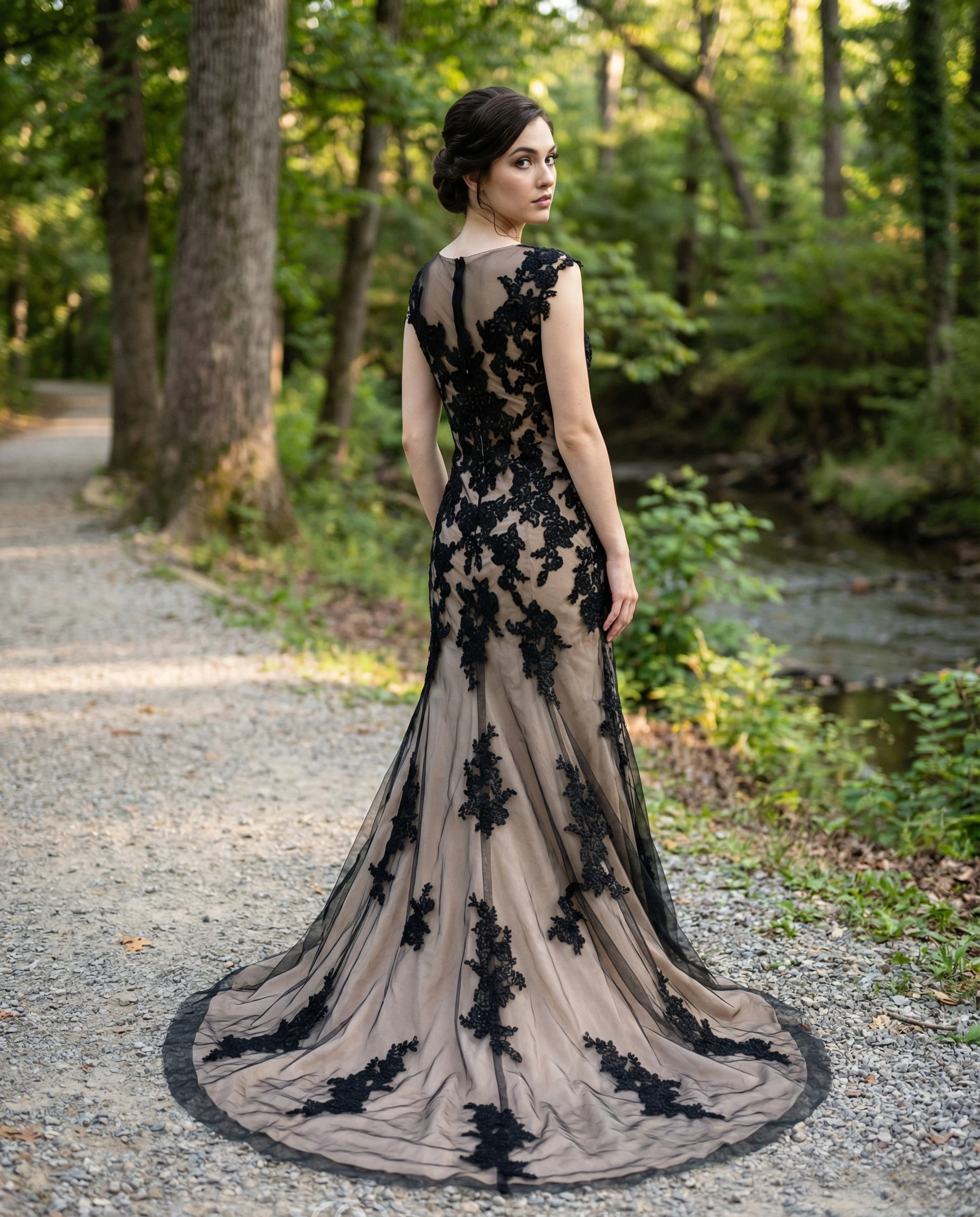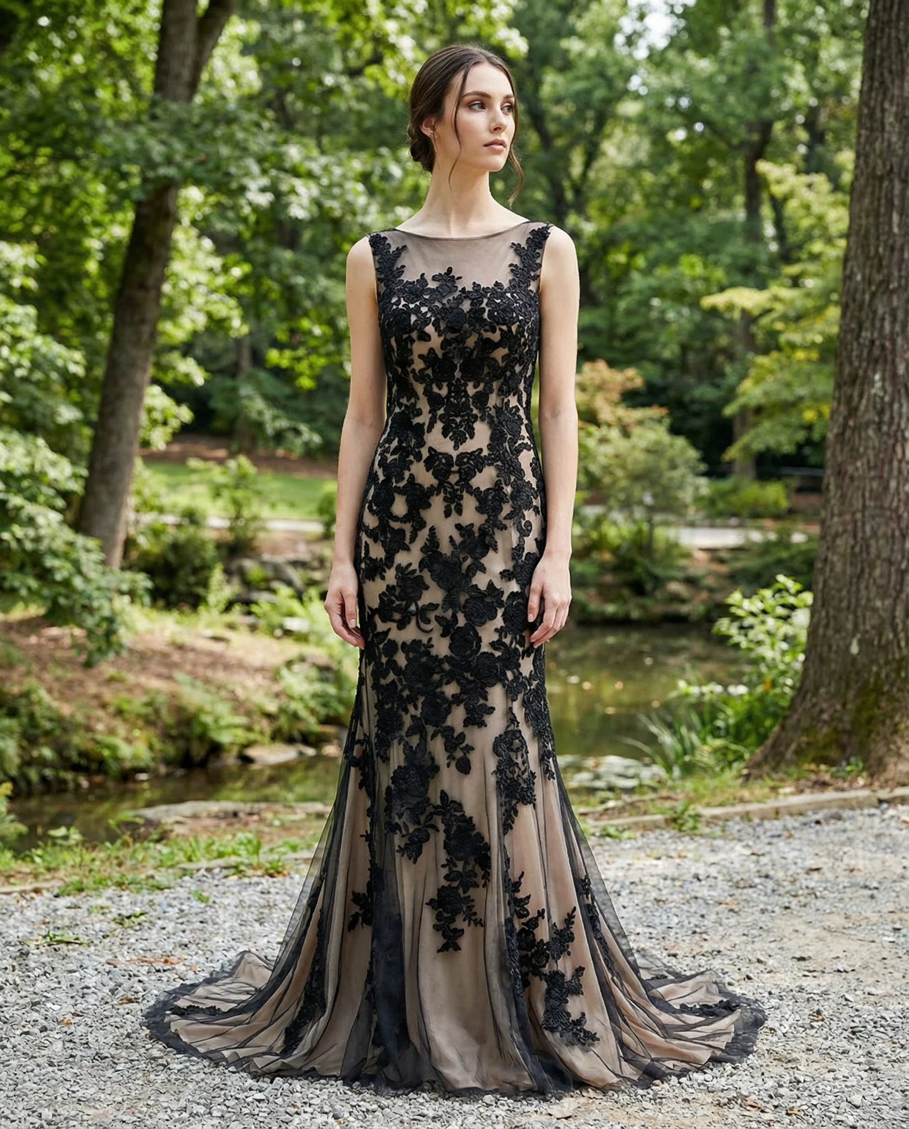 • Hemline/Train: Floor-length, Sweep/Brush Train