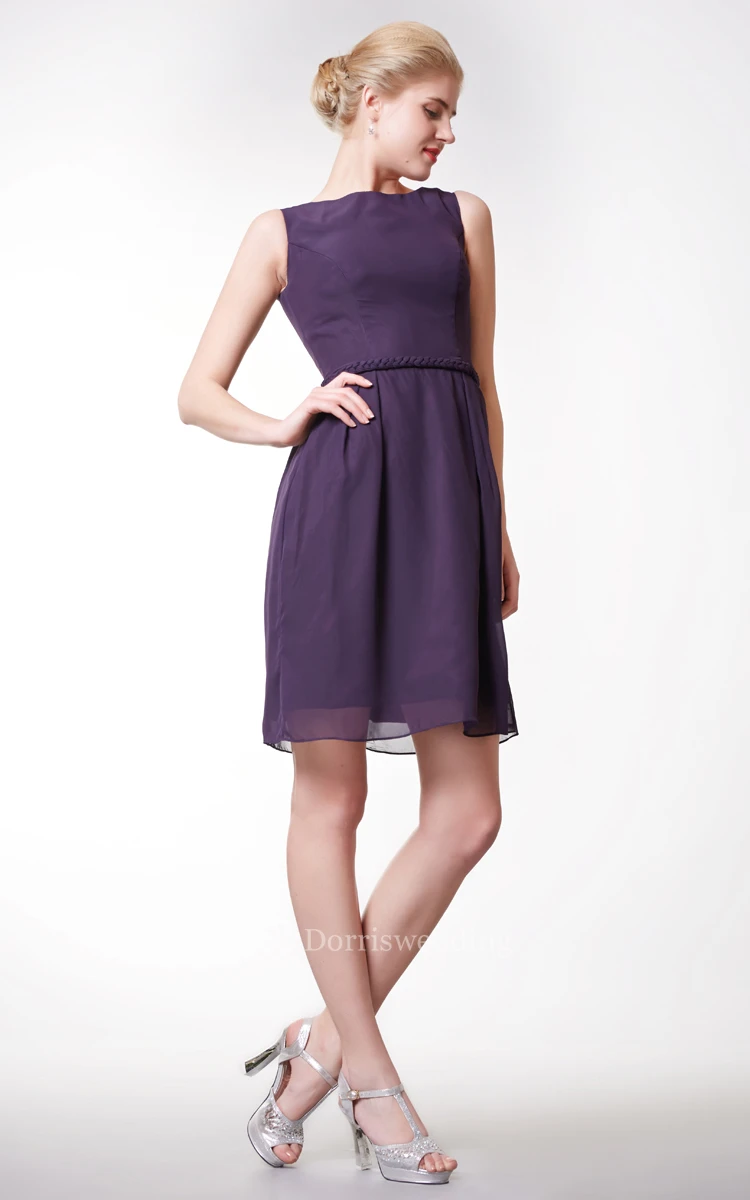Bateau Neck Short A-line Chiffon Dress Simple Style