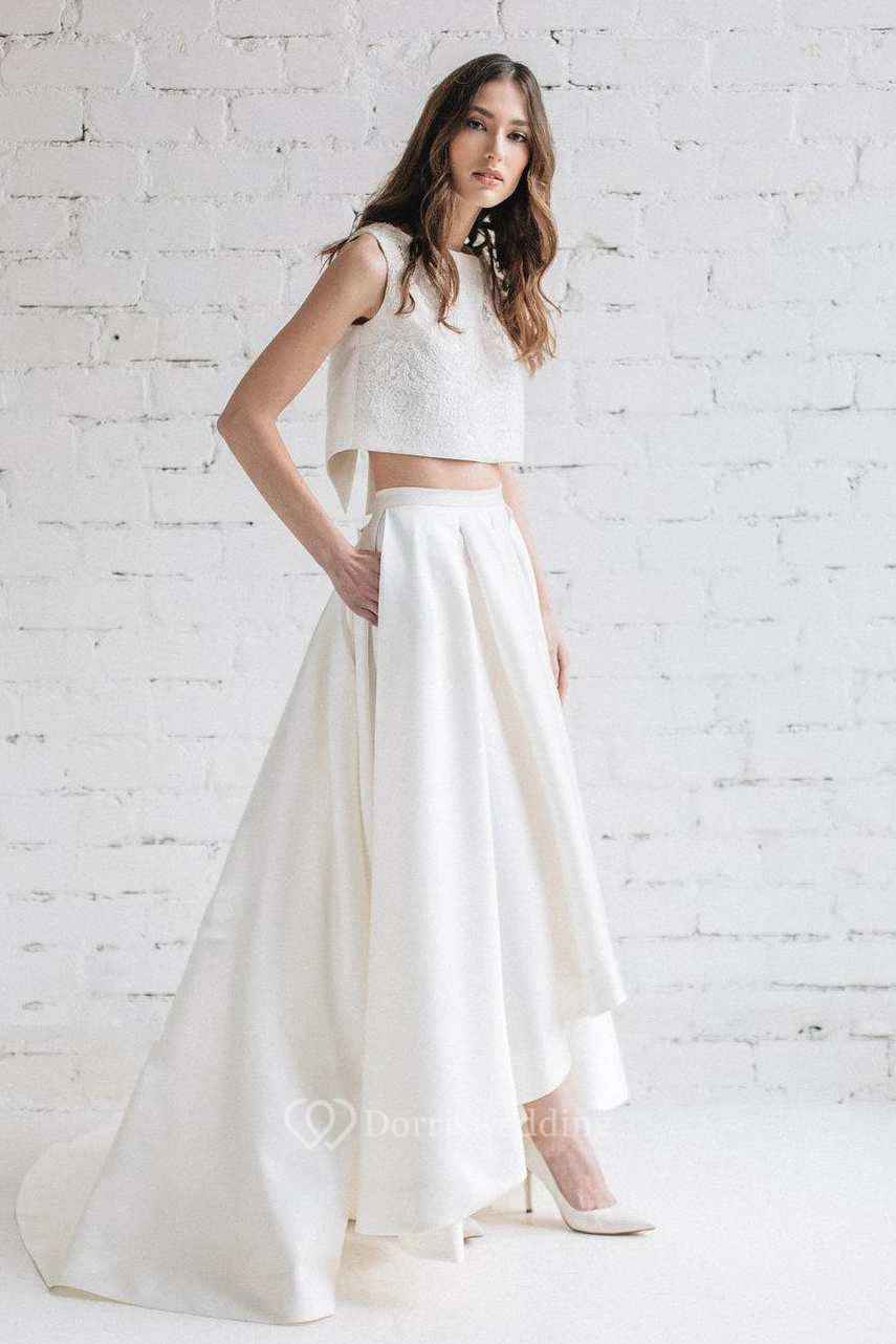 Bateau Sleeveless Two-Piece A-Line Satin Wedding Dress