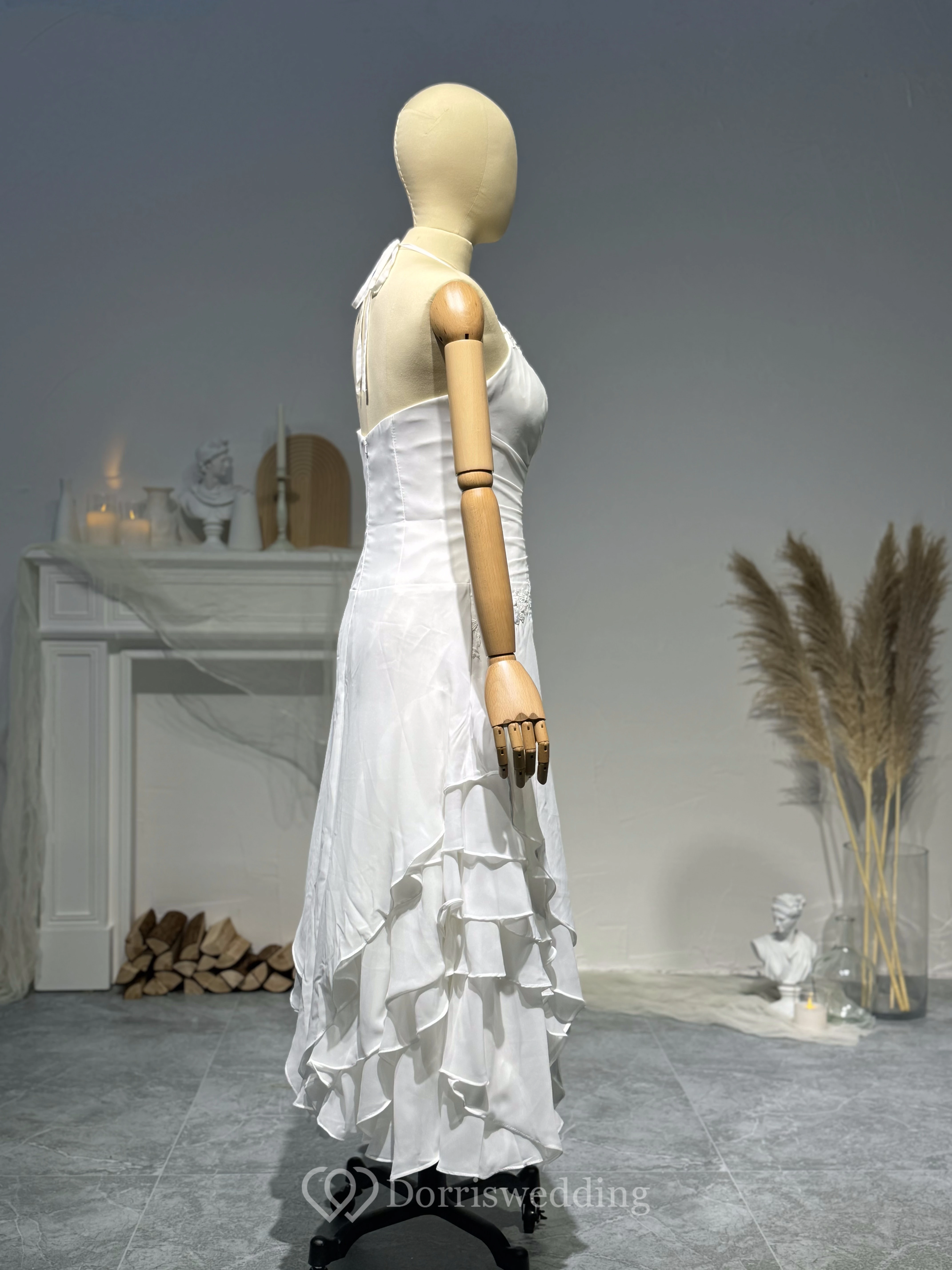 Beach Casual Short Tropical White Vow Renewal Hawaiian Wedding Dress