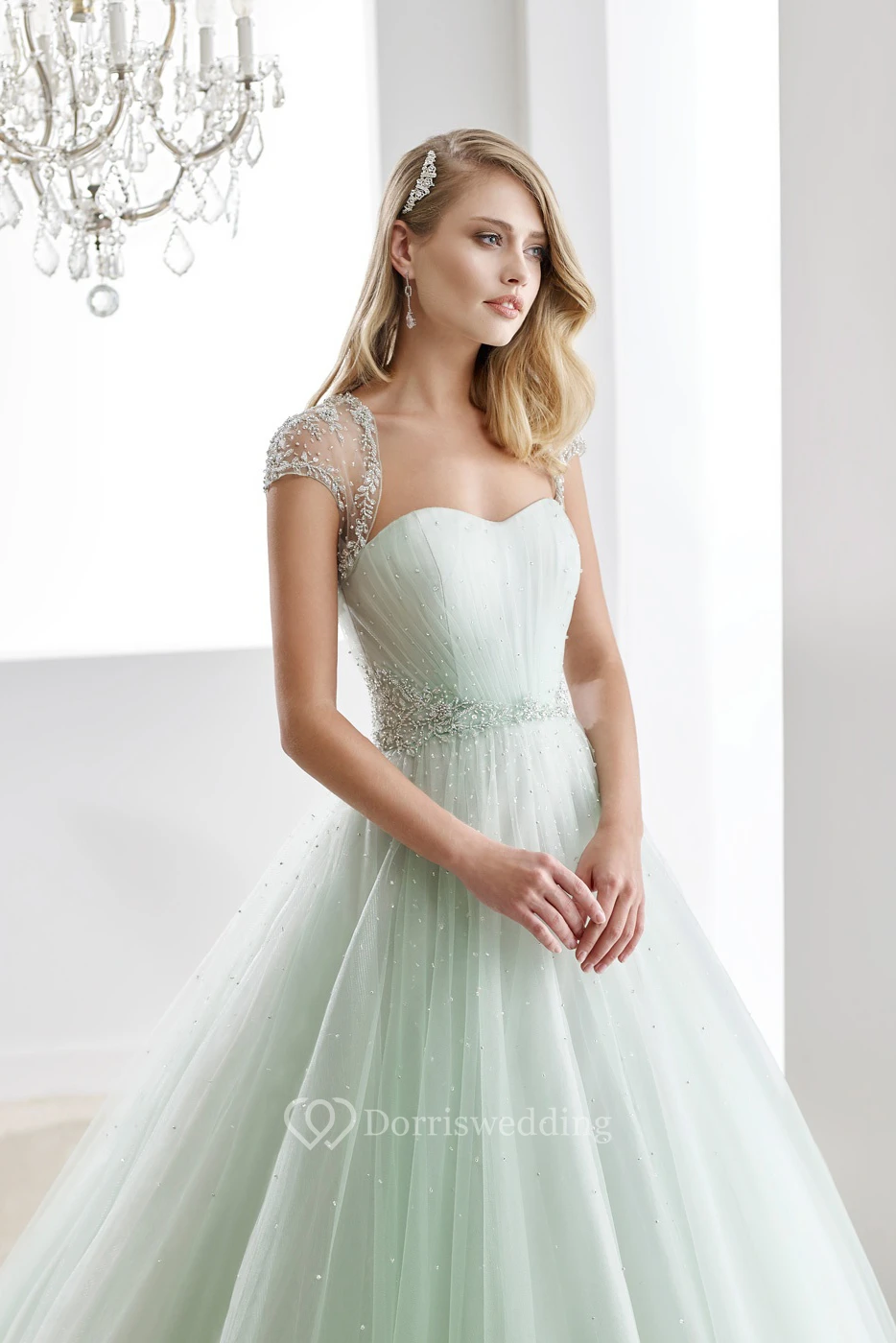 Beaded A-Line Bridal Gown With Pleated Bodice And Illusive Design