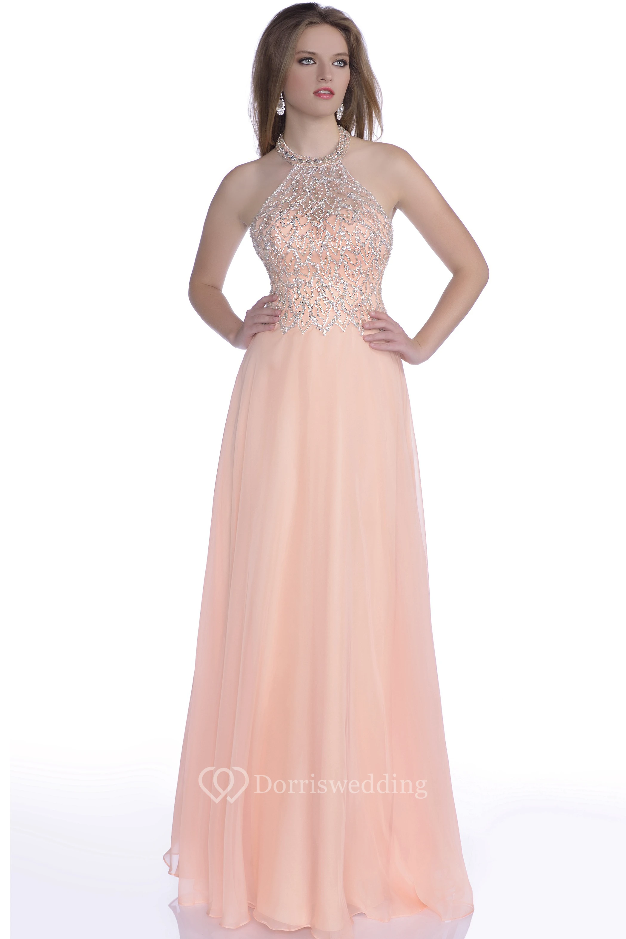 Beaded Corset Chiffon A-Line Prom Dress With Shining Halter