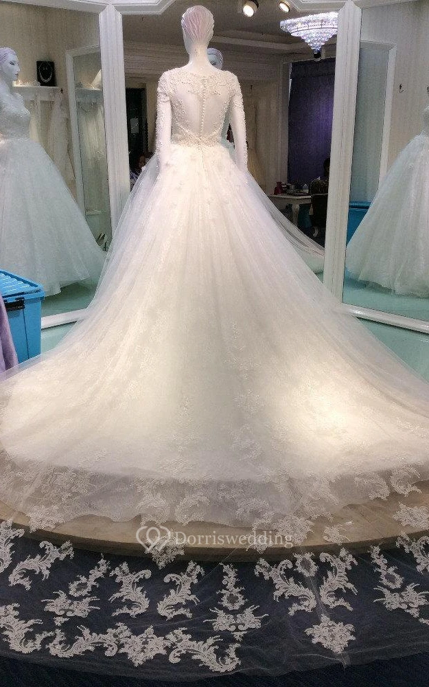 • Hemline/Train: Cathedral Train
