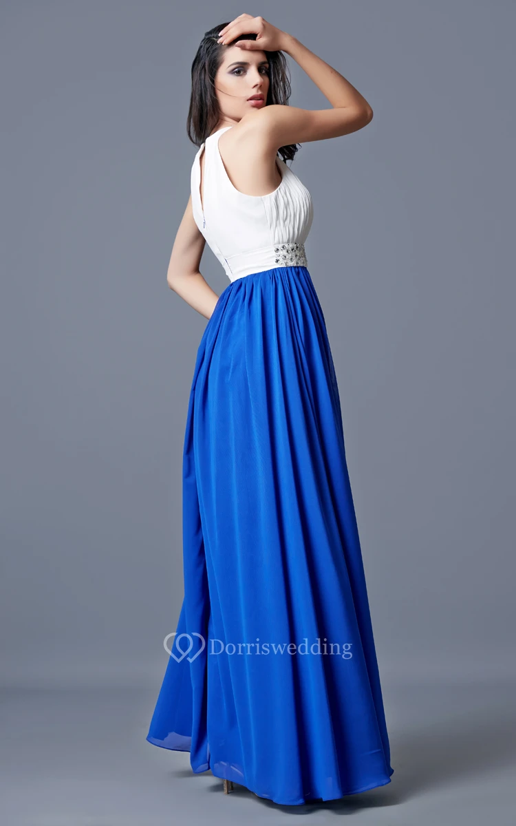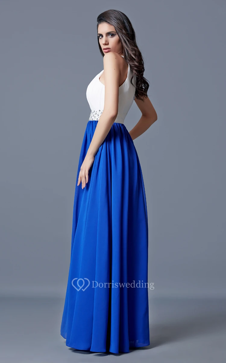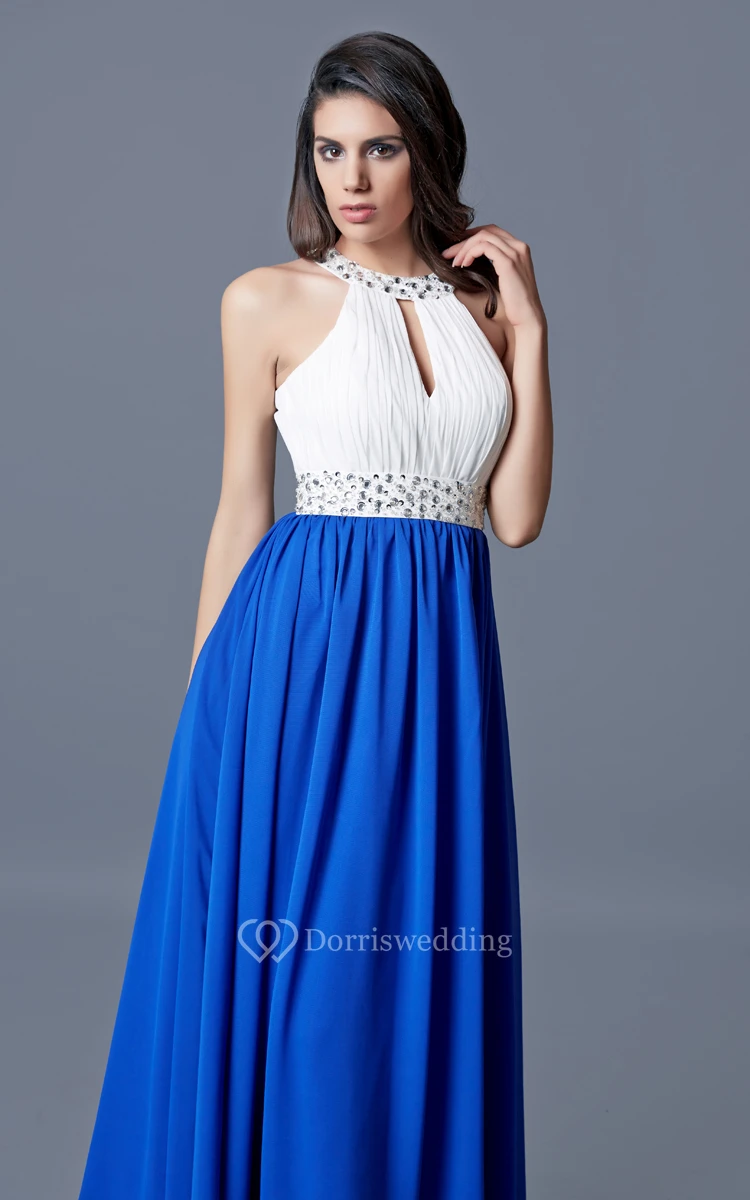 Beaded Neckline and Waist Long A-line Chiffon Dress