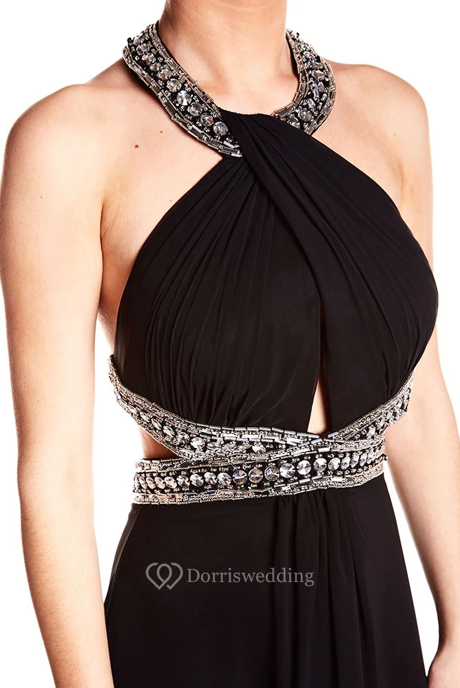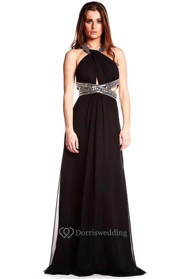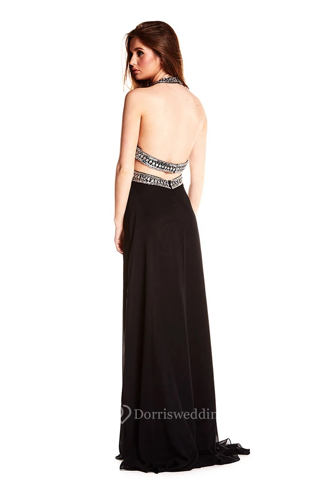 Beaded Sleeveless Halter Chiffon Backless Prom Dress