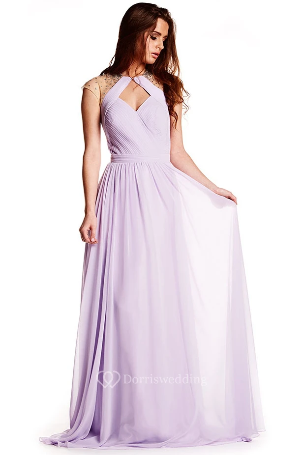 Beaded Sleeveless High Neck Chiffon Prom Dress