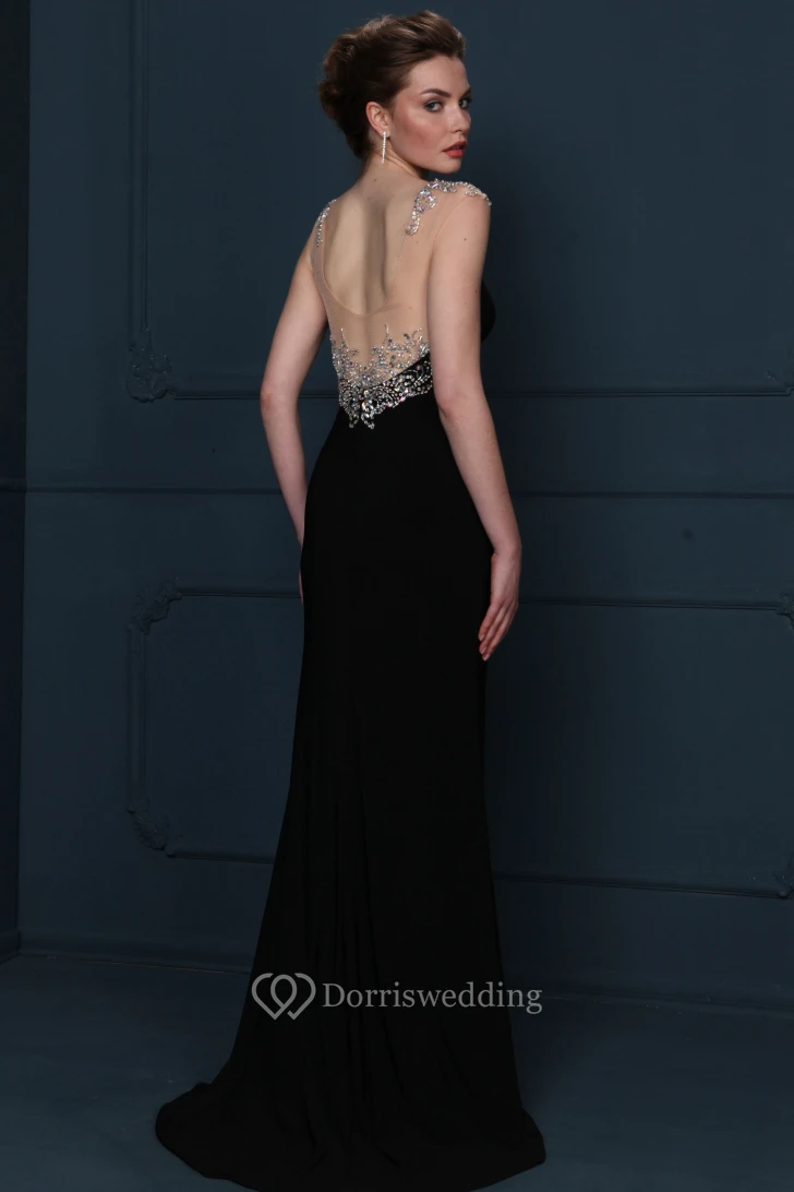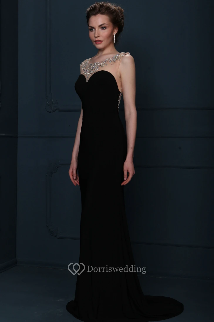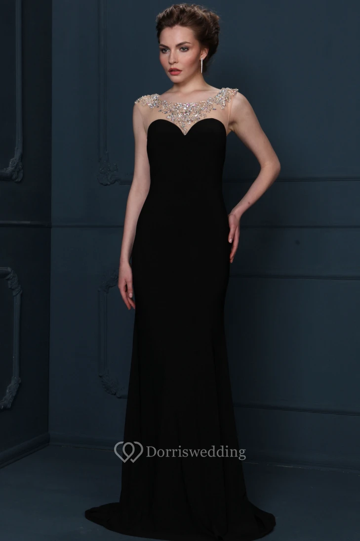 Beaded Sleeveless Scoop Neck Chiffon Evening Dress With Brush Train