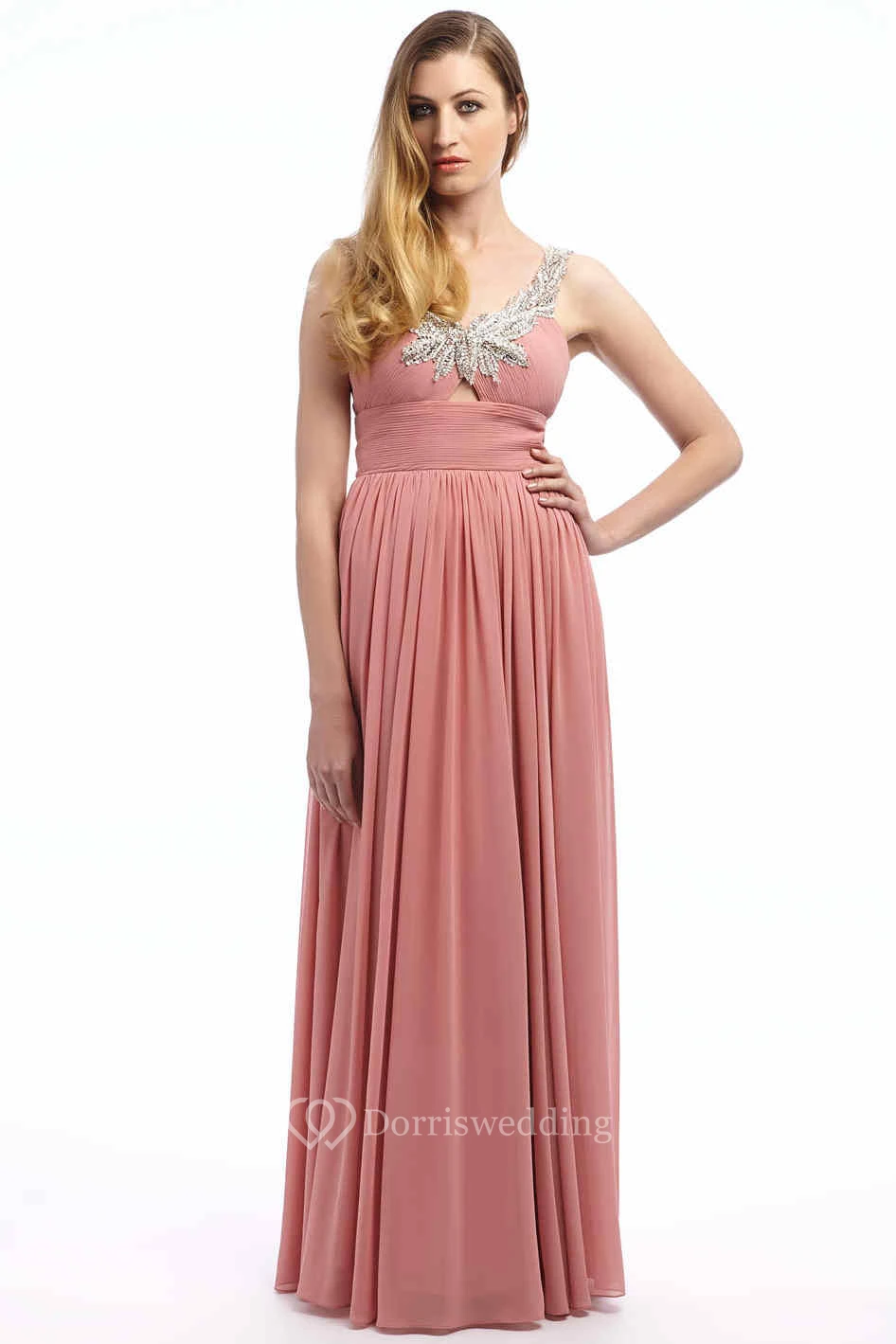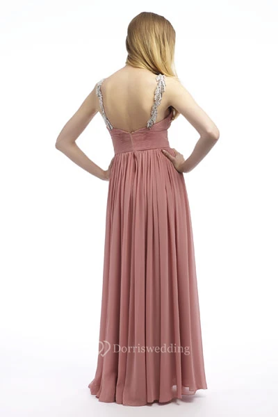 Beaded Sleeveless Strapped Long Chiffon Prom Dress With Pleats