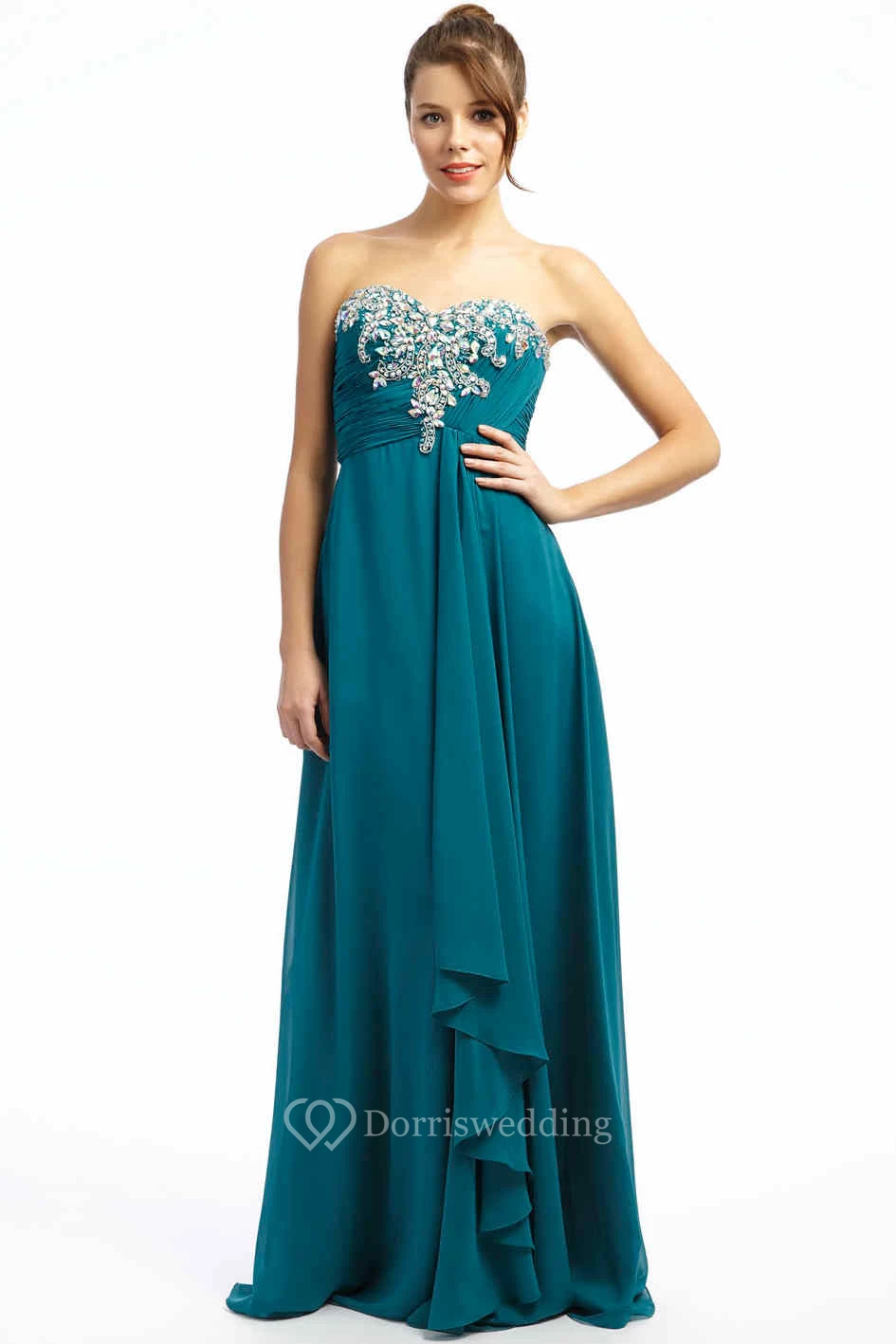Beaded Sleeveless Sweetheart Chiffon Prom Dress With Draping