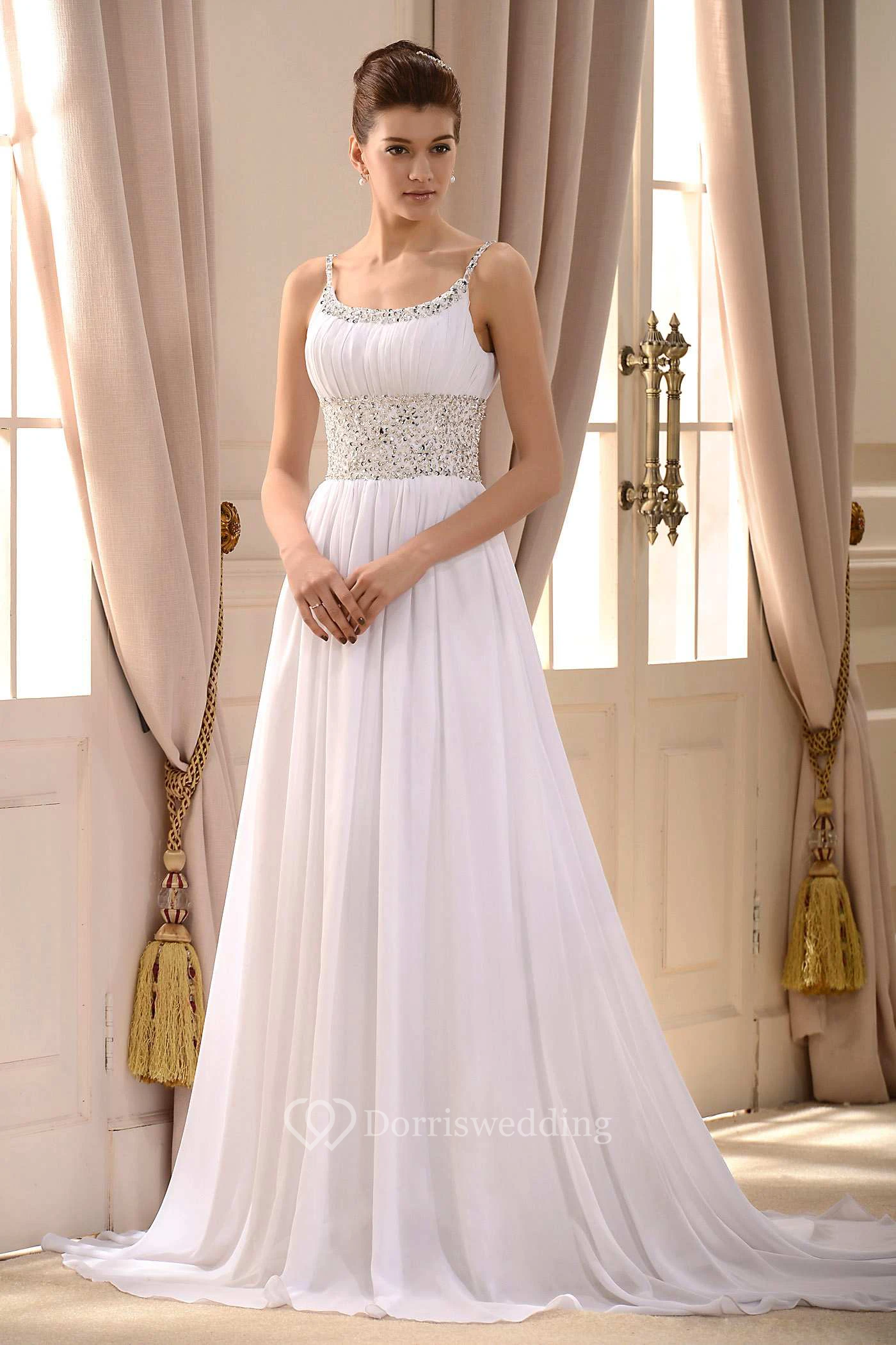Beaded Spaghetti Strap A-line Long Chiffon Dress With Pleats